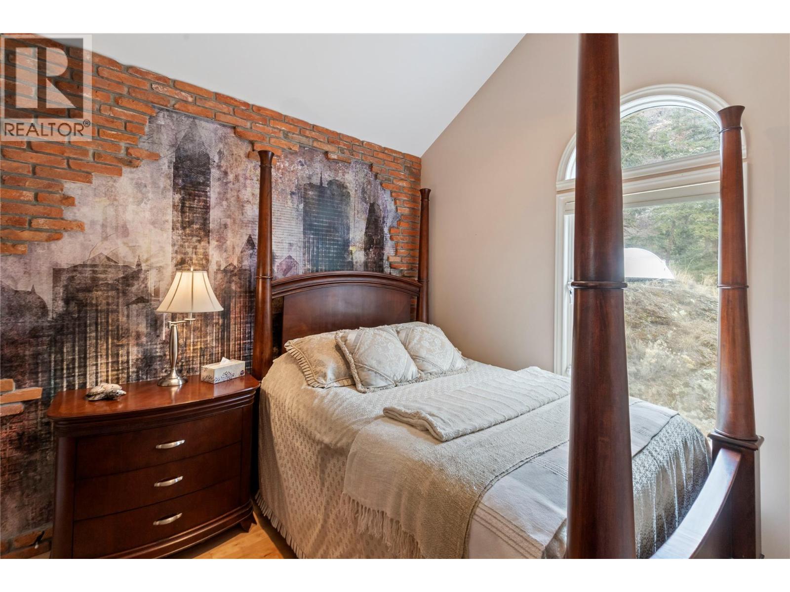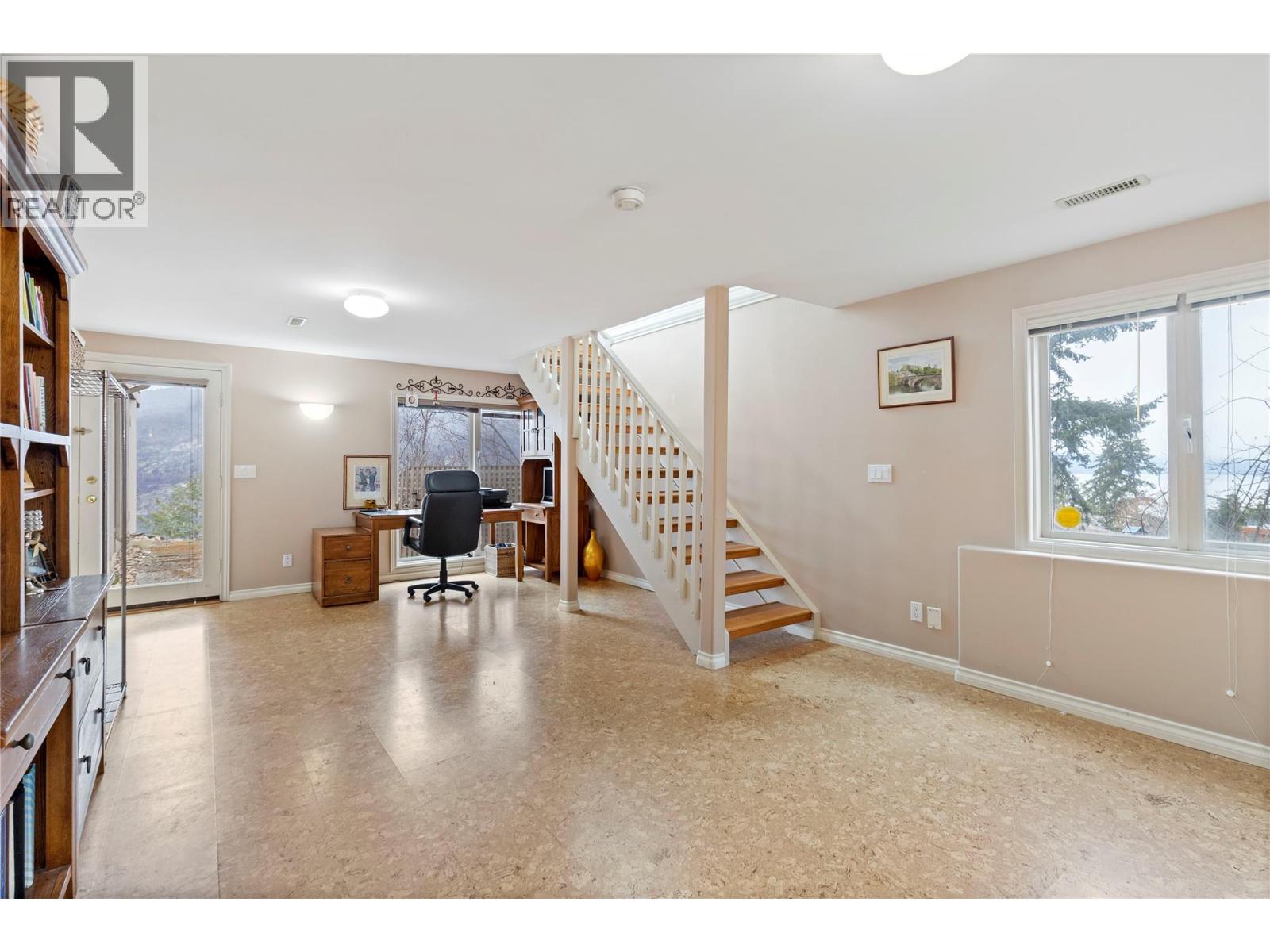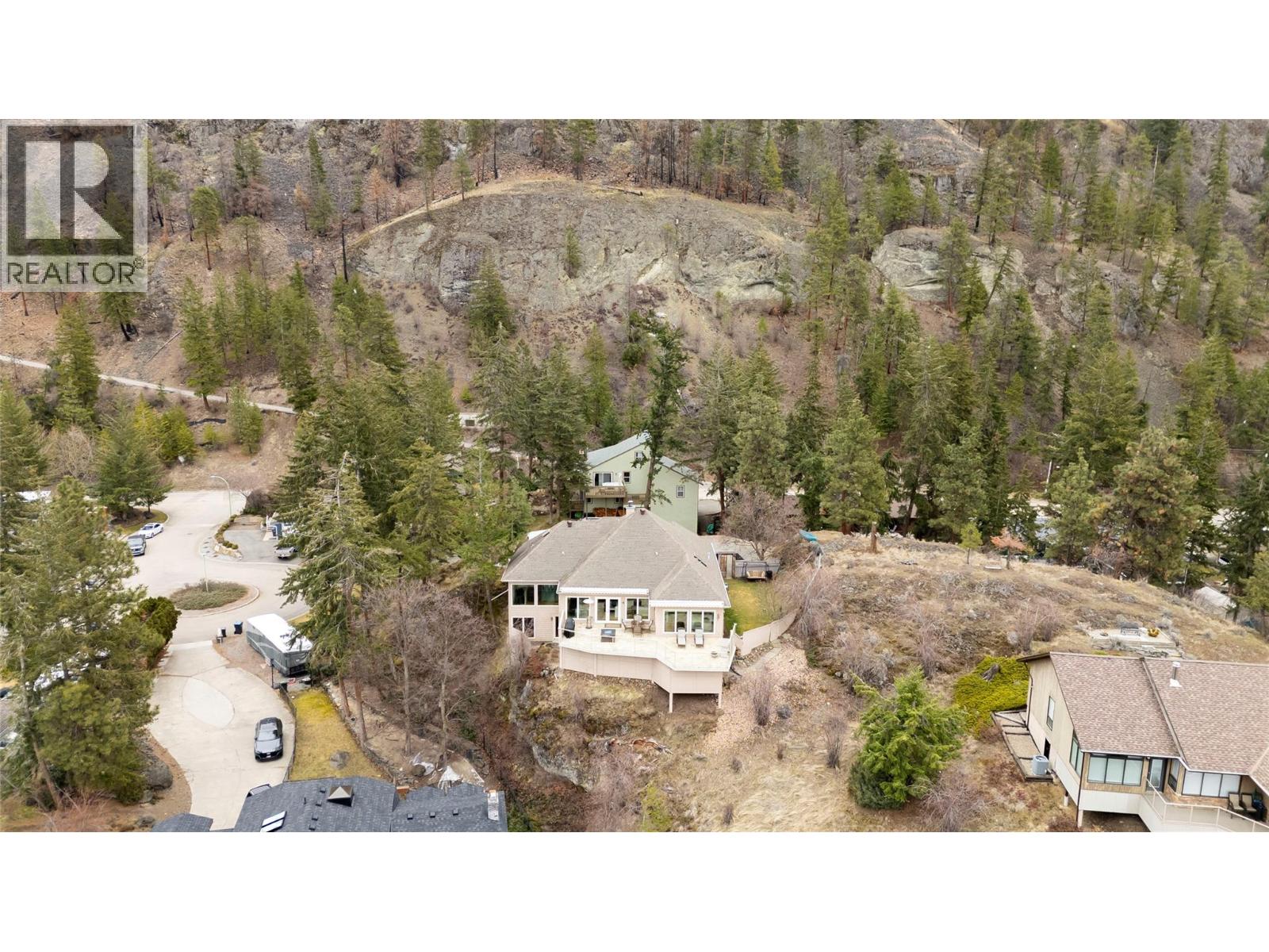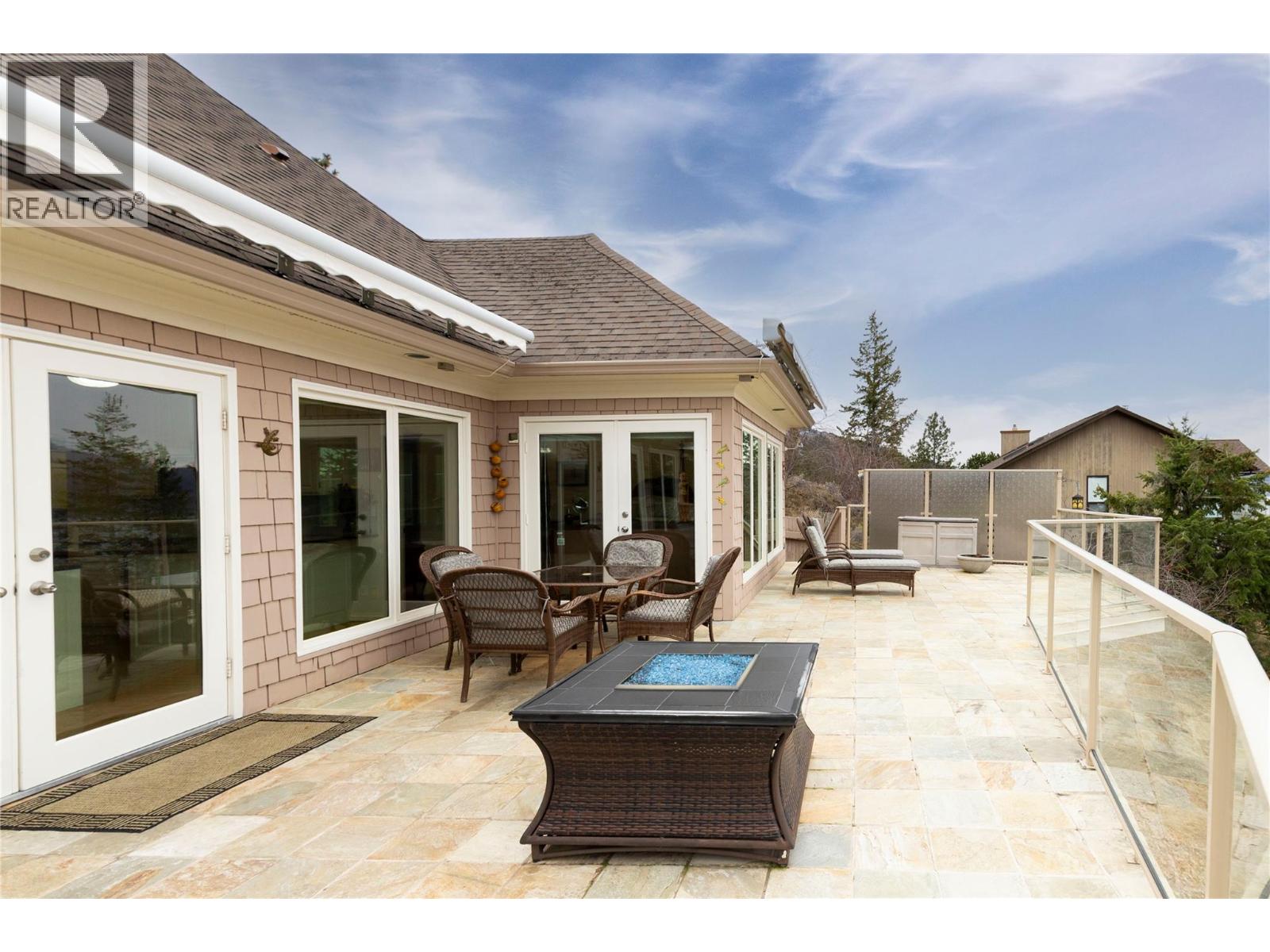 Private Bluff Retreat with Panoramic Lake Views Set high on a quiet, private lane, this 3-bedroom, 2-bath walkout rancher offers stunning, unobstructed views of Okanagan Lake from its perch on a dramatic rock bluff. If you're after privacy, natural beauty, and big views—this is it. Vaulted ceilings, skylights, and oversized new windows bring in natural light and frame the lake and mountain vistas from nearly every angle. The kitchen features granite countertops, stainless steel appliances, and a sleek tile backsplash. A wood-burning fireplace with exposed brick adds character and warmth to the open-concept living space. The primary suite offers front-row views, a walk-in closet, and ensuite bath. Two additional bedrooms are tucked into a private wing; ideal for guests or home office setups. Step outside to a massive tiled sundeck with powered awnings, perfect for entertaining or unwinding. The secluded, tree-lined yard has room for a garden, pool, or lounge area, all with that lake view front and center. Just 10 minutes to downtown Kelowna, this is a rare mix of total privacy and urban convenience. Book your private showing today and prepare to be wowed by the show stopping views! (id:6770)