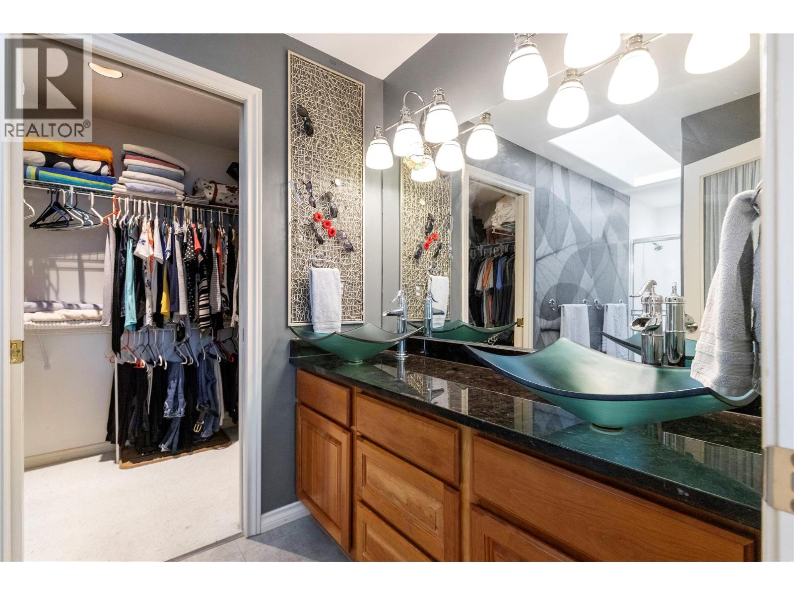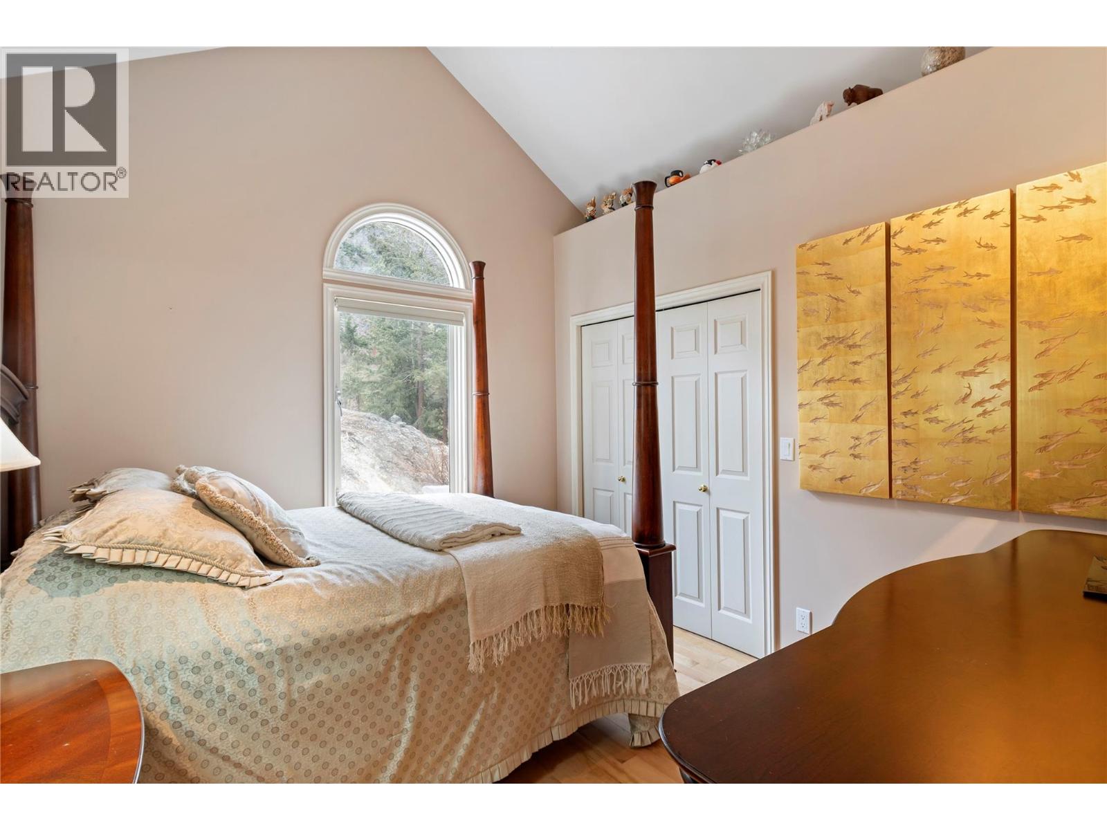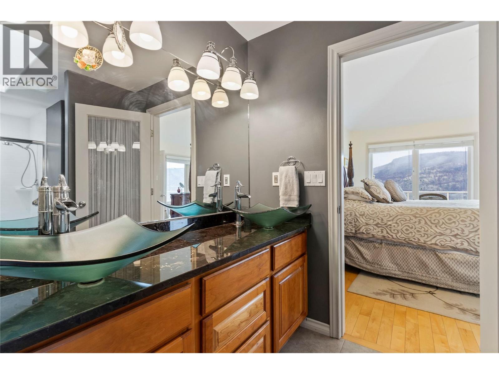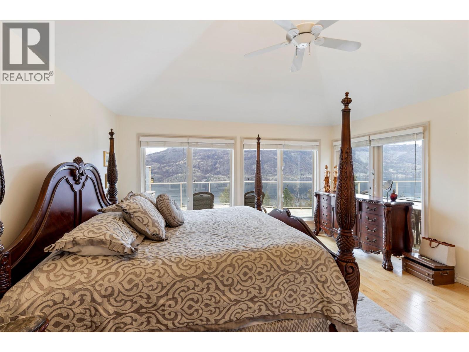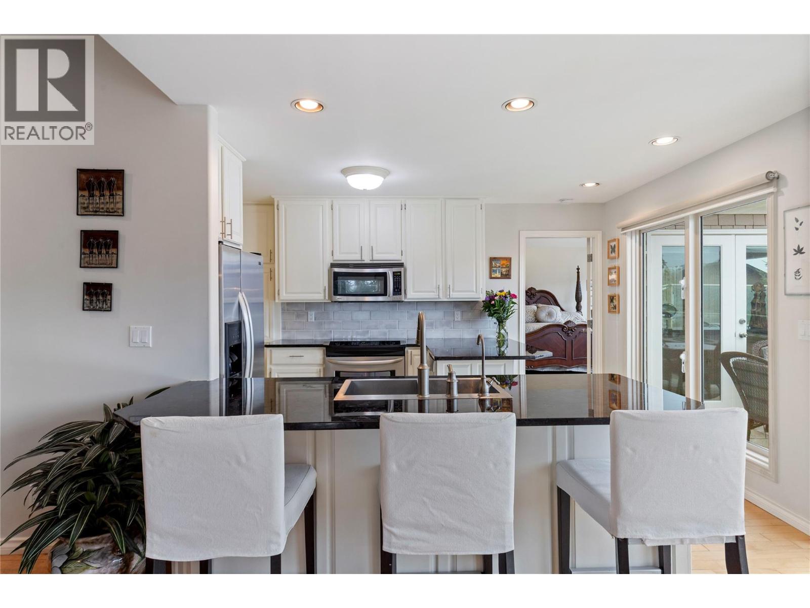 Private Bluff Retreat with Panoramic Lake Views Set high on a quiet, private lane, this 3-bedroom, 2-bath walkout rancher offers stunning, unobstructed views of Okanagan Lake from its perch on a dramatic rock bluff. If you're after privacy, natural beauty, and big views—this is it. Vaulted ceilings, skylights, and oversized new windows bring in natural light and frame the lake and mountain vistas from nearly every angle. The kitchen features granite countertops, stainless steel appliances, and a sleek tile backsplash. A wood-burning fireplace with exposed brick adds character and warmth to the open-concept living space. The primary suite offers front-row views, a walk-in closet, and ensuite bath. Two additional bedrooms are tucked into a private wing; ideal for guests or home office setups. Step outside to a massive tiled sundeck with powered awnings, perfect for entertaining or unwinding. The secluded, tree-lined yard has room for a garden, pool, or lounge area, all with that lake view front and center. Just 10 minutes to downtown Kelowna, this is a rare mix of total privacy and urban convenience. Book your private showing today and prepare to be wowed by the show stopping views! (id:6770)