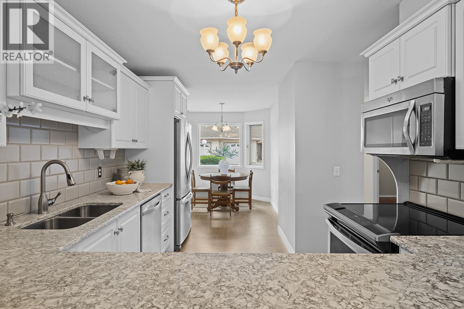 With an AMAZING LOCATION, discover comfort and convenience in this bright and spacious 4 bedroom, 3-bathroom townhome, perfectly nestled in a quiet, well-kept 55+ community in the heart of Kelowna. The main floor offers a thoughtful layout with a light-filled entrance with a gorgeous skylight, a primary bedroom featuring a private ensuite with an accessible WALK IIN TUB & expansive dual vanity. A second bedroom, and an additional full bathroom on your main level is perfect for convenience. Cozy up in your living room with a gas fireplace & enjoy a seamless flow into both the dining room and kitchen that has been opened up to create a space that is perfect for gathering and savouring company. The kitchen is adorned with granite countertops, bright white cabinetry, whirlpool appliances and a newer stove. Downstairs, you’ll find a versatile rec room, a third full bath, and laundry area—ideal for guests or hobbies. Enjoy the ease of an attached single-car garage and low-maintenance living. Just minutes from shopping, parks, medical offices, and transit, this home offers the perfect blend of comfort, location, and lifestyle. Furnace 2016. AC 2018. HWT 2021. Electrolux 2019. (ages are approx) 1 cat or dog allowed (max 15” at shoulder and 25lbs) (id:6770)