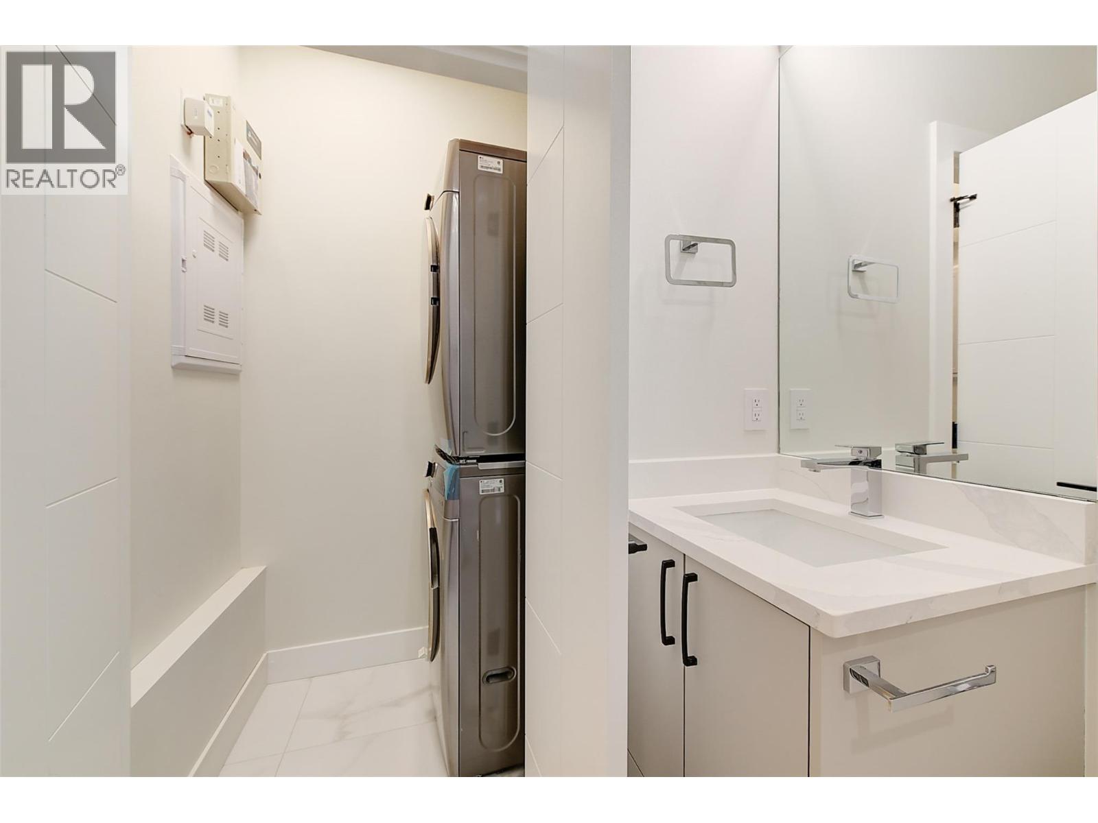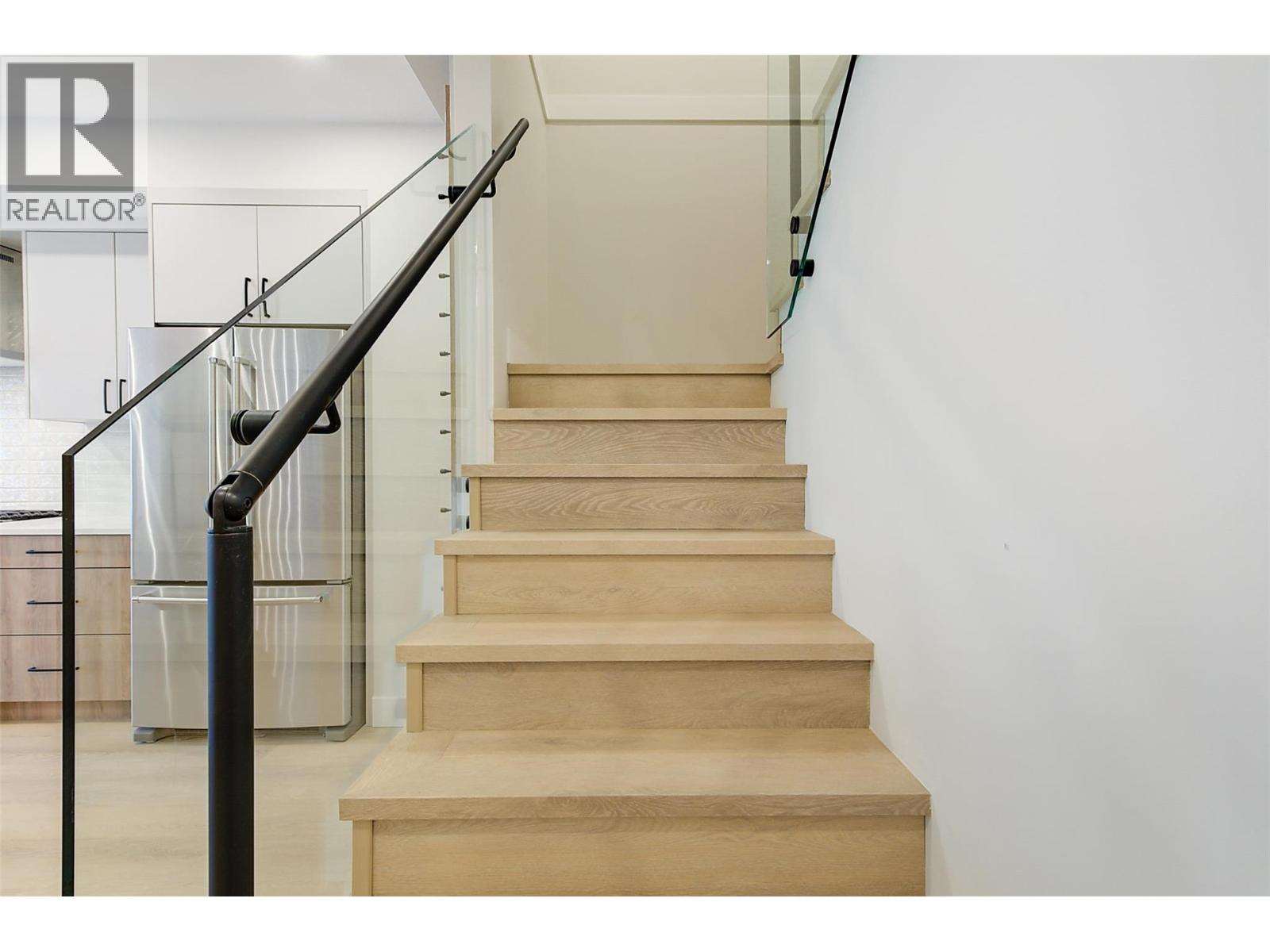 Discover Luxury Downtown Living - Step into this custom-built, North-facing townhome, offering 3 bedrooms, 2.5 bathrooms, and two stories of exquisite design. Topped with a rooftop patio prepped for a hot tub, this home invites you to embrace the Okanagan’s signature outdoor lifestyle. Every detail has been carefully curated to exude sophistication. Expansive windows fill the space with natural light, complementing the modern exterior of concrete and wood finishes. Inside, the chef-inspired kitchen stands out with a large island, stainless steel appliances, quartz countertops, and a custom backsplash framing the gas stove and 28-inch hood range fan. Throughout the home, premium flooring, a built-in fireplace, and contemporary light fixtures enhance the luxurious ambiance. The primary suite features a spa-like ensuite with a double vanity and a sleek walk-in shower. A large crawl space on the main floor offers ample storage, while the private yard with a covered patio creates your personal oasis. Completing the home is a covered single-car garage with rough-in for an EV charging station, blending convenience with modern living. This townhome isn’t just a residence—it’s a statement of style, comfort, and urban sophistication. Make it yours and elevate your lifestyle today. (id:6770)
