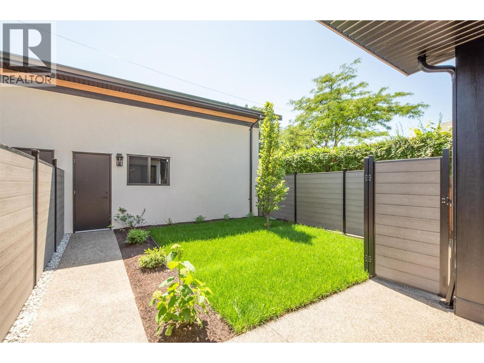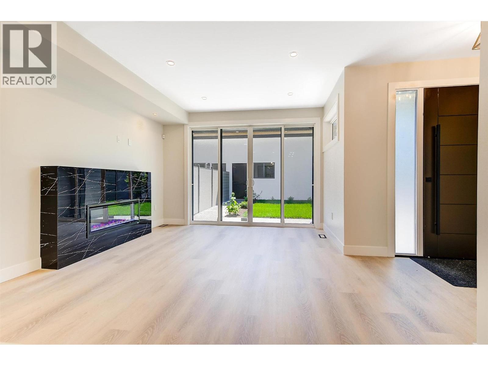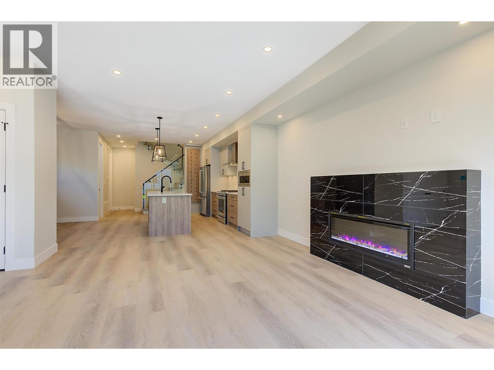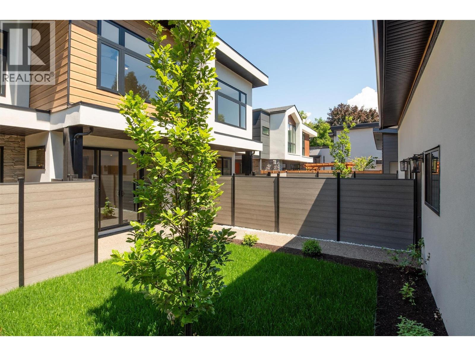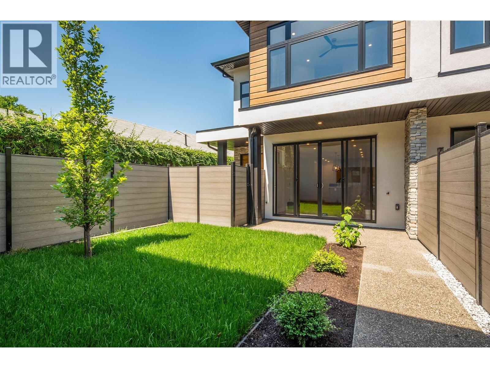 **Discover Luxury Downtown Living** Step into this custom-built, North-facing townhome, offering 3 bedrooms, 2.5 bathrooms, and two stories of exquisite design. Topped with a rooftop patio prepped for a hot tub, this home invites you to embrace the Okanagan’s signature outdoor lifestyle. Every detail has been carefully curated to exude sophistication. Expansive windows fill the space with natural light, complementing the modern exterior of concrete and wood finishes. Inside, the chef-inspired kitchen stands out with a large island, stainless steel appliances, quartz countertops, and a custom backsplash framing the gas stove and 28-inch hood range fan. Throughout the home, premium flooring, a built-in fireplace, and contemporary light fixtures enhance the luxurious ambiance. The primary suite features a spa-like ensuite with a double vanity and a sleek walk-in shower. A large crawl space on the main floor offers ample storage, while the private yard with a covered patio creates your personal oasis. Completing the home is a covered single-car garage with rough-in for an EV charging station, blending convenience with modern living. This townhome isn’t just a residence—it’s a statement of style, comfort, and urban sophistication. Make it yours and elevate your lifestyle today. (id:6770)