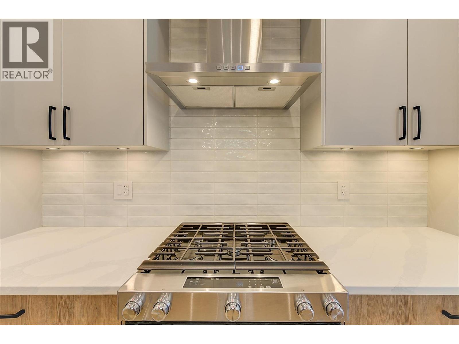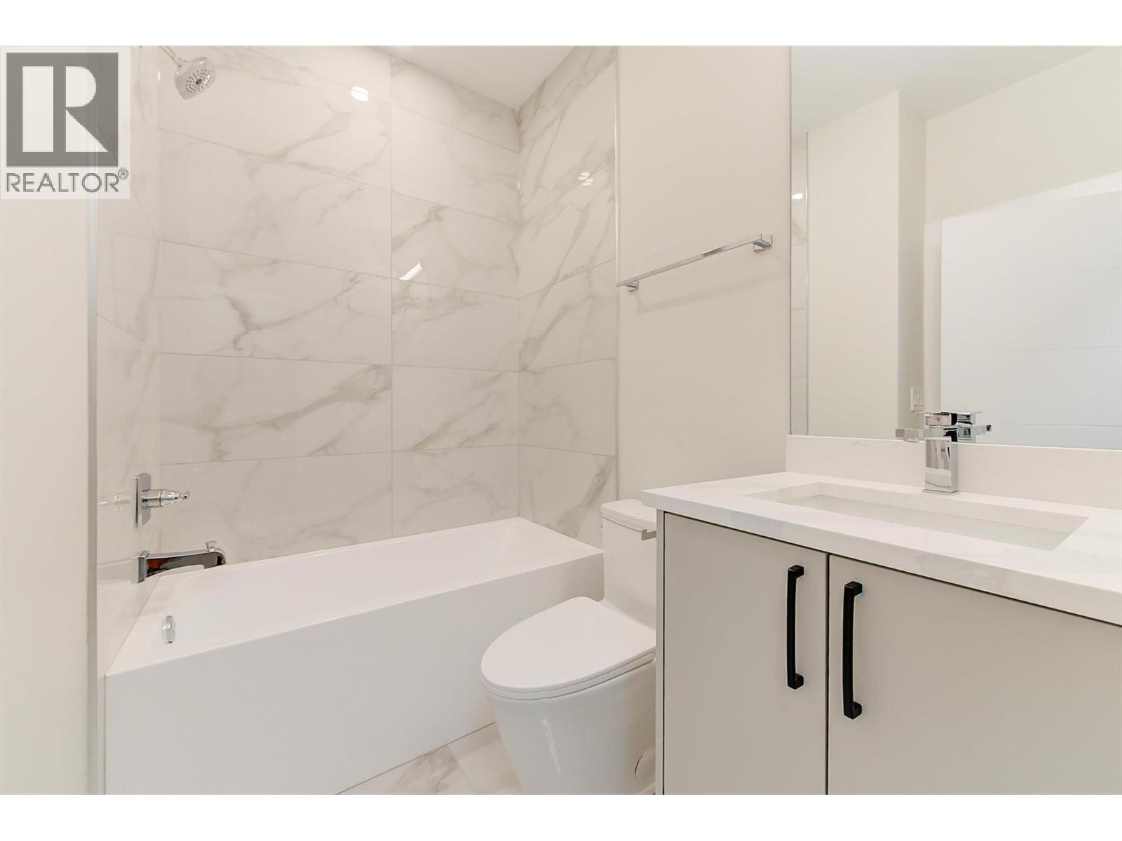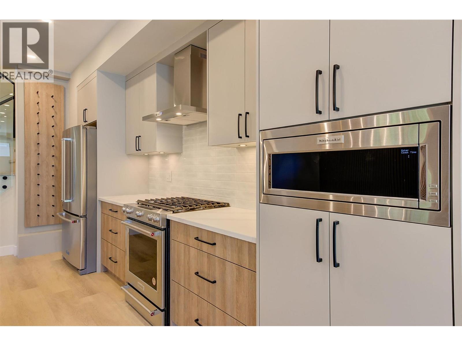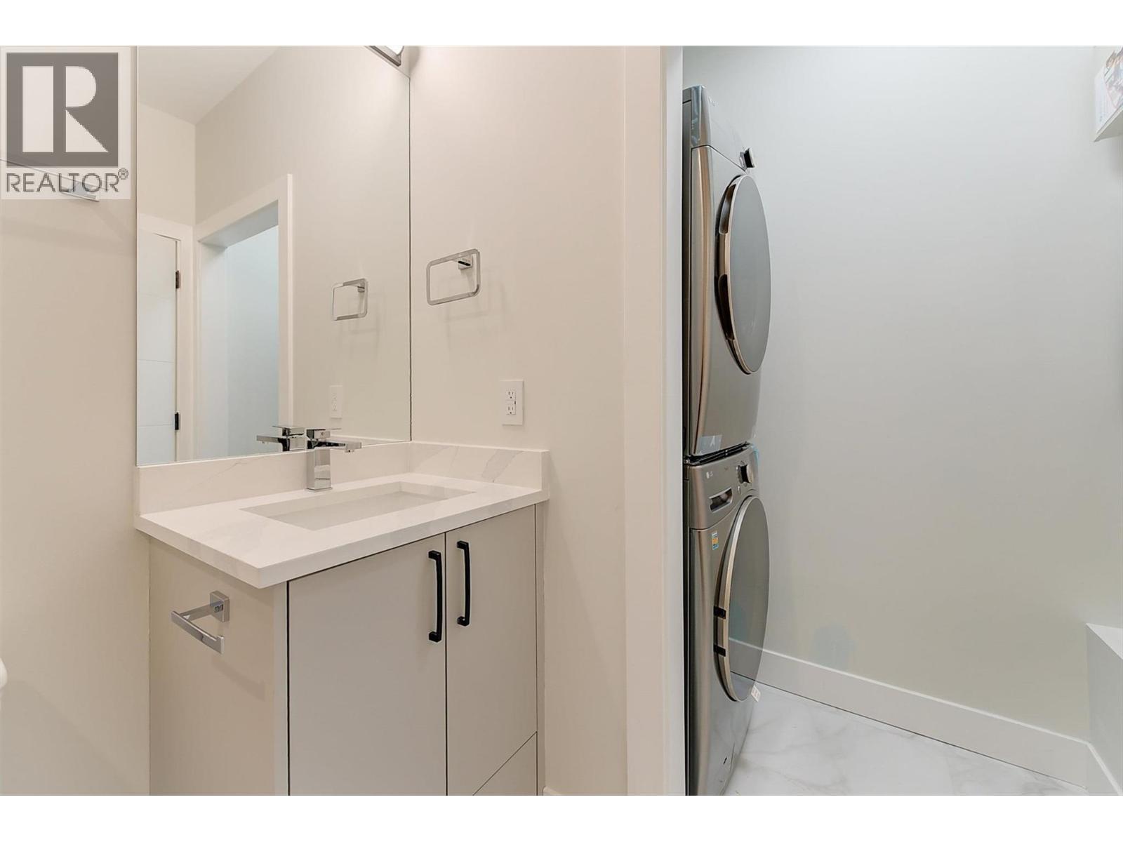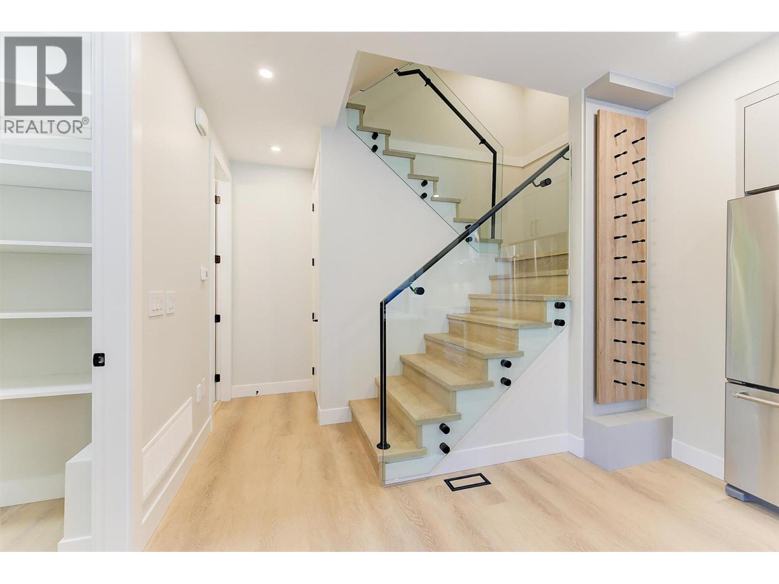 **Discover Luxury Downtown Living** Step into this custom-built, North-facing townhome, offering 3 bedrooms, 2.5 bathrooms, and two stories of exquisite design. Topped with a rooftop patio prepped for a hot tub, this home invites you to embrace the Okanagan’s signature outdoor lifestyle. Every detail has been carefully curated to exude sophistication. Expansive windows fill the space with natural light, complementing the modern exterior of concrete and wood finishes. Inside, the chef-inspired kitchen stands out with a large island, stainless steel appliances, quartz countertops, and a custom backsplash framing the gas stove and 28-inch hood range fan. Throughout the home, premium flooring, a built-in fireplace, and contemporary light fixtures enhance the luxurious ambiance. The primary suite features a spa-like ensuite with a double vanity and a sleek walk-in shower. A large crawl space on the main floor offers ample storage, while the private yard with a covered patio creates your personal oasis. Completing the home is a covered single-car garage with rough-in for an EV charging station, blending convenience with modern living. This townhome isn’t just a residence—it’s a statement of style, comfort, and urban sophistication. Make it yours and elevate your lifestyle today. (id:6770)
