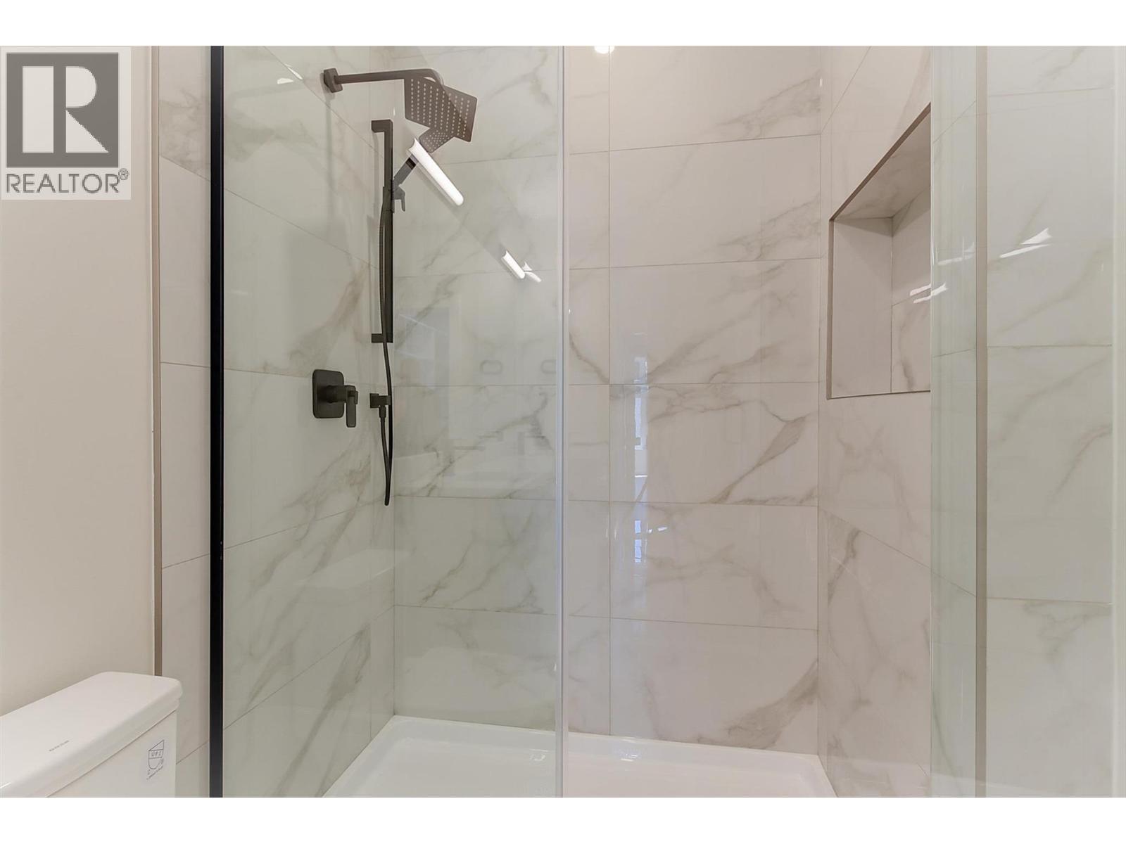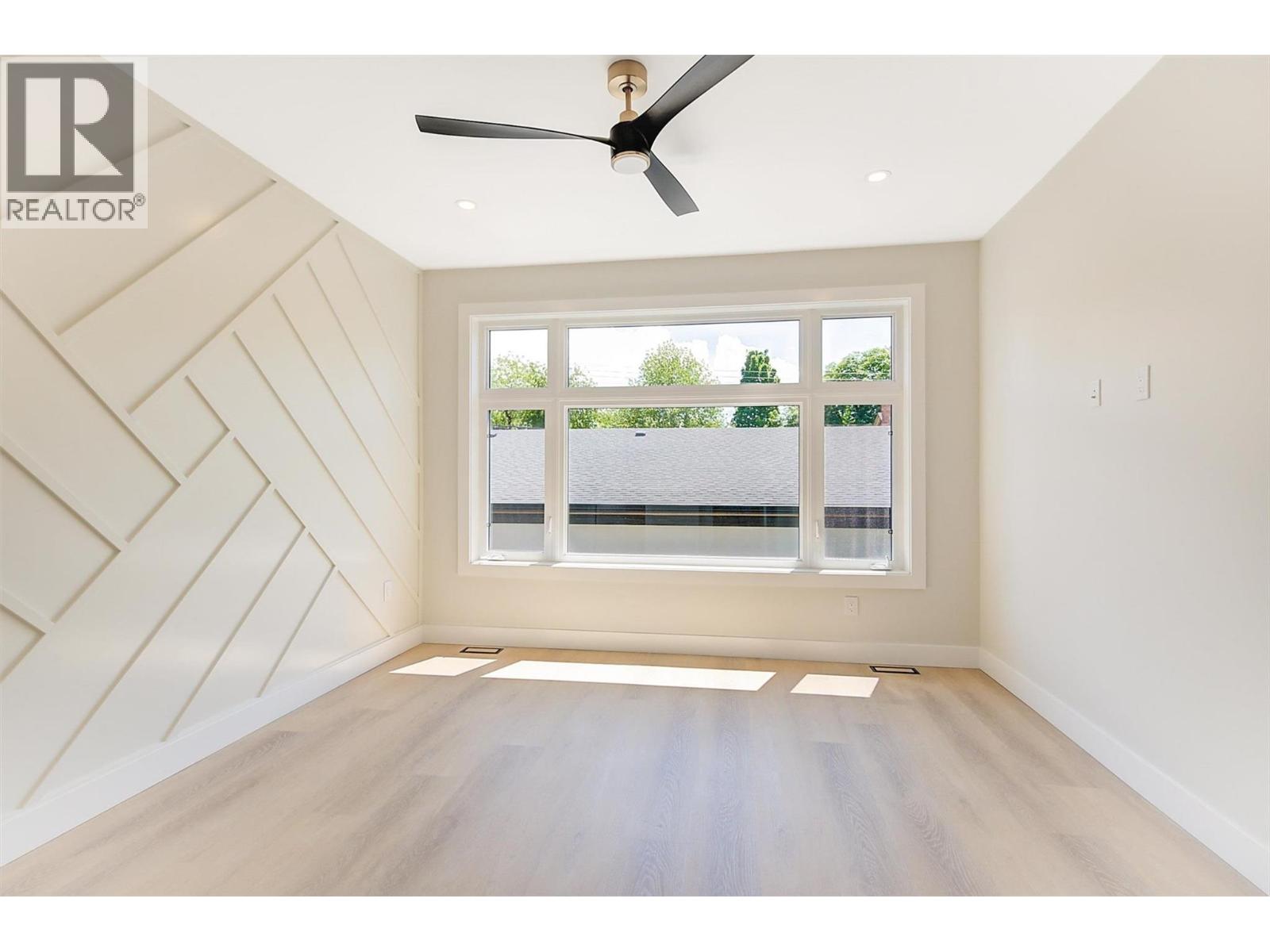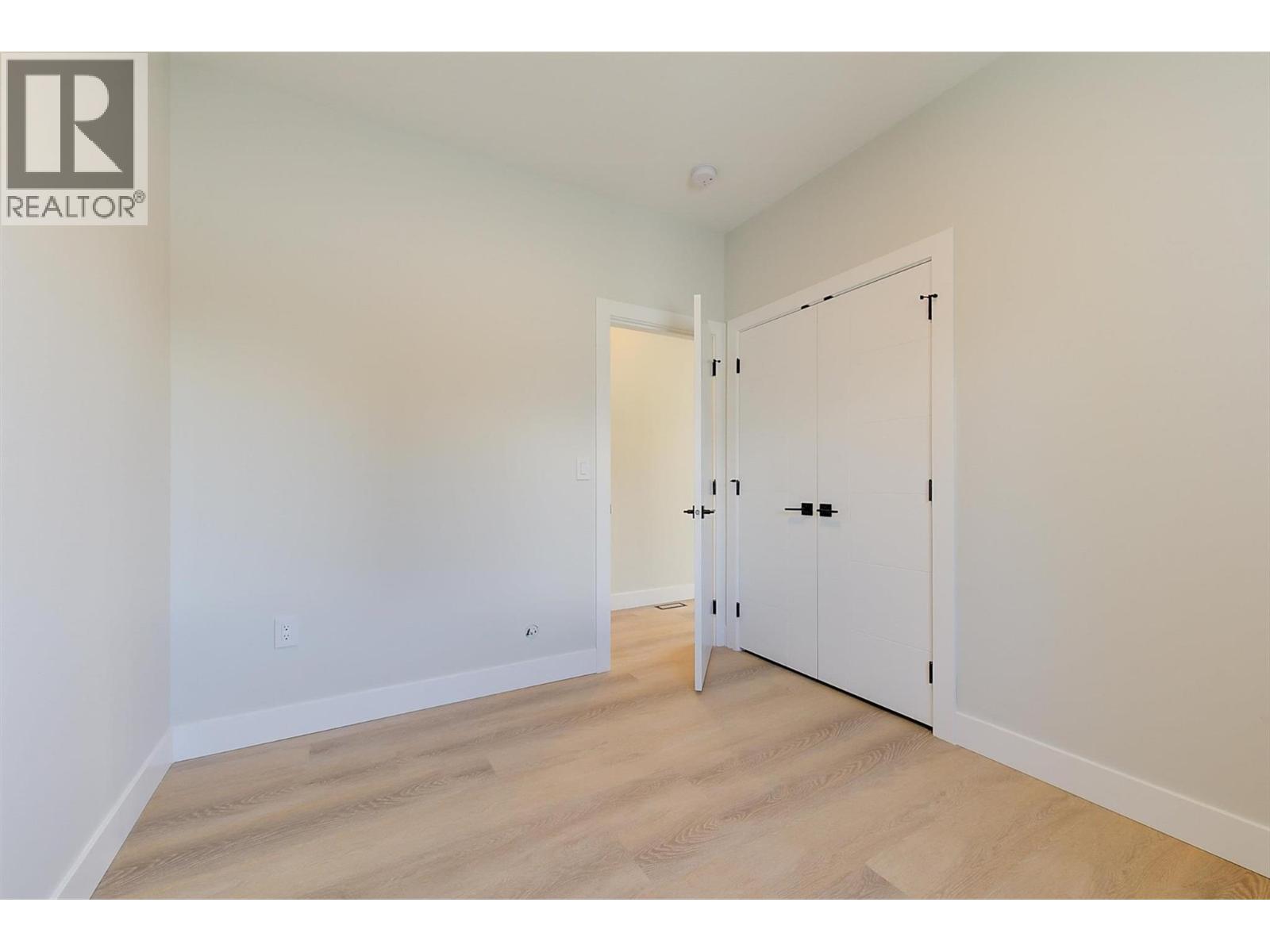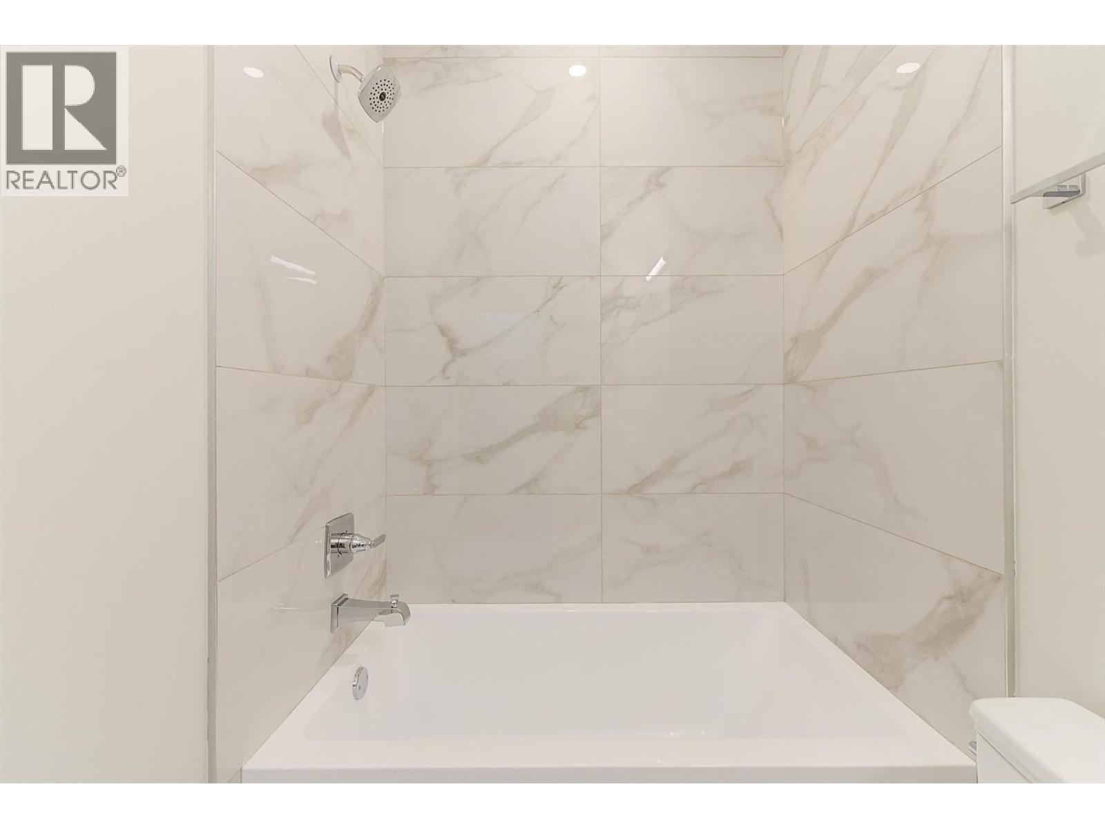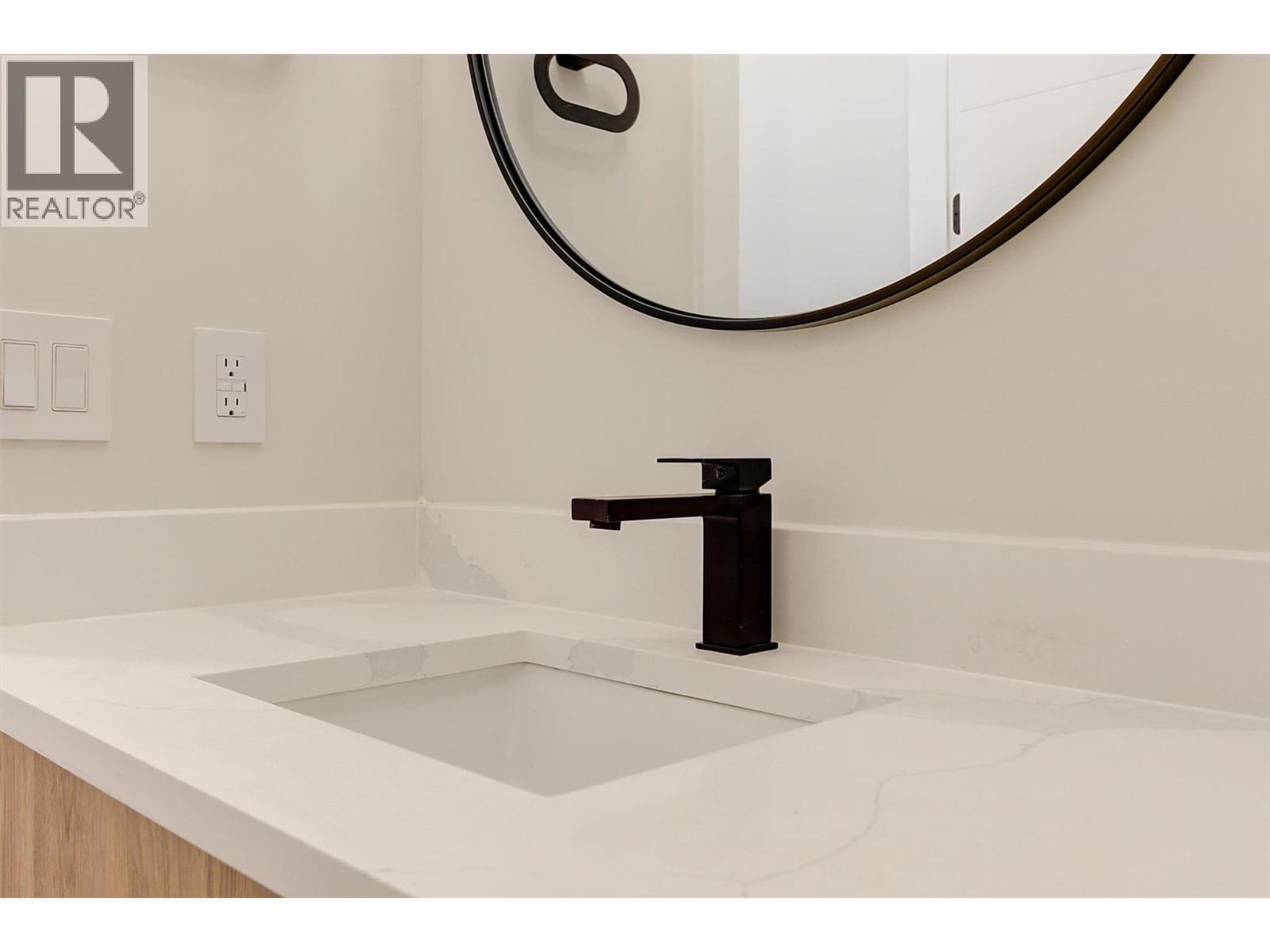 **Discover Luxury Downtown Living** Step into this custom-built, North-facing townhome, offering 3 bedrooms, 2.5 bathrooms, and two stories of exquisite design. Topped with a rooftop patio prepped for a hot tub, this home invites you to embrace the Okanagan’s signature outdoor lifestyle. Every detail has been carefully curated to exude sophistication. Expansive windows fill the space with natural light, complementing the modern exterior of concrete and wood finishes. Inside, the chef-inspired kitchen stands out with a large island, stainless steel appliances, quartz countertops, and a custom backsplash framing the gas stove and 28-inch hood range fan. Throughout the home, premium flooring, a built-in fireplace, and contemporary light fixtures enhance the luxurious ambiance. The primary suite features a spa-like ensuite with a double vanity and a sleek walk-in shower. A large crawl space on the main floor offers ample storage, while the private yard with a covered patio creates your personal oasis. Completing the home is a covered single-car garage with rough-in for an EV charging station, blending convenience with modern living. This townhome isn’t just a residence—it’s a statement of style, comfort, and urban sophistication. Make it yours and elevate your lifestyle today. (id:6770)