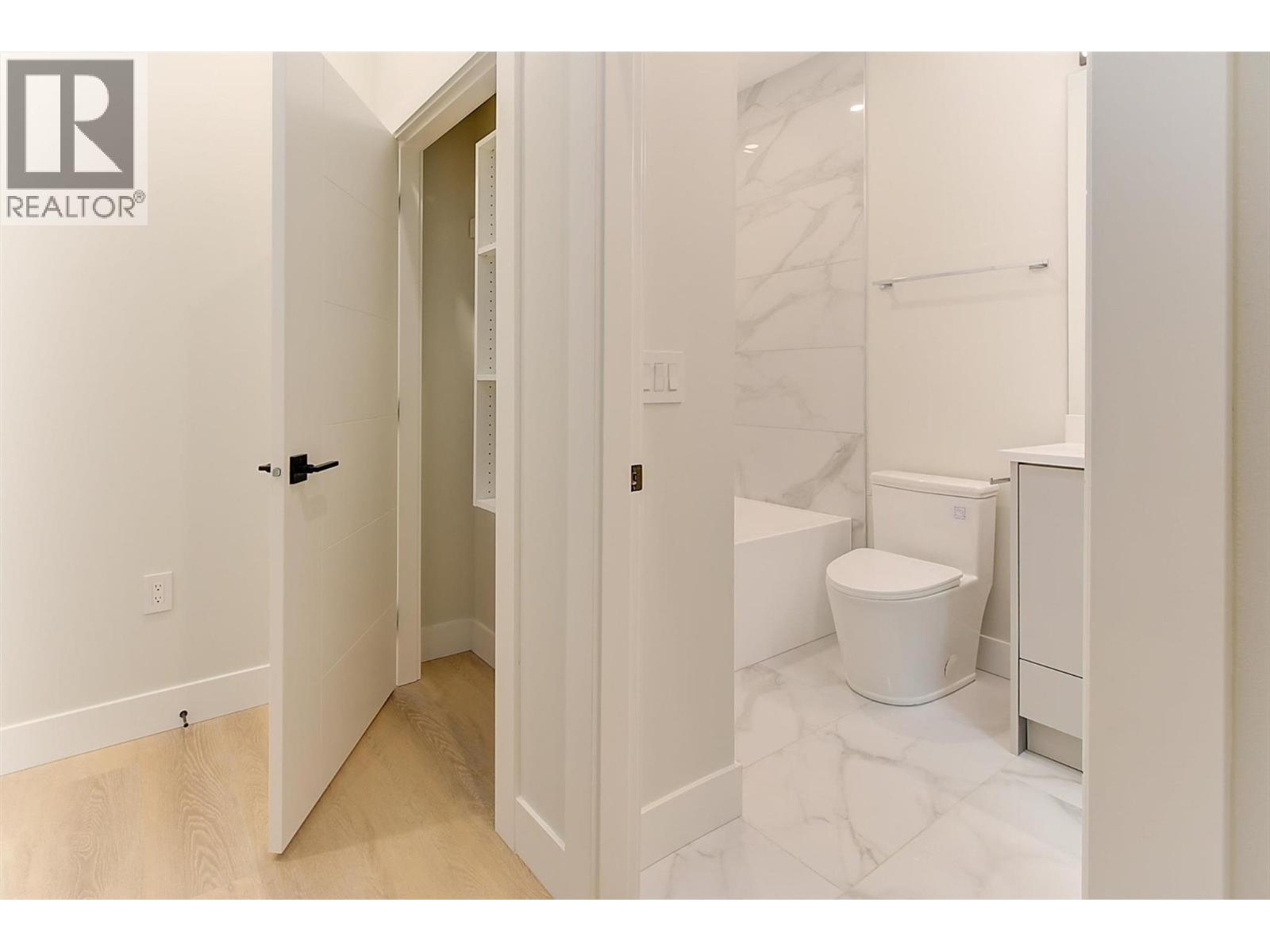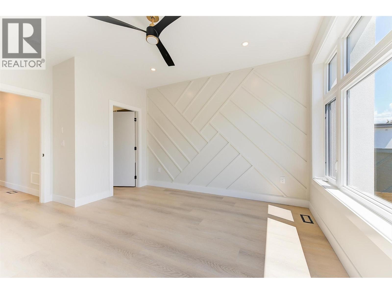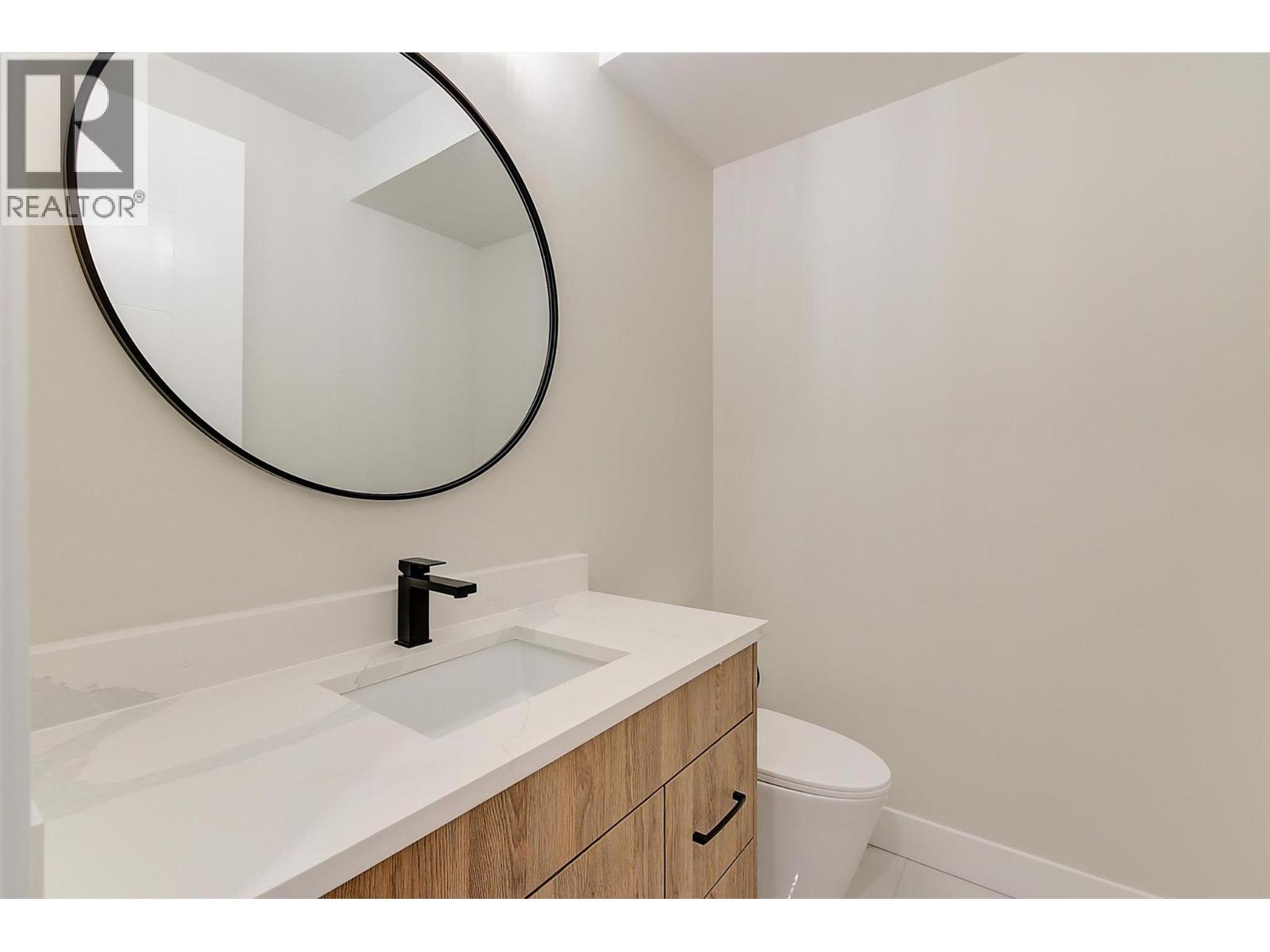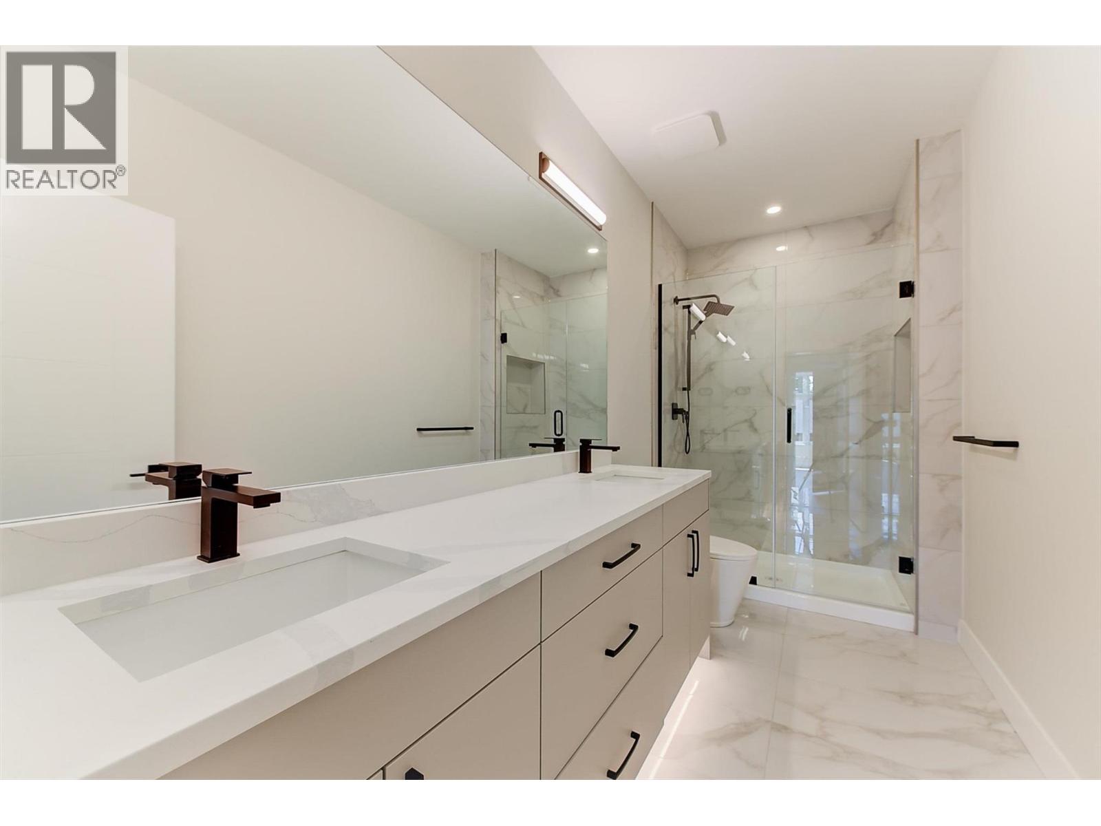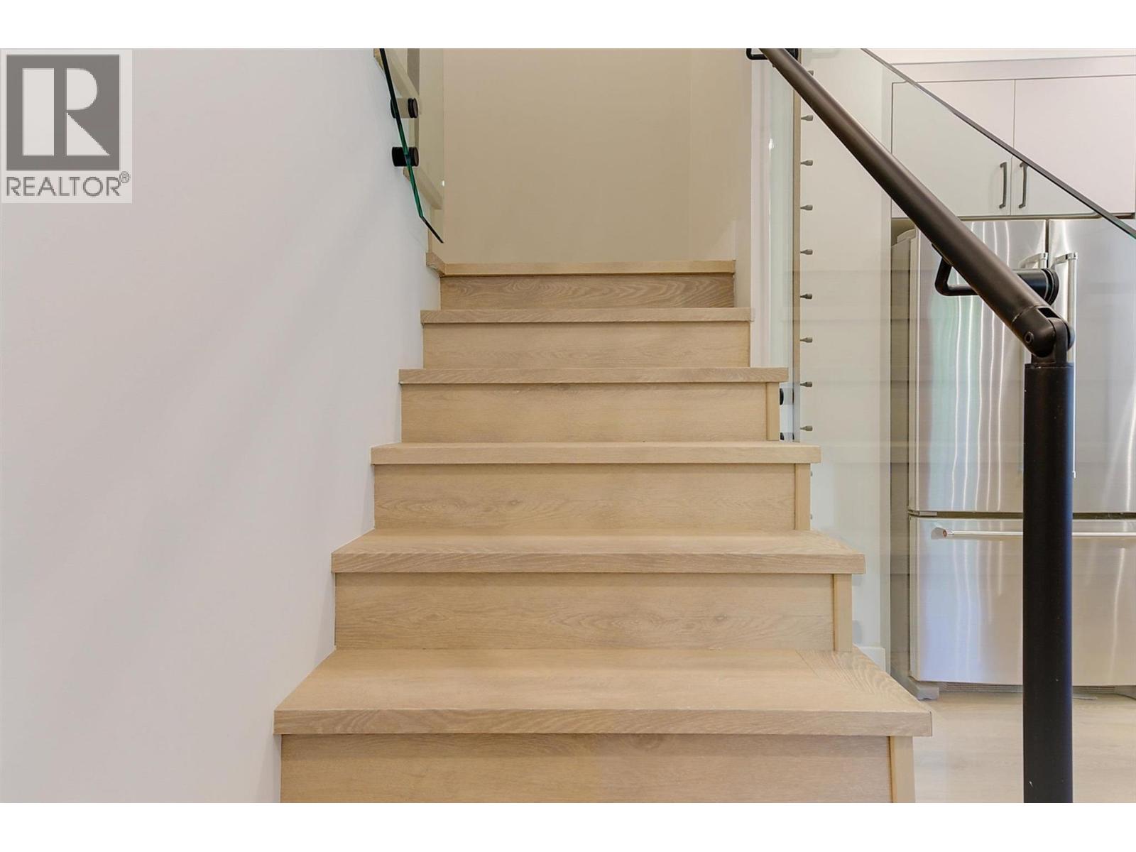 **Discover Luxury Downtown Living** Step into this custom-built, North-facing townhome, offering 3 bedrooms, 2.5 bathrooms, and two stories of exquisite design. Topped with a rooftop patio prepped for a hot tub, this home invites you to embrace the Okanagan’s signature outdoor lifestyle. Every detail has been carefully curated to exude sophistication. Expansive windows fill the space with natural light, complementing the modern exterior of concrete and wood finishes. Inside, the chef-inspired kitchen stands out with a large island, stainless steel appliances, quartz countertops, and a custom backsplash framing the gas stove and 28-inch hood range fan. Throughout the home, premium flooring, a built-in fireplace, and contemporary light fixtures enhance the luxurious ambiance. The primary suite features a spa-like ensuite with a double vanity and a sleek walk-in shower. A large crawl space on the main floor offers ample storage, while the private yard with a covered patio creates your personal oasis. Completing the home is a covered single-car garage with rough-in for an EV charging station, blending convenience with modern living. This townhome isn’t just a residence—it’s a statement of style, comfort, and urban sophistication. Make it yours and elevate your lifestyle today. (id:6770)