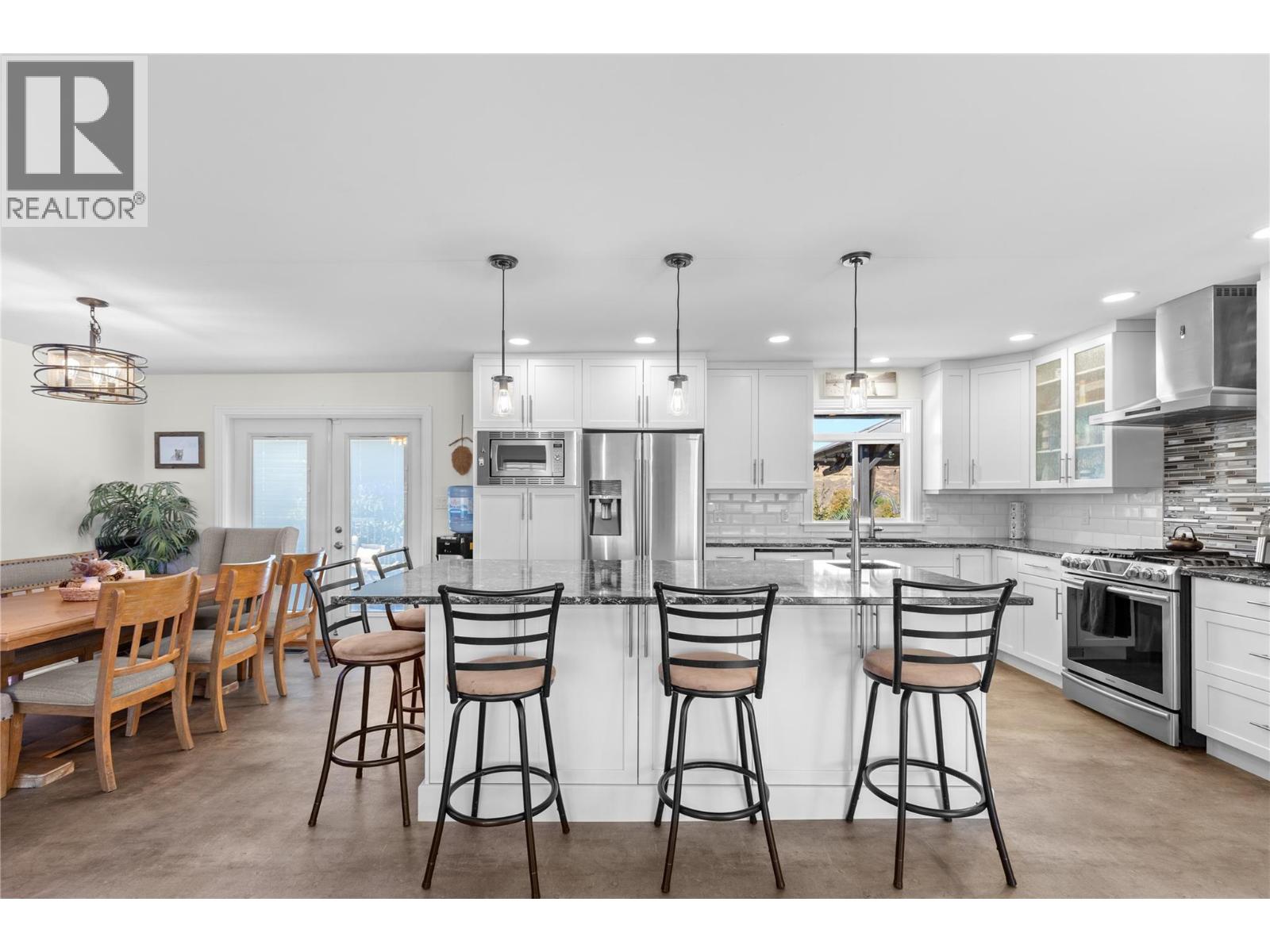 Welcome home! This move-in ready 5 bedroom, 3 bathroom plus den residence provides exceptional space for a growing family. Extensively updated in 2018, it showcases a bright, open concept kitchen, dining and living area. Ideal for entertaining, the chef’s kitchen features quartz counters, modern white soft-close cabinetry, a gas range, and an oversized island with bar seating. The sunlit living room offers hardwood floors, plenty of room for furnishings, and a cozy wood-burning fireplace. The main bath includes dual sinks, heated tile floors, and a tiled shower. Down the hall sits one of the 5 bedrooms, while the spacious Primary retreat at the end includes a spa-like ensuite with heated floors, walk-in shower, oversized soaker tub, built-in vanity and private water closet. French doors open to a serene patio and hot tub, the perfect spot to unwind while enjoying the view. The expansive upper deck is ideal for outdoor dining or lounging, with direct access from the dining room and Primary suite. Downstairs, a generous recreation room with gas fireplace, three additional bedrooms, laundry with 3-piece bath, and a den/office with separate entrance provide endless options. A covered lower patio extends your living space outdoors, backyard is low-maintenance with synthetic turf and rock scaping. With ample storage, versatile spaces, and a layout that balances comfort with style, this home is truly move-in ready. Book your private showing today and start imagining life here! (id:6770)