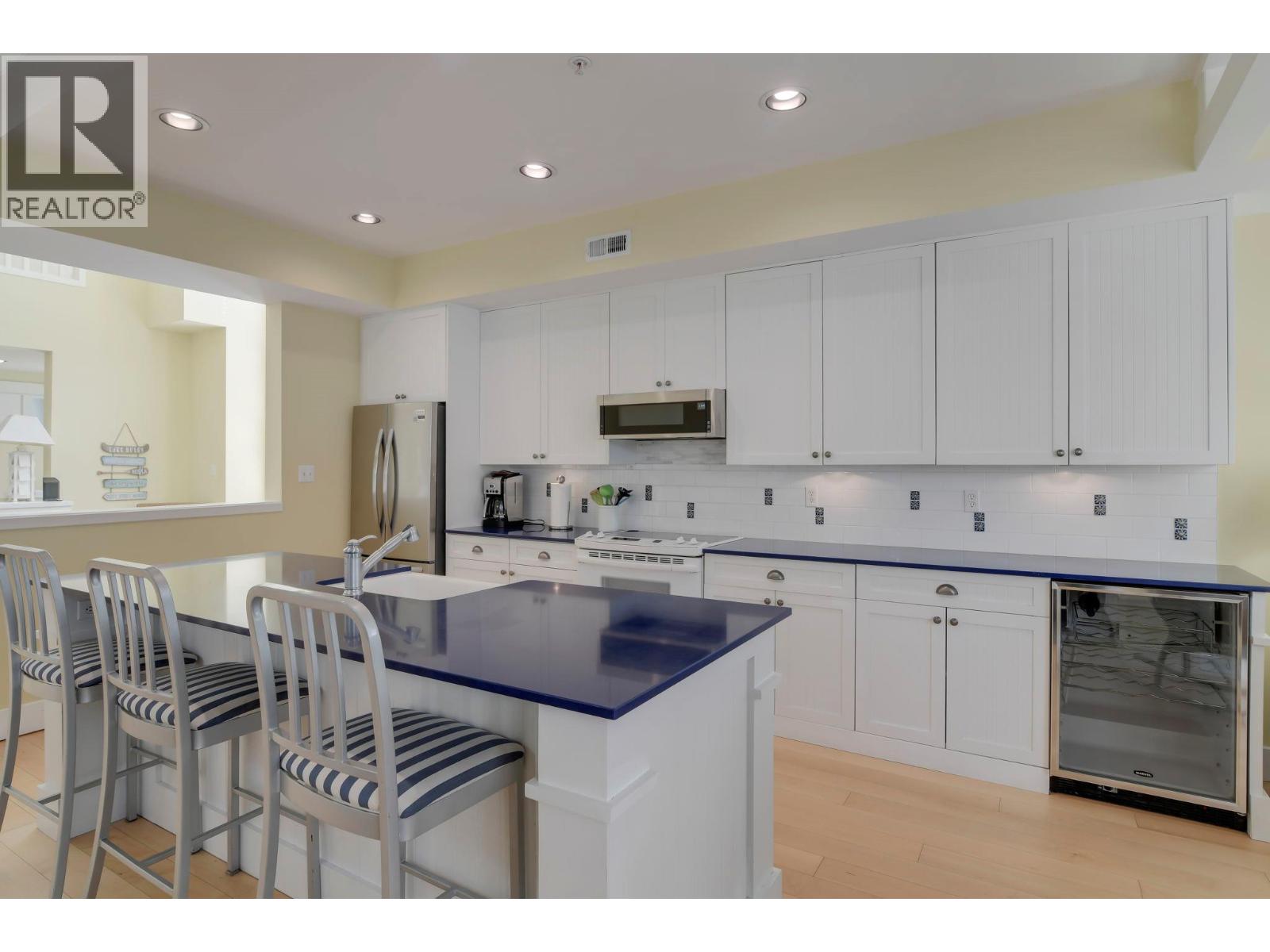 Don’t miss your chance to own this stunning end-unit townhome in the highly sought-after waterfront community of Mission Shores. This turn-key, move-in ready home comes fully furnished and features a dedicated full-time boat slip with a 6,500 lb lift. Spanning 4 levels, this bright and spacious home is filled with natural light thanks to its abundance of windows. The main level boasts a thoughtfully designed open layout. The living room features soaring vaulted ceilings highlighted by a dramatic wall of floor to ceiling windows. The kitchen is ideal for gatherings, offering a large island and ample cabinetry. A cozy family room overlooks the patio and opens to the outdoors through elegant French doors, allowing in the fresh Okanagan air. The adjacent dining room also opens onto the patio, which has plenty of space for dining, lounging, and grilling. The main level also includes a welcoming front foyer, a spacious bedroom with an ensuite and 2-piece guest bathroom. Upstairs, you'll find two generous master bedrooms, each with its own ensuite featuring a soaker tub, glass shower, and ample closet space. One suite includes a private SW-facing deck—ideal for soaking in the views. The laundry area is also conveniently located on this level. Head up to the rooftop to relax on your private sunny patio or unwind in the hot tub. The parking stall and storage locker are conveniently located just steps from the lower-level foyer. Resort-style amenities include a sandy beach, boat dock, saltwater pool, hot tub, fitness center and games area. Whether you're looking for a year-round residence, a seasonal retreat, or a smart investment, this property offers flexibility—rent it from September to June and enjoy it for yourself during the summer months. (id:6770)
