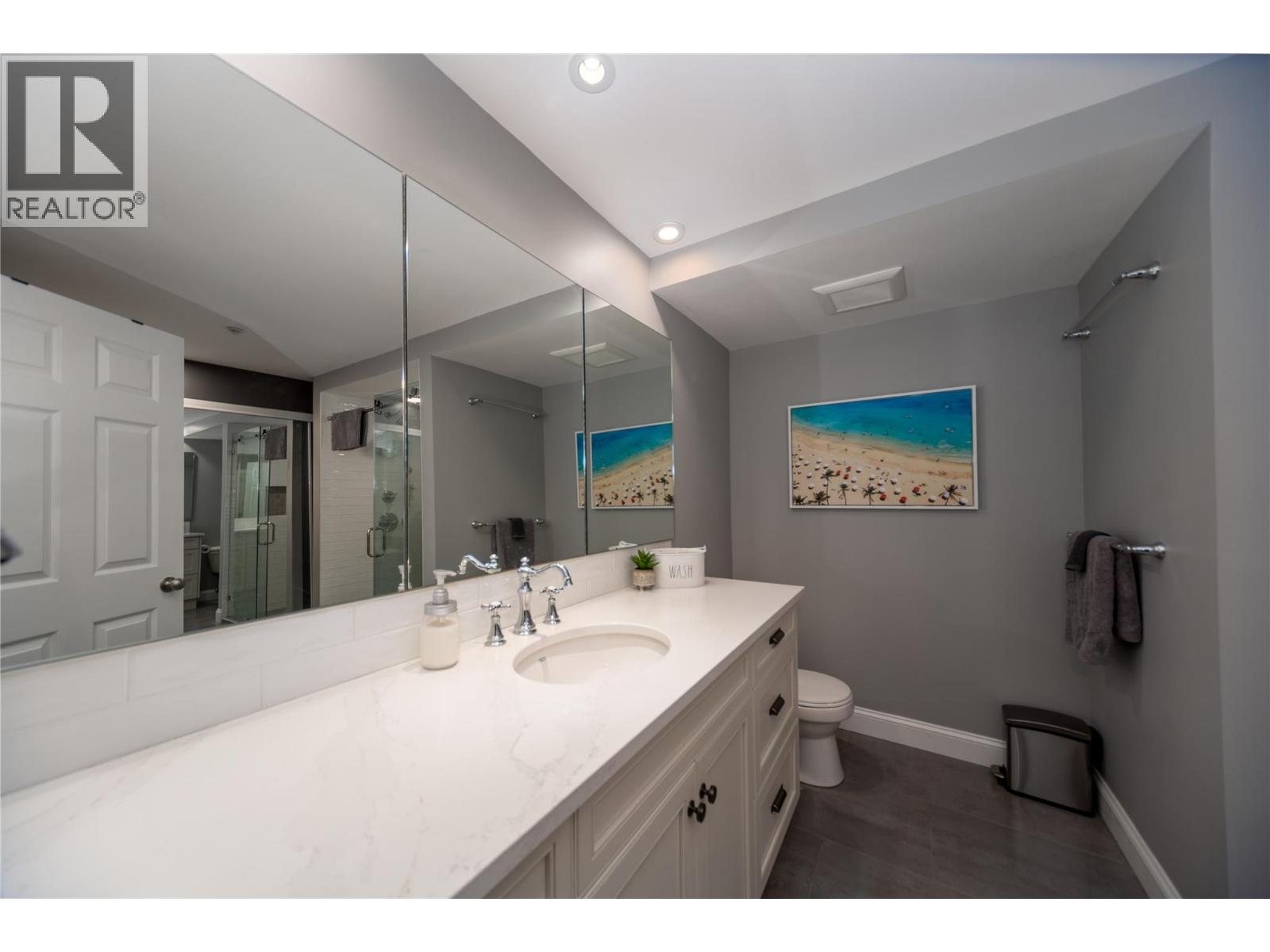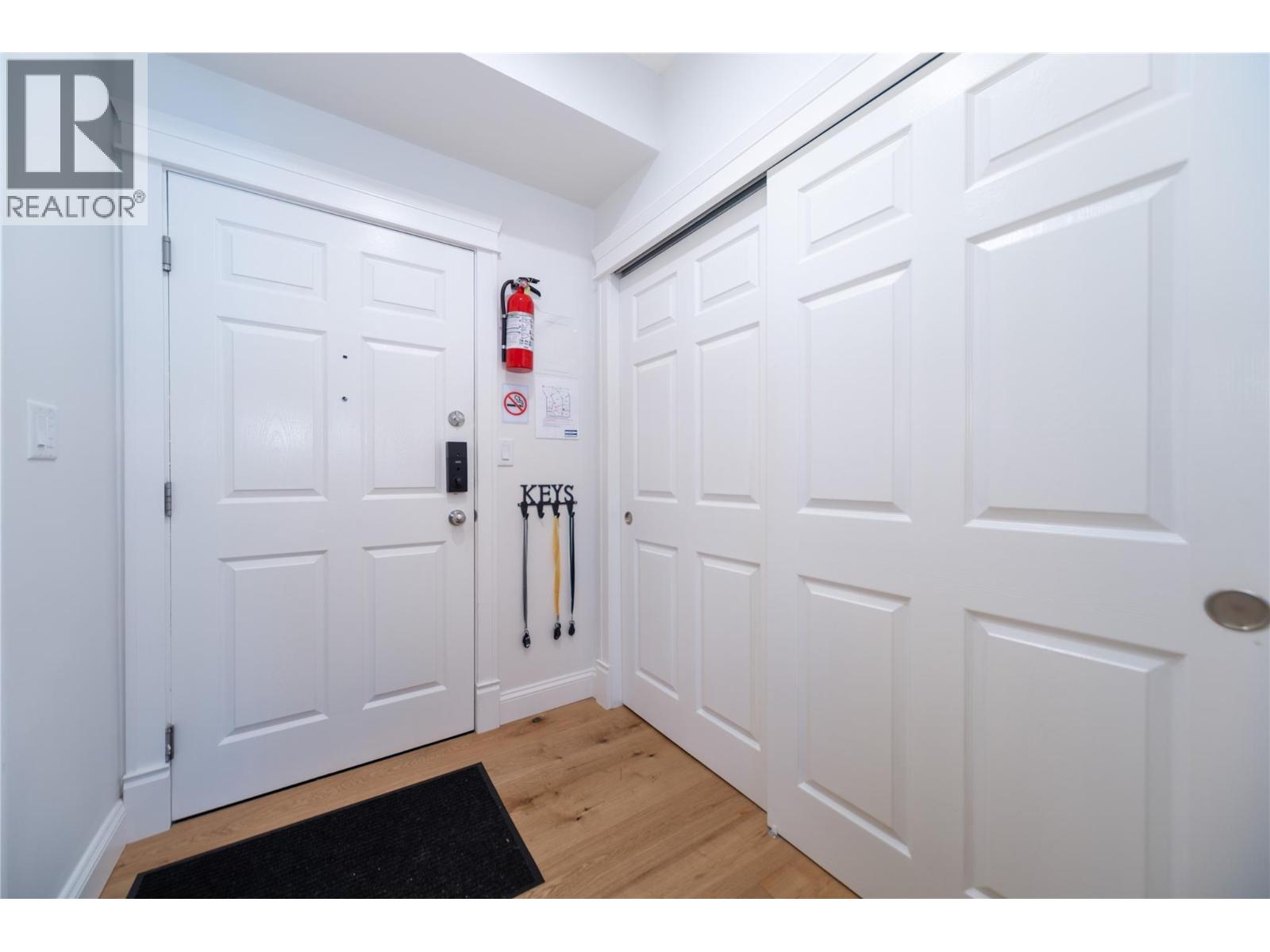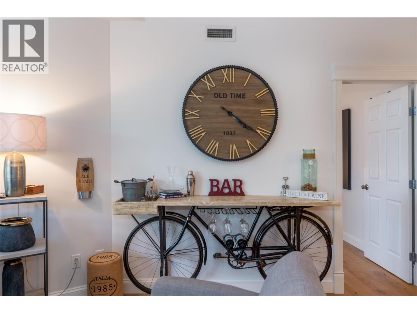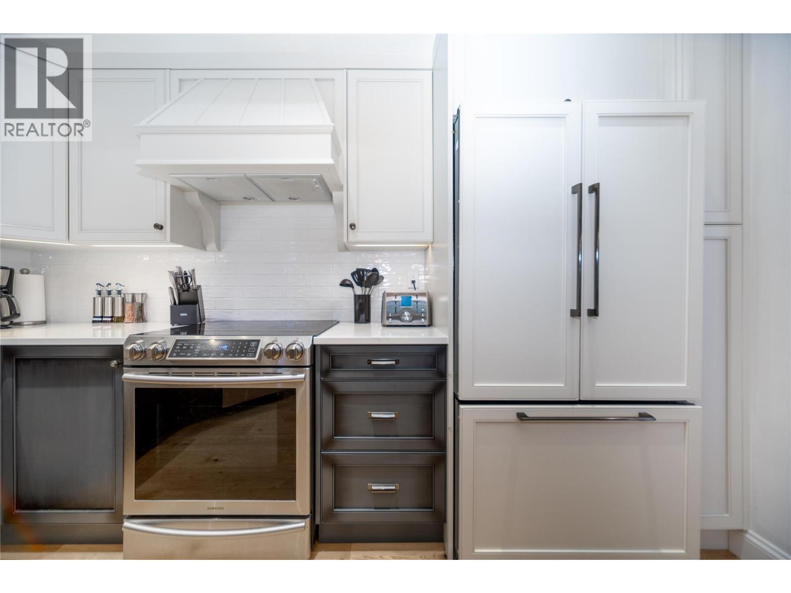 Renovated 3-bed 2-bath suite on the peaceful side of Discovery Bay, right on the shores of Lake Okanagan. With nearly 1,500 sq. ft. of thoughtfully designed living space, this home offers a rare combination of privacy, style, and location. Step inside to white oak engineered hardwood floors, a designer kitchen with custom two-tone cabinetry, quartz countertops, a Bosch whisper-quiet dishwasher, induction/convection oven, and updated lighting throughout. The open layout flows from the kitchen and dining area into the living room, where a tiled gas fireplace creates a warm focal point. Two private decks overlook the bird sanctuary and lush landscaping. Both bathrooms feature heated floors, with the primary ensuite showcasing a spacious walk-in shower. Residents enjoy premium amenities including two pools (one open year-round), two hot tubs, a sauna, fitness centre, and games room—all within walking distance to shops, restaurants, and the beach within the Cultural District. Secure underground parking is included. Pets allowed, 1 small dog or cat. (id:6770)
