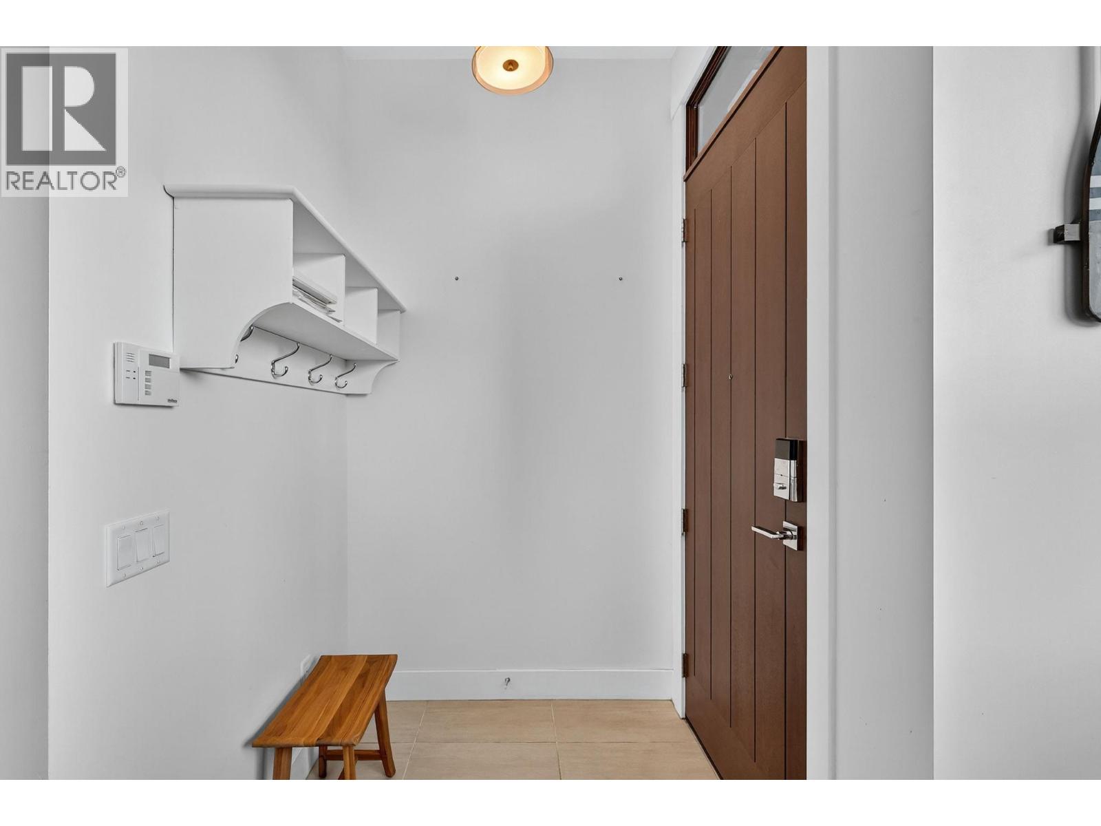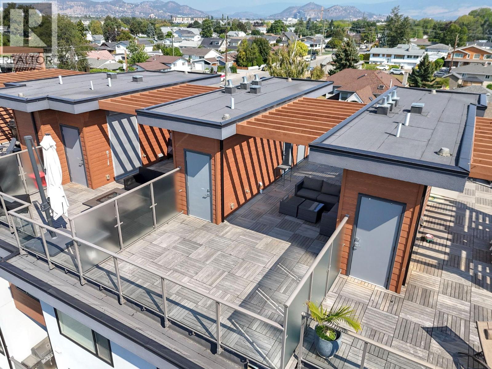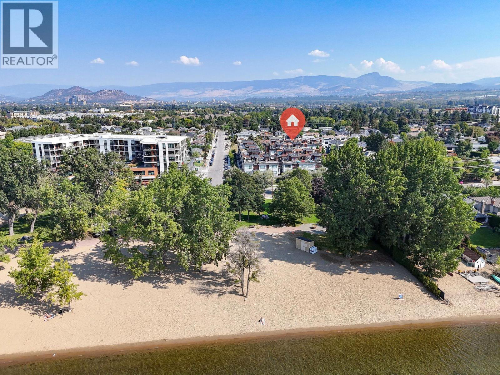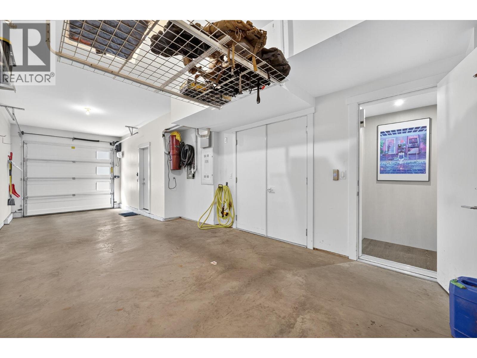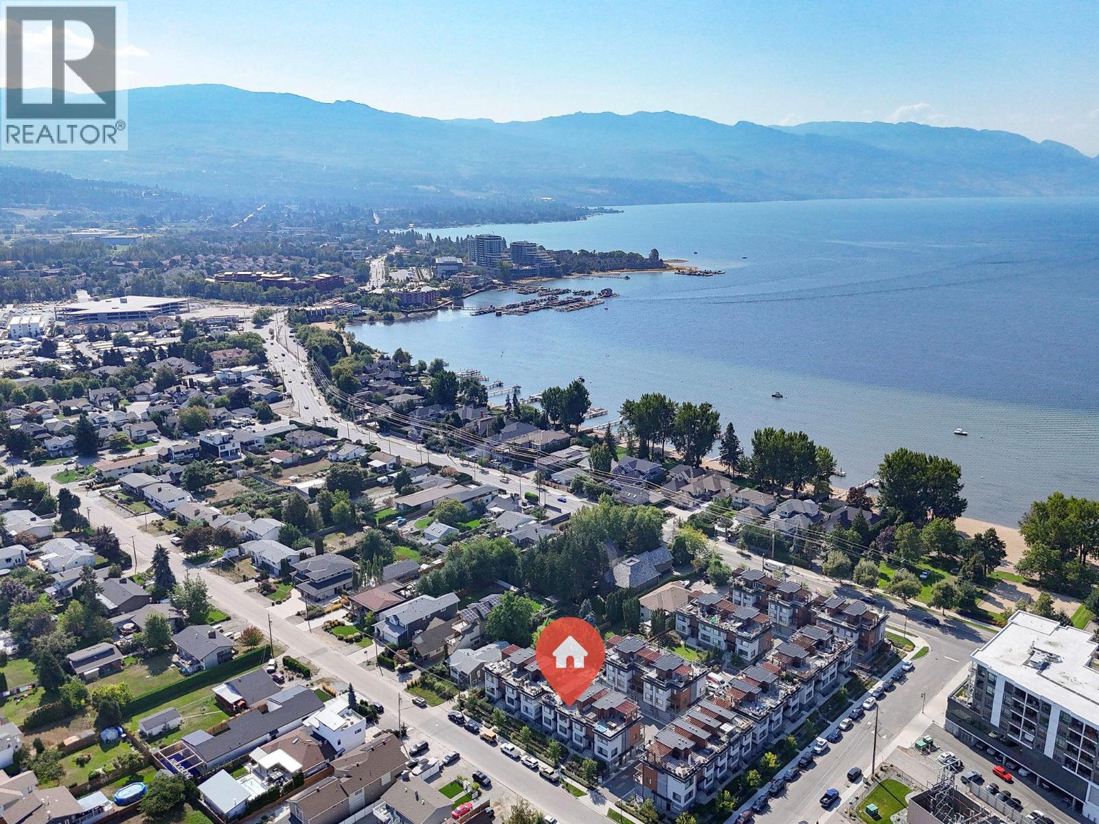 Welcome to luxury living in one of the most walkable neighbourhoods, just steps from Gyro Beach, Okanagan Lake, shopping, and dining. This stunning 2-bedroom, 2-bath townhouse offers nearly 1,500 sq. ft. of intelligently designed space, complete with a private in-unit elevator. The highlight is a rare 600 sq. ft. rooftop patio—perfect for entertaining or unwinding with unbeatable views. Inside, you’ll find an open-concept kitchen with a large island with built-in sink, quartz counters, soft-close cabinetry, stainless steel appliances, and a gas range. The bright living space is located on the quiet side of the building, offering both privacy and comfort. The second bedroom includes a convenient Murphy bed, maximizing versatility. The attached double garage provides secure parking and excellent storage with a ceiling/wall storage system, while additional street parking is right outside your door. Extras include a built-in vacuum, heated ensuite floors, forced air heat, central air conditioning and modern finishes throughout. Rooftop patios like this rarely come to market—especially this close to the water. Bring you pets as you can have one dog or one cat and there is no size restriction on dogs! Don’t miss your chance to own a true gem in the heart of the Okanagan. (id:6770)