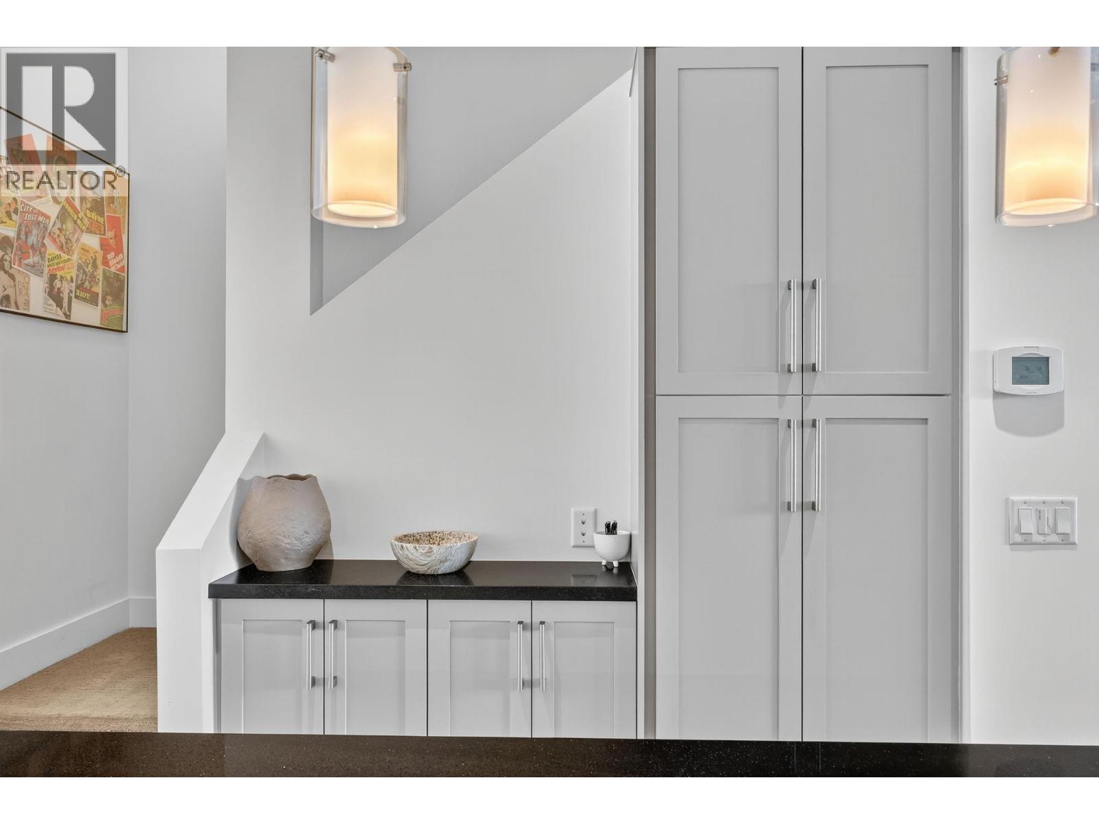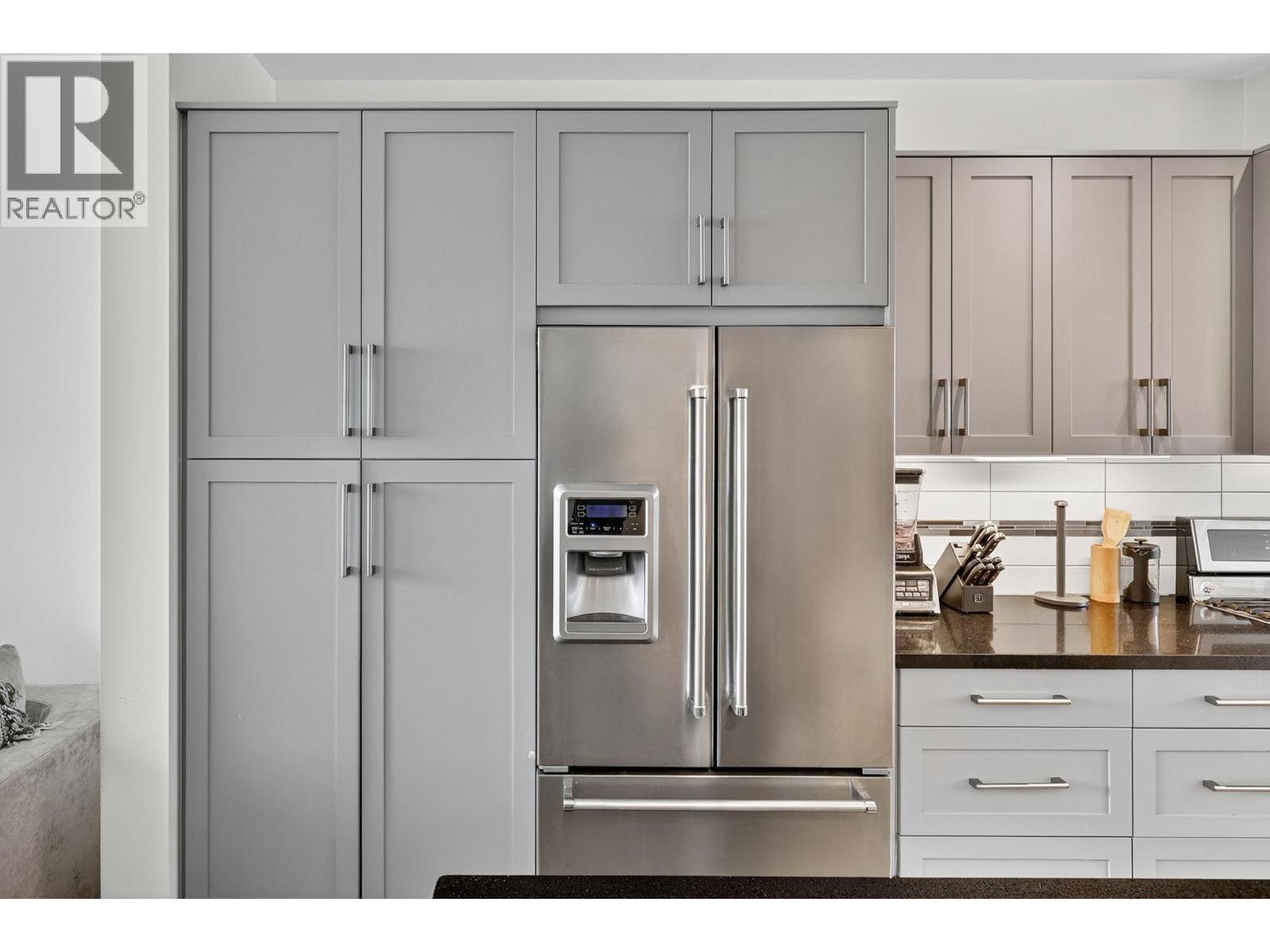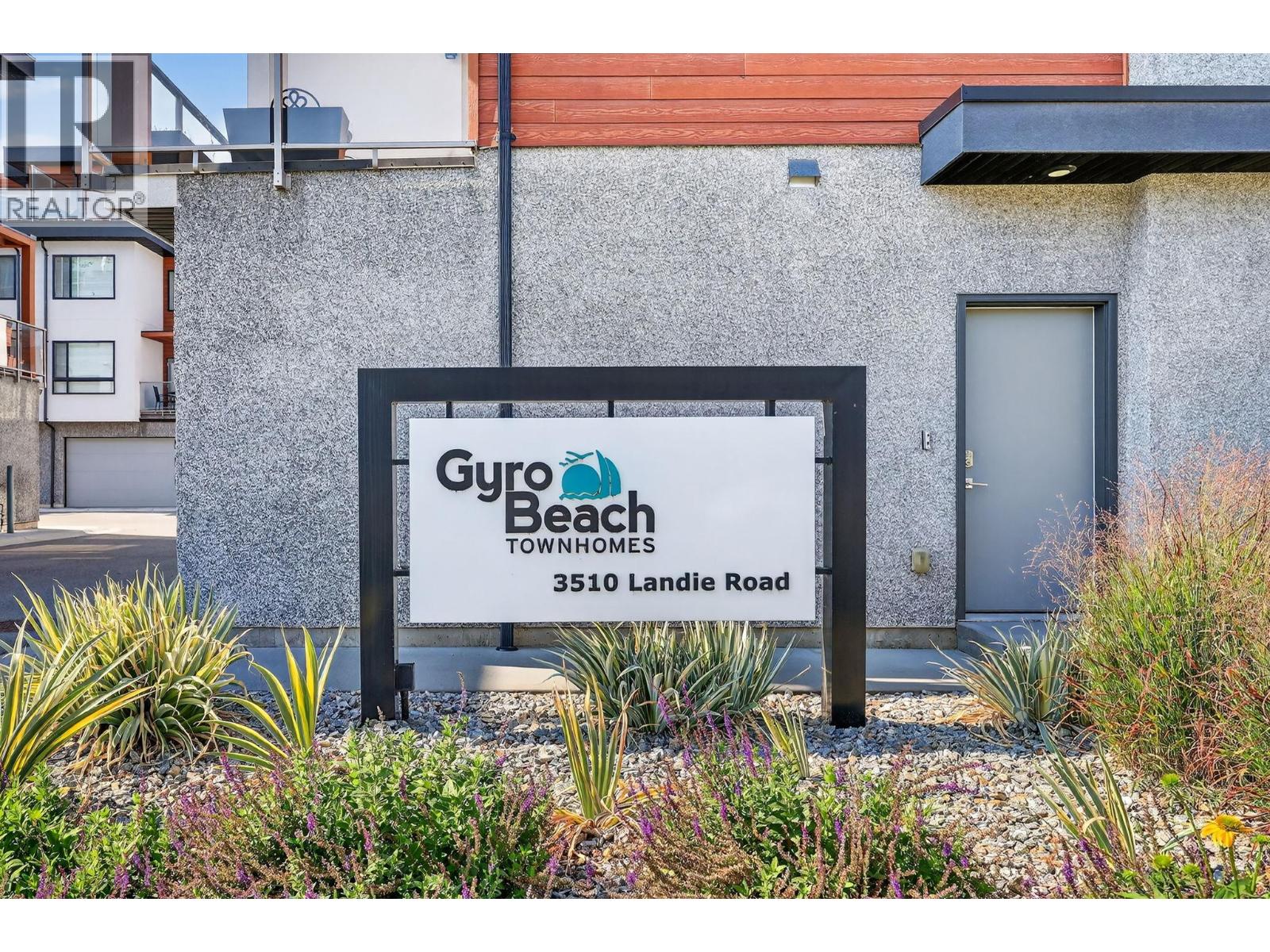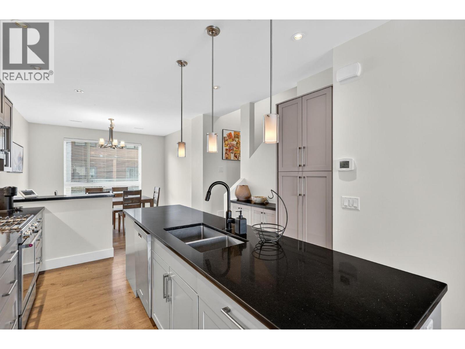 Welcome to luxury living in one of the most walkable neighbourhoods, just steps from Gyro Beach, Okanagan Lake, shopping, and dining. This stunning 2-bedroom, 2-bath townhouse offers nearly 1,500 sq. ft. of intelligently designed space, complete with a private in-unit elevator. The highlight is a rare 600 sq. ft. rooftop patio—perfect for entertaining or unwinding with unbeatable views. Inside, you’ll find an open-concept kitchen with a large island with built-in sink, quartz counters, soft-close cabinetry, stainless steel appliances, and a gas range. The bright living space is located on the quiet side of the building, offering both privacy and comfort. The second bedroom includes a convenient Murphy bed, maximizing versatility. The attached double garage provides secure parking and excellent storage with a ceiling/wall storage system, while additional street parking is right outside your door. Extras include a built-in vacuum, heated ensuite floors, forced air heat, central air conditioning and modern finishes throughout. Rooftop patios like this rarely come to market—especially this close to the water. Bring you pets as you can have one dog or one cat and there is no size restriction on dogs! Don’t miss your chance to own a true gem in the heart of the Okanagan. (id:6770)