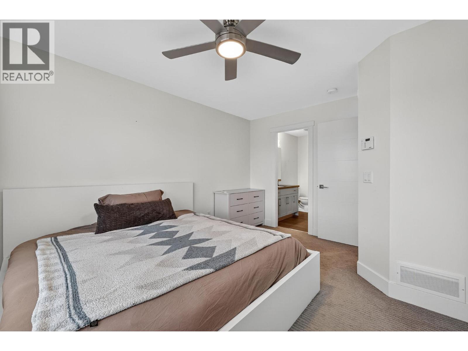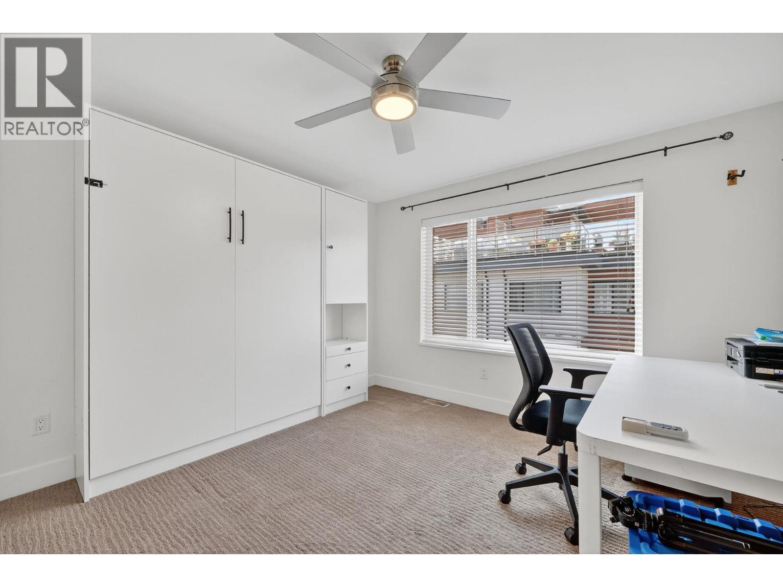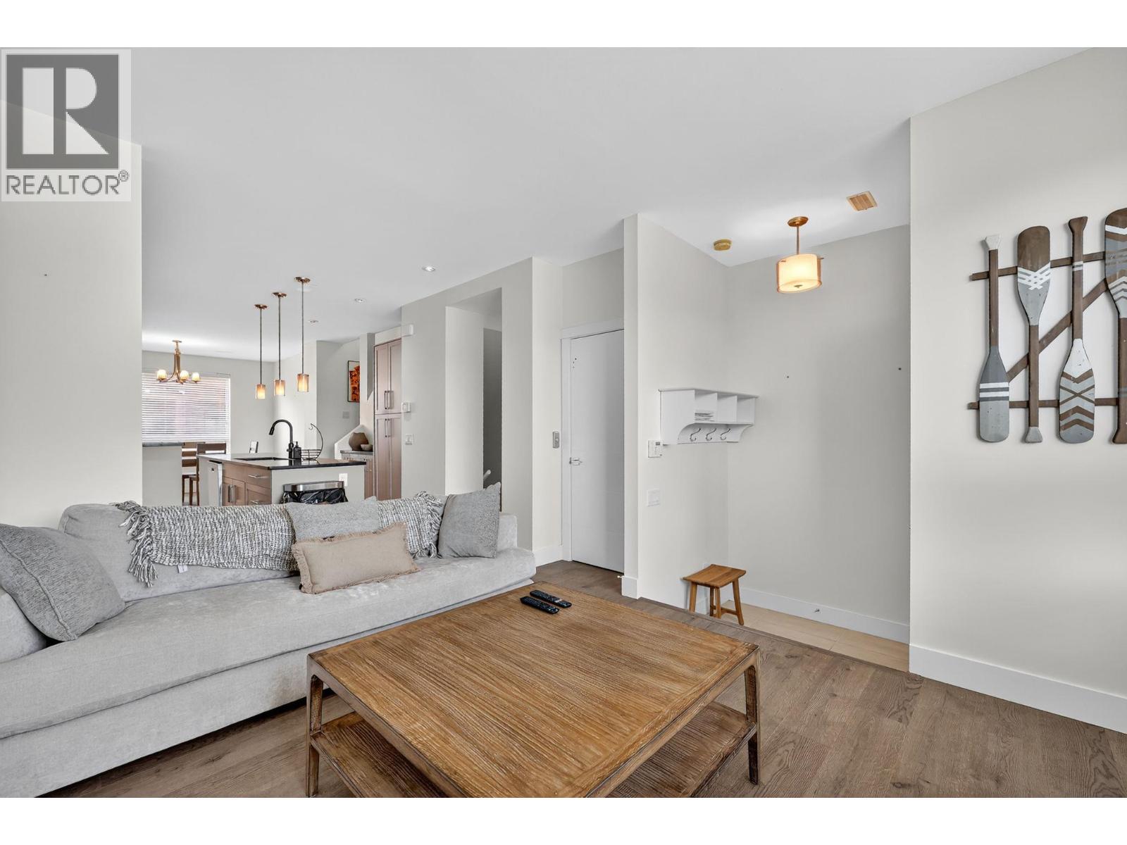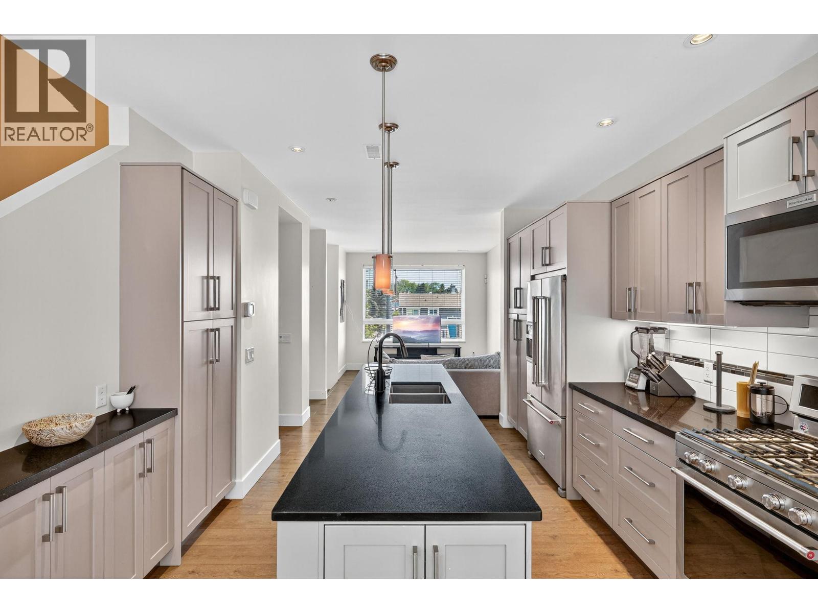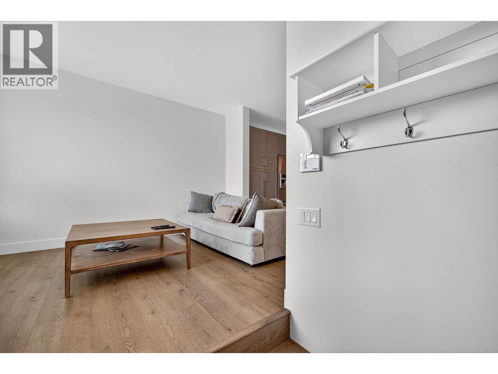 Welcome to luxury living in one of the most walkable neighbourhoods, just steps from Gyro Beach, Okanagan Lake, shopping, and dining. This stunning 2-bedroom, 2-bath townhouse offers nearly 1,500 sq. ft. of intelligently designed space, complete with a private in-unit elevator. The highlight is a rare 600 sq. ft. rooftop patio—perfect for entertaining or unwinding with unbeatable views. Inside, you’ll find an open-concept kitchen with a large island with built-in sink, quartz counters, soft-close cabinetry, stainless steel appliances, and a gas range. The bright living space is located on the quiet side of the building, offering both privacy and comfort. The second bedroom includes a convenient Murphy bed, maximizing versatility. The attached double garage provides secure parking and excellent storage with a ceiling/wall storage system, while additional street parking is right outside your door. Extras include a built-in vacuum, heated ensuite floors, forced air heat, central air conditioning and modern finishes throughout. Rooftop patios like this rarely come to market—especially this close to the water. Bring you pets as you can have one dog or one cat and there is no size restriction on dogs! Don’t miss your chance to own a true gem in the heart of the Okanagan. (id:6770)