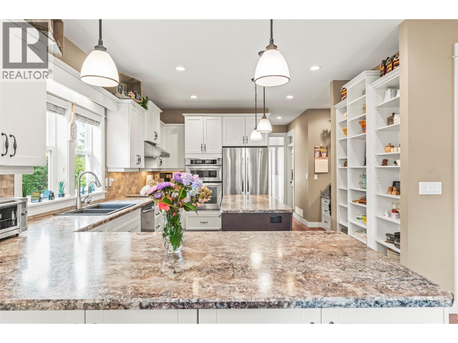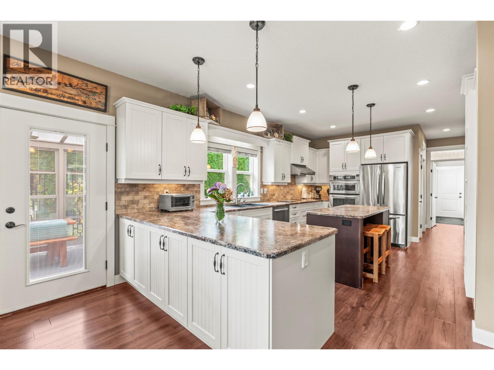 2955 Okanagan St. – A Home Designed to Grow With You. If you’ve been searching for a home that combines timeless style, thoughtful design, and future-proof comfort, this one checks every box. Step onto the covered front porch and into a spacious foyer where the primary suite, with a sitting area & well designed ensuite awaits just off the entry. A 2nd bedroom or den sits opposite, while a graceful staircase leads to the upper level. The main floor is where this home truly shines: a formal living room with double-sided gas fireplace, 9-foot ceilings, and sun-filled windows set the stage. The kitchen is a dream for any cook or baker, featuring a prep island, stainless steel appliances, a walk-in pantry, and bonus area, perfect for a coffee bar. Entertaining is effortless with the adjoining dining room & sunroom, offering seamless indoor-outdoor flow. Custom touches abound, like the bright reading room, perfect for morning coffee or the breezeway that connects to a double garage plus workshop space. Upstairs, you’ll find two oversized bedrooms, a full bath, and a versatile family room. Set on a private panhandle lot with pristine landscaping, a paved drive, lane access, and extra parking, this home offers peace and privacy just steps into town. The six-foot crawlspace provides abundant storage, making life here as functional as it is beautiful. Whether planning for the golden years or hosting family for generations, this is more than a house, it’s your forever home. (id:6770)