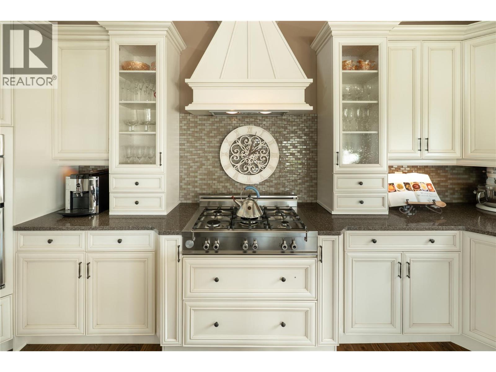 Offering one of the best opportunities in the Upper Mission for buyers seeking exceptional value in a truly one-of-a-kind home. This residence features timeless design and extraordinary detail, offering a lifestyle rarely available at such remarkable value. Situated on a beautifully landscaped corner lot, the estate immediately impresses with its grand curb appeal, lush perennial gardens, and striking architectural lines. Inside, plaster ceilings, wide-plank hardwood, vaulted proportions, and stately columns set an elegant tone, while a custom stone fireplace anchors the light-filled great room. The Westwood kitchen seamlessly blends classic craftsmanship with function, featuring cream cabinetry, a dark granite island, Thermador and Bertazzoni appliances, dovetail drawers, beverage centre, and warming drawer—all thoughtfully designed for both daily living and entertaining. Subtle Tuscan influences flow through double French doors to a private courtyard retreat, complete with a UV freshwater cocktail pool, hot tub, covered gazebo, outdoor fireplace, BBQ, fridge, and sink—creating a true resort-style oasis surrounded by vibrant gardens. The main-floor primary suite is a sanctuary with heated floors, a soaker tub, dual vanities, and a generous walk-in closet. Two additional ensuite bedrooms and a lower level with a gym, custom bar, and family room offer comfort and versatility. Combining old-world craftsmanship with modern ease, this estate represents a rare chance to secure exceptional value in one of Kelowna’s most desirable enclaves. (id:6770)