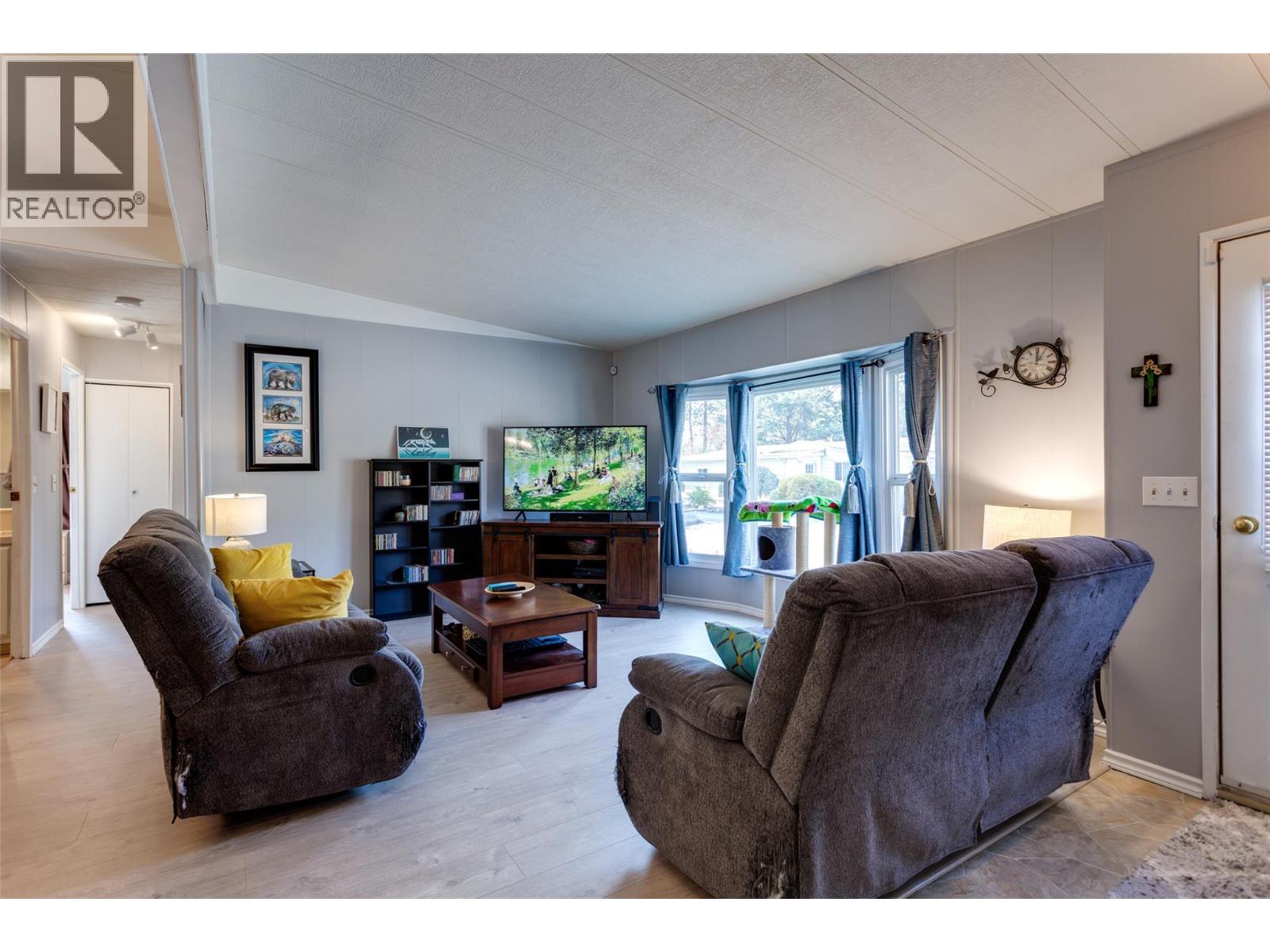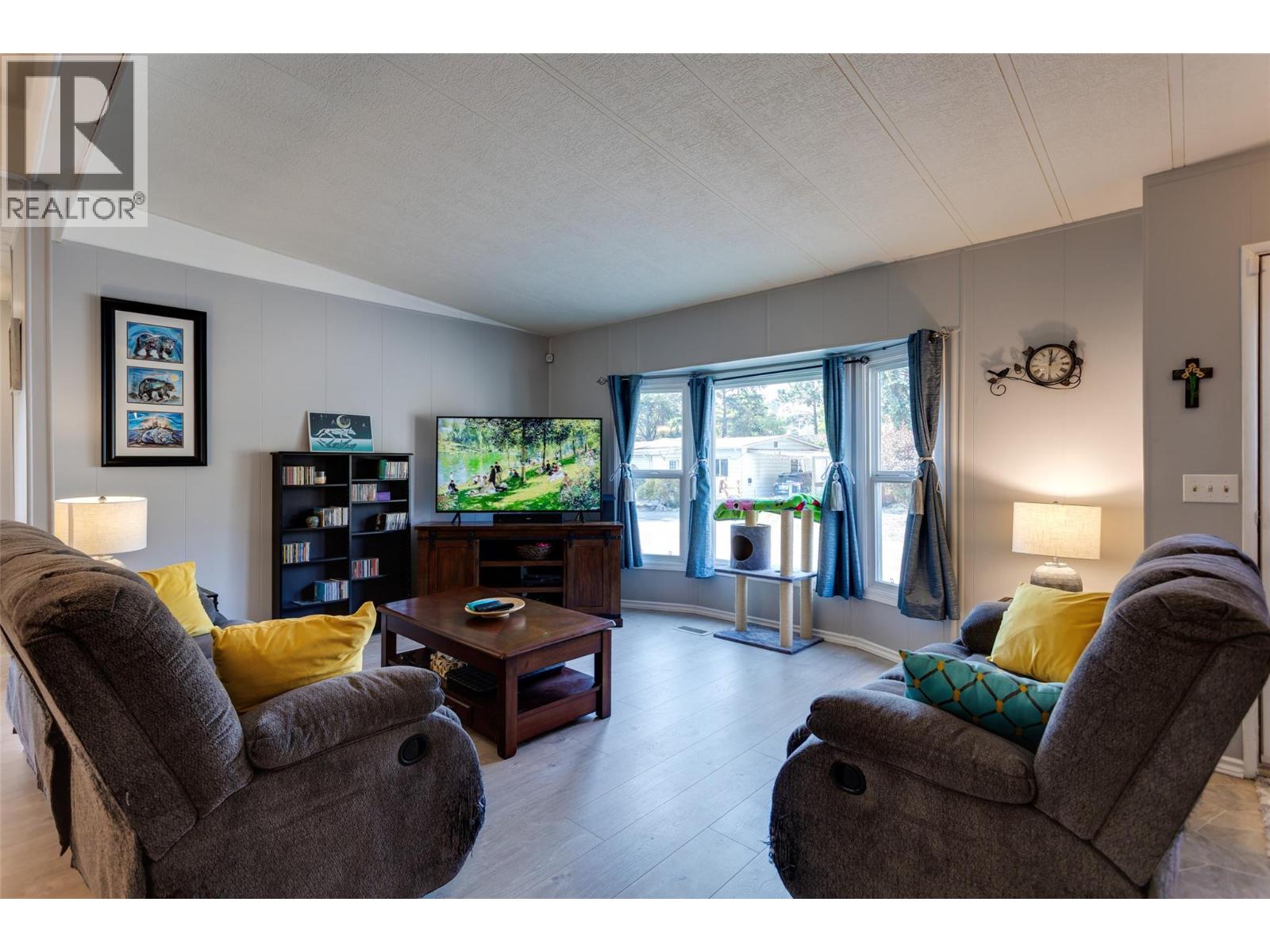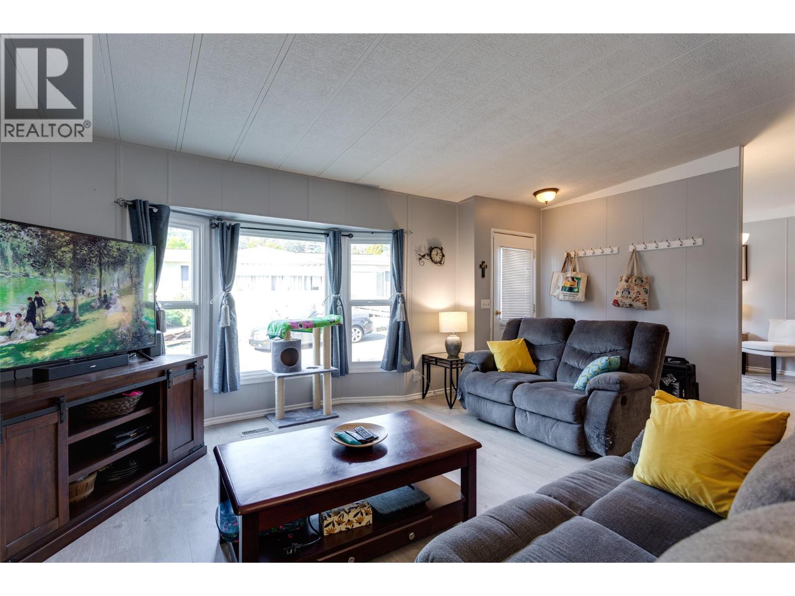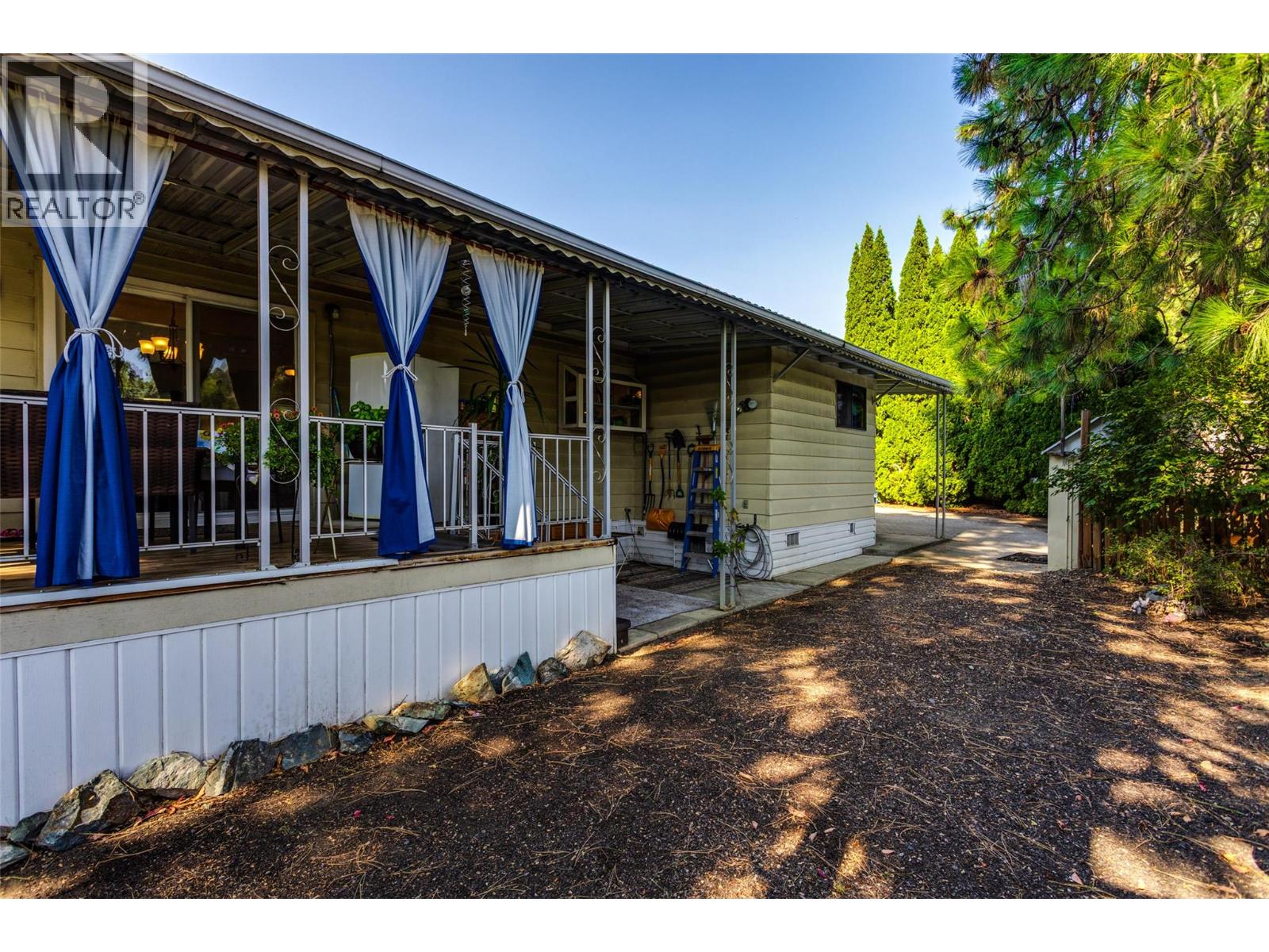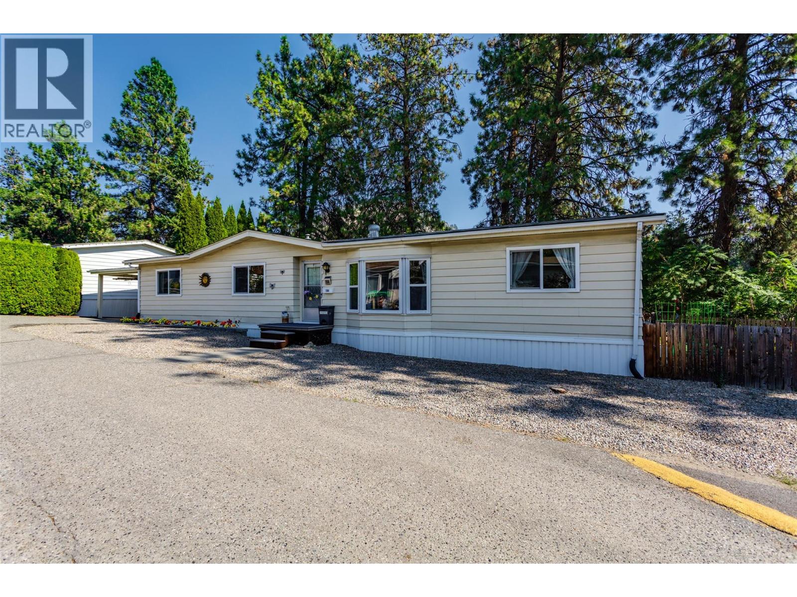 This exceptional 1981 home is located in Westview Village, an 18+ section of one of the area's most desirable manufactured home parks. This beautiful home spans over 1,400 sq/ft, offering three bedrooms plus a den and two bathrooms. The split floor plan provides privacy, with the master bedroom at one end and the other bedrooms at the opposite end. The spacious master bedroom features a large ensuite with a dual vanity, a separate shower, and a soaker tub for ultimate relaxation. The property includes a large, private covered deck in the backyard with no direct neighbors, a generously sized fenced yard perfect for pets, a carport, and ample additional parking for visitors. There is substantial storage with a separate, spacious mudroom and laundry room. Recent updates enhance the home's appeal, including updated flooring, a newer roof (2011), Furnace 2012, a Silver Label, and a hot water tank replaced in 2023. The air conditioning unit is original but well-maintained. Financing is commonly available through BMO and Interior Savings. Westview Village boasts a central location, mere minutes from schools, transit, golf courses, restaurants, shops, beaches, and wineries, providing easy access to the Okanagan lifestyle. The park is pet-friendly, with no height or weight restrictions, though vicious breeds are not permitted. Gross annual taxes are $1,177.84, water/sewer is $178.14 quarterly, and the new pad rent is $690.00. This truly is a one-of-a-kind home. For showing requests, please ensure your client's credit score is approximately 650 or higher for park approval. (id:6770)