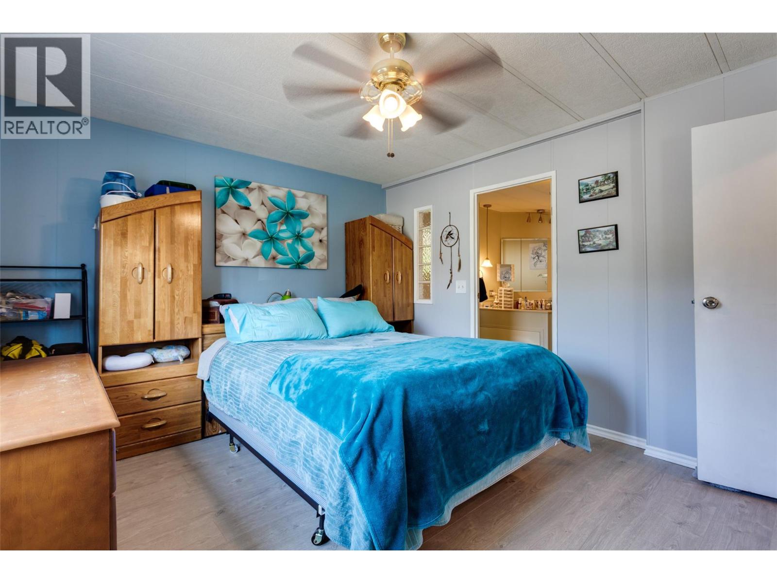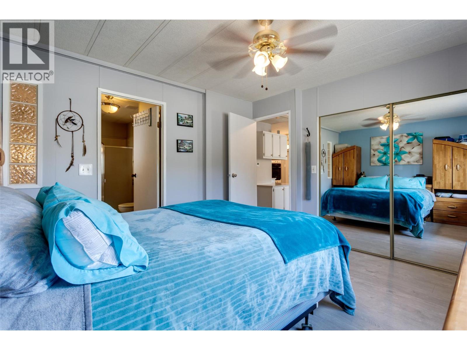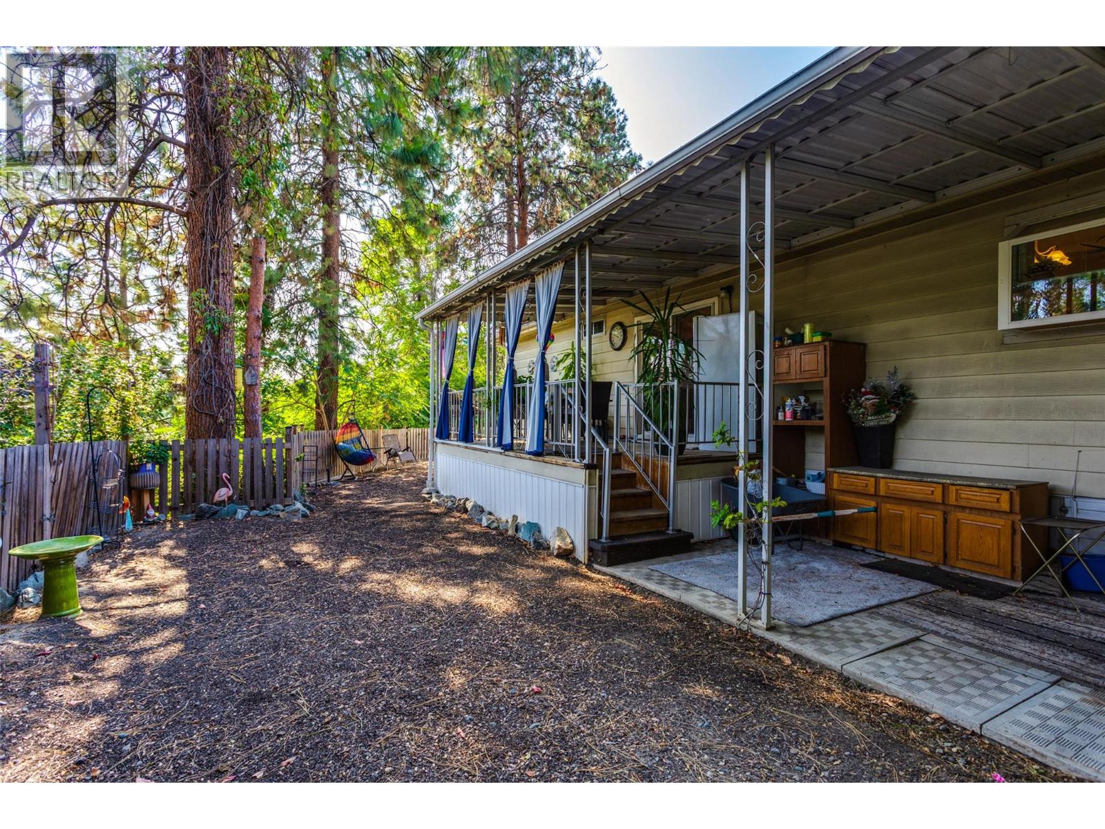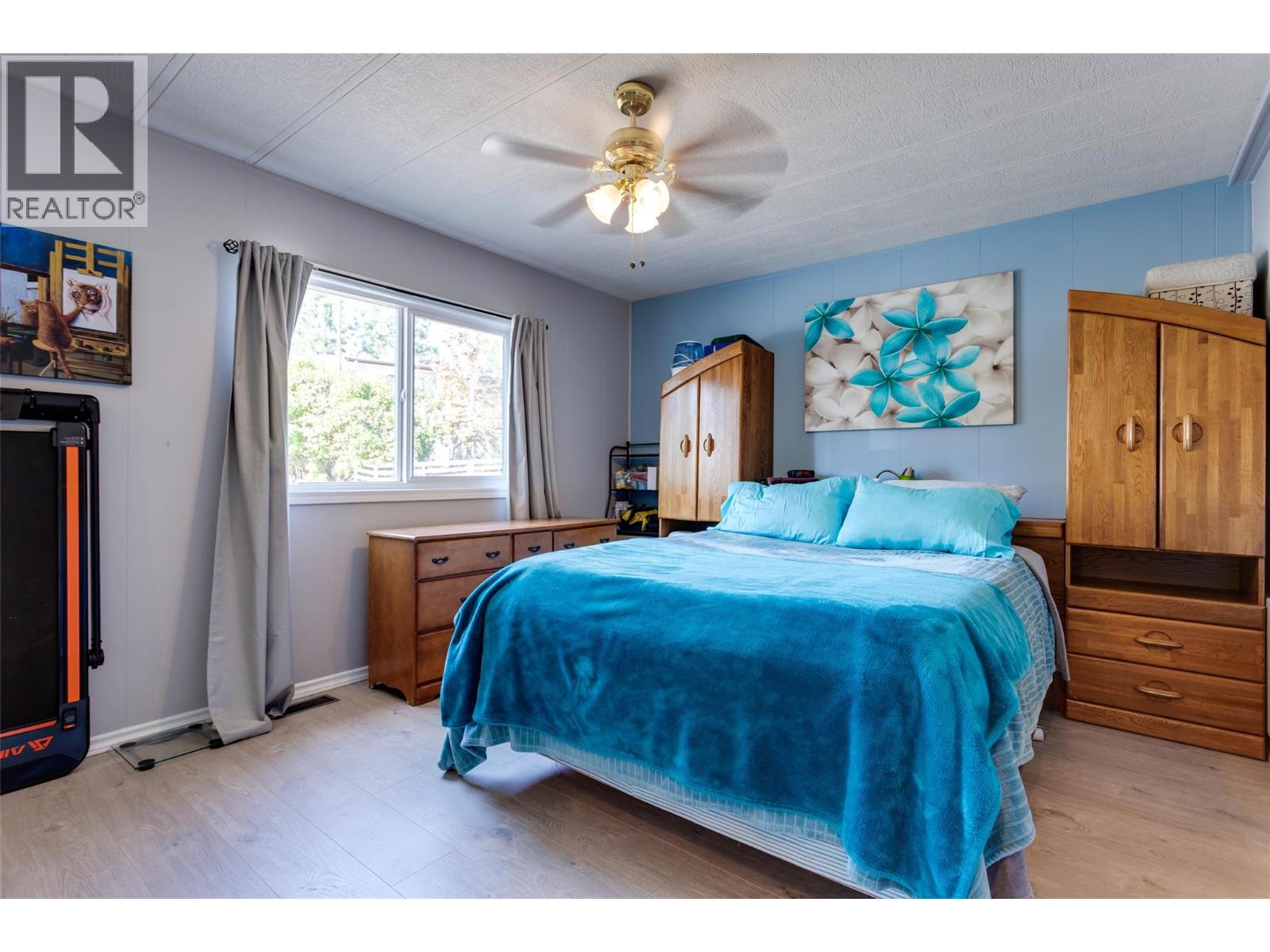 This exceptional 1981 home is located in Westview Village, an 18+ section of one of the area's most desirable manufactured home parks. This beautiful home spans over 1,400 sq/ft, offering three bedrooms plus a den and two bathrooms. The split floor plan provides privacy, with the master bedroom at one end and the other bedrooms at the opposite end. The spacious master bedroom features a large ensuite with a dual vanity, a separate shower, and a soaker tub for ultimate relaxation. The property includes a large, private covered deck in the backyard with no direct neighbors, a generously sized fenced yard perfect for pets, a carport, and ample additional parking for visitors. There is substantial storage with a separate, spacious mudroom and laundry room. Recent updates enhance the home's appeal, including updated flooring, a newer roof (2011), Furnace 2012, a Silver Label, and a hot water tank replaced in 2023. The air conditioning unit is original but well-maintained. Financing is commonly available through BMO and Interior Savings. Westview Village boasts a central location, mere minutes from schools, transit, golf courses, restaurants, shops, beaches, and wineries, providing easy access to the Okanagan lifestyle. The park is pet-friendly, with no height or weight restrictions, though vicious breeds are not permitted. Gross annual taxes are $1,177.84, water/sewer is $178.14 quarterly, and the new pad rent is $690.00. This truly is a one-of-a-kind home. For showing requests, please ensure your client's credit score is approximately 650 or higher for park approval. (id:6770)