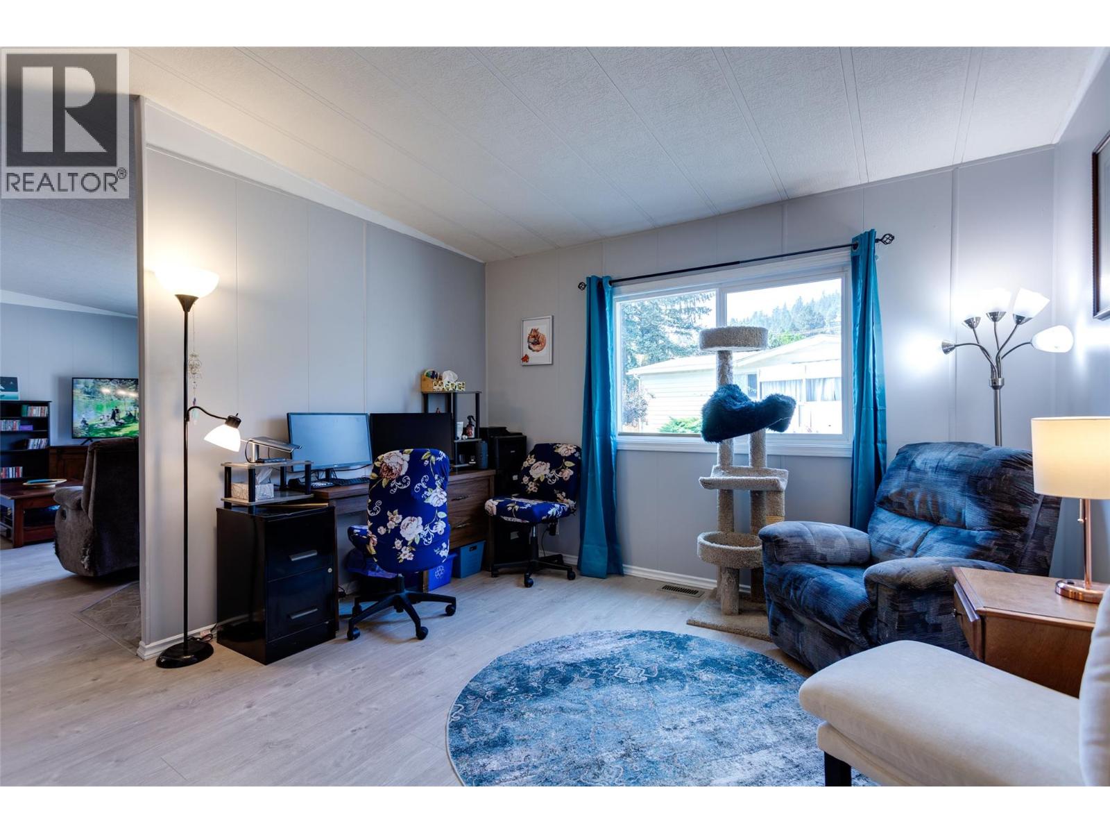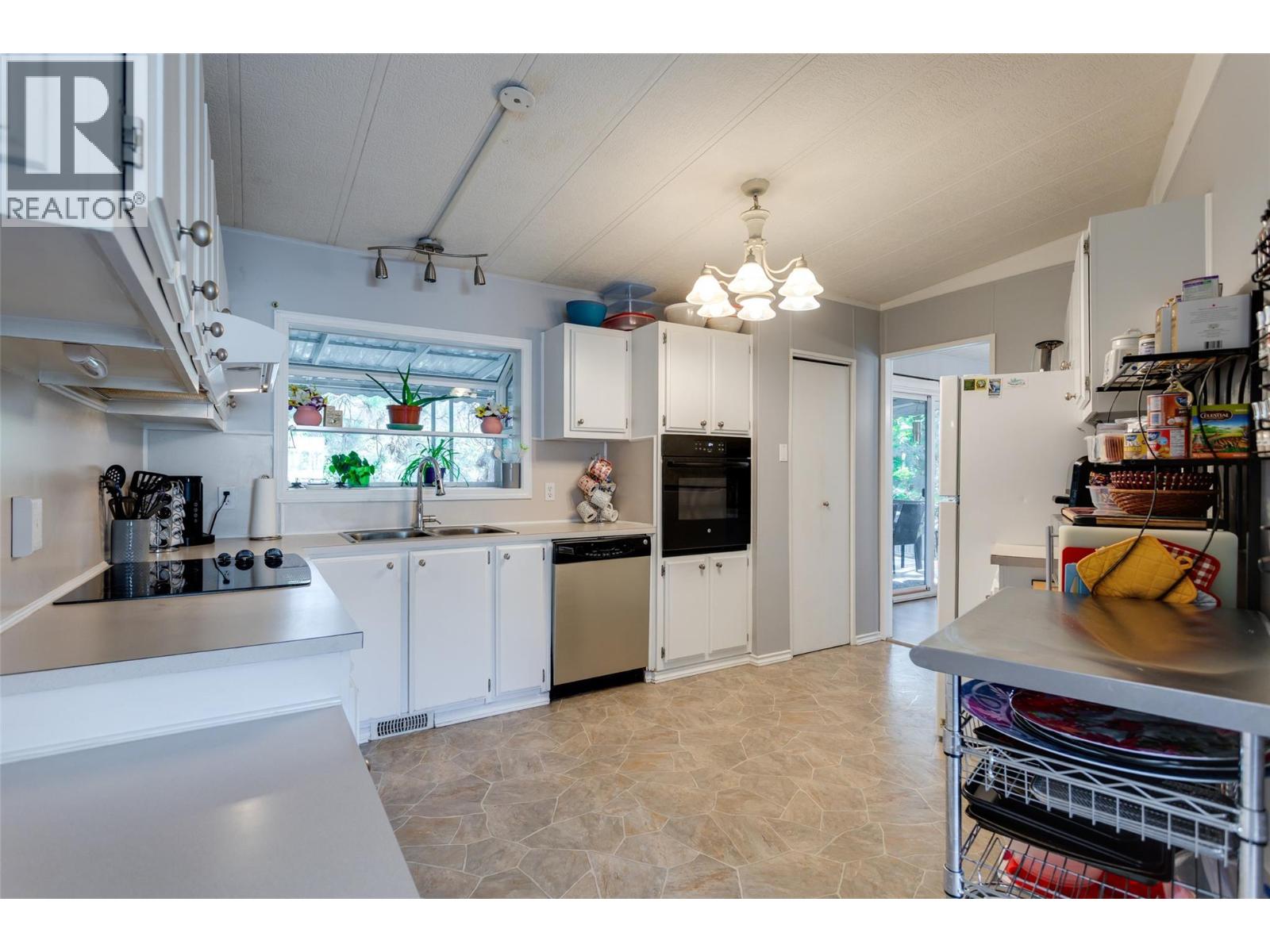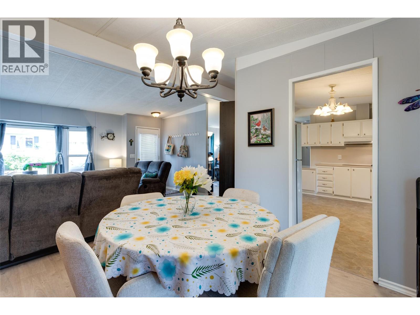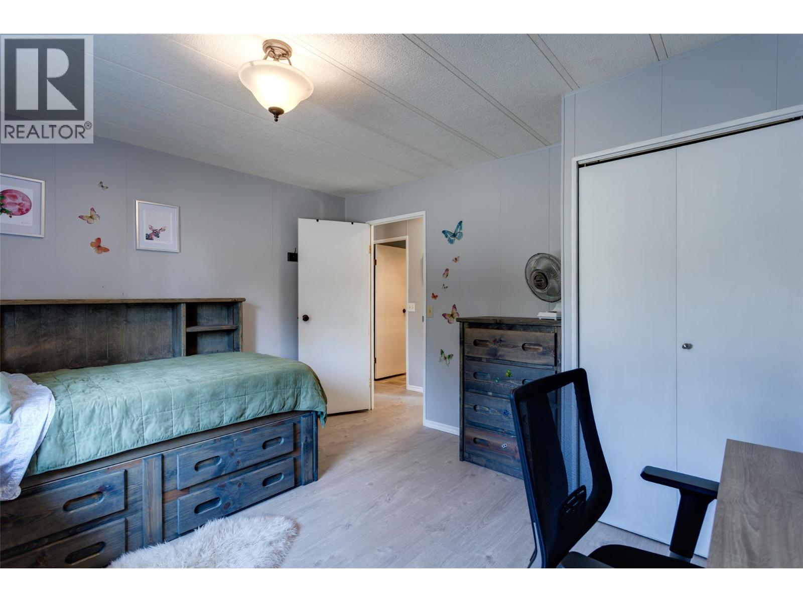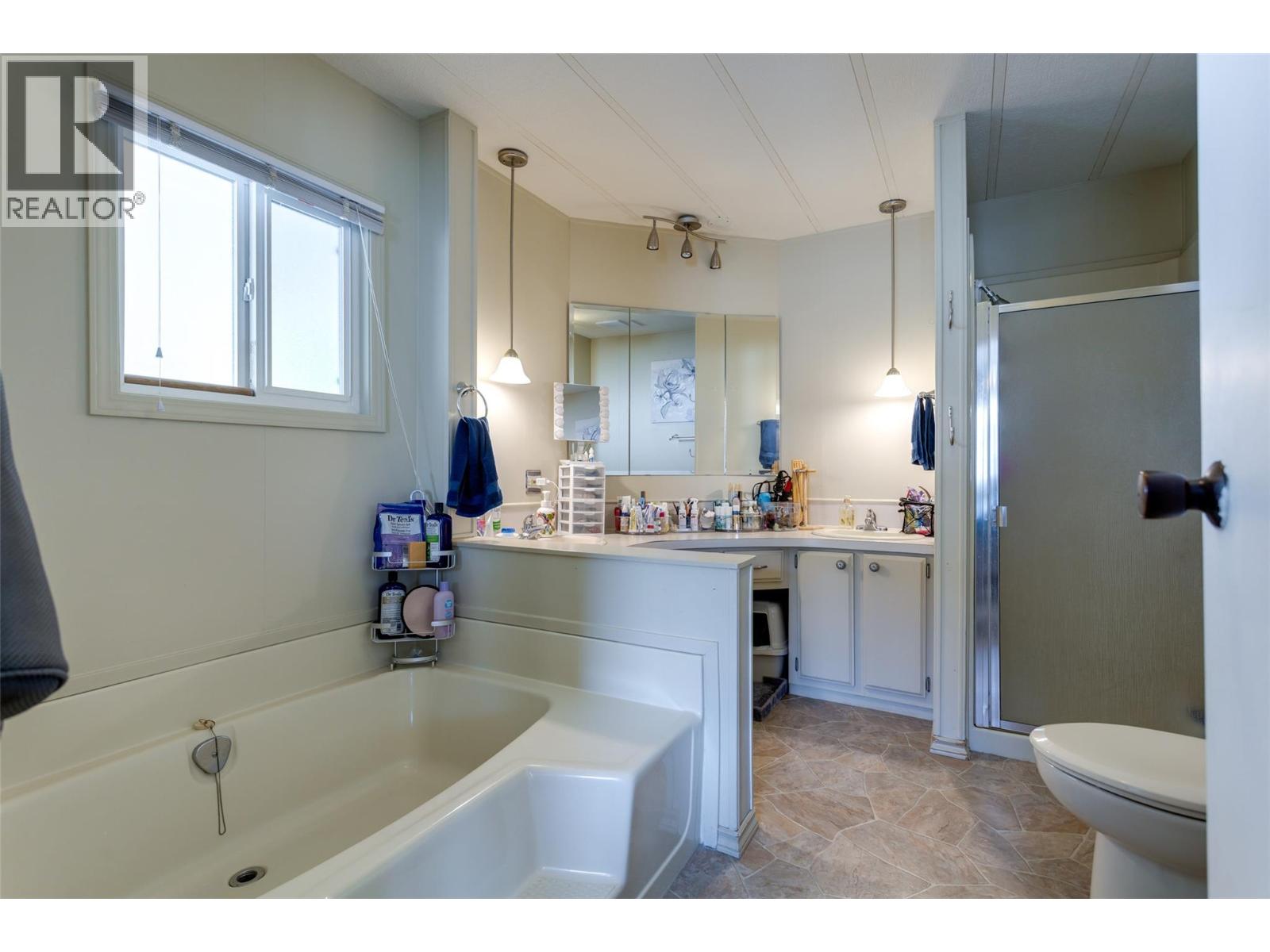 This exceptional 1981 home is located in Westview Village, an 18+ section of one of the area's most desirable manufactured home parks. This beautiful home spans over 1,400 sq/ft, offering three bedrooms plus a den and two bathrooms. The split floor plan provides privacy, with the master bedroom at one end and the other bedrooms at the opposite end. The spacious master bedroom features a large ensuite with a dual vanity, a separate shower, and a soaker tub for ultimate relaxation. The property includes a large, private covered deck in the backyard with no direct neighbors, a generously sized fenced yard perfect for pets, a carport, and ample additional parking for visitors. There is substantial storage with a separate, spacious mudroom and laundry room. Recent updates enhance the home's appeal, including updated flooring, a newer roof (2011), Furnace 2012, a Silver Label, and a hot water tank replaced in 2023. The air conditioning unit is original but well-maintained. Financing is commonly available through BMO and Interior Savings. Westview Village boasts a central location, mere minutes from schools, transit, golf courses, restaurants, shops, beaches, and wineries, providing easy access to the Okanagan lifestyle. The park is pet-friendly, with no height or weight restrictions, though vicious breeds are not permitted. Gross annual taxes are $1,177.84, water/sewer is $178.14 quarterly, and the new pad rent is $690.00. This truly is a one-of-a-kind home. For showing requests, please ensure your client's credit score is approximately 650 or higher for park approval. (id:6770)
