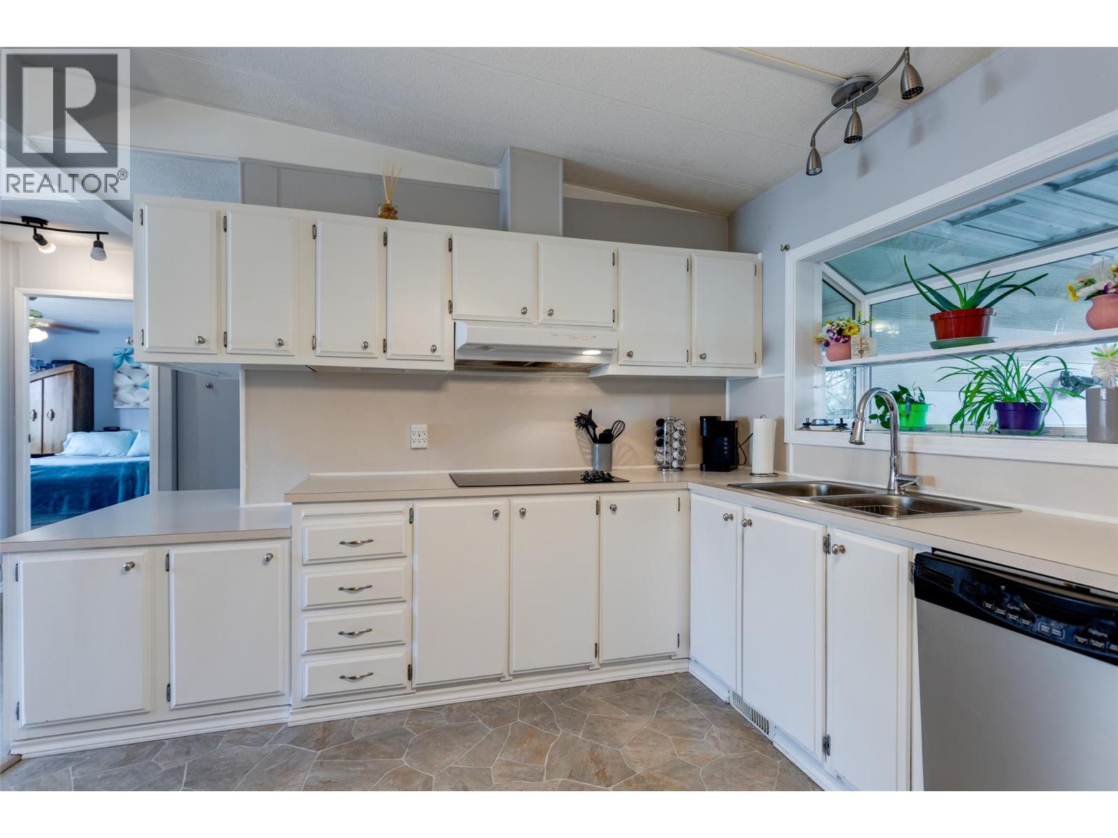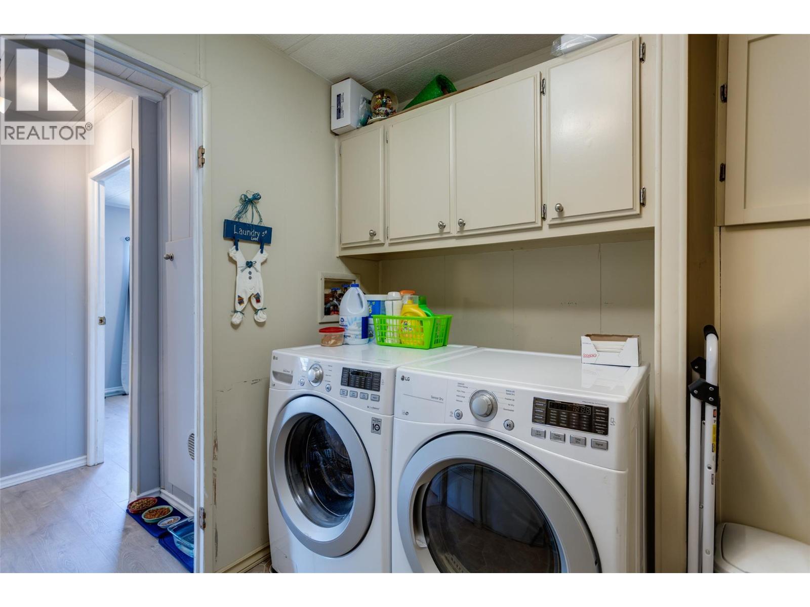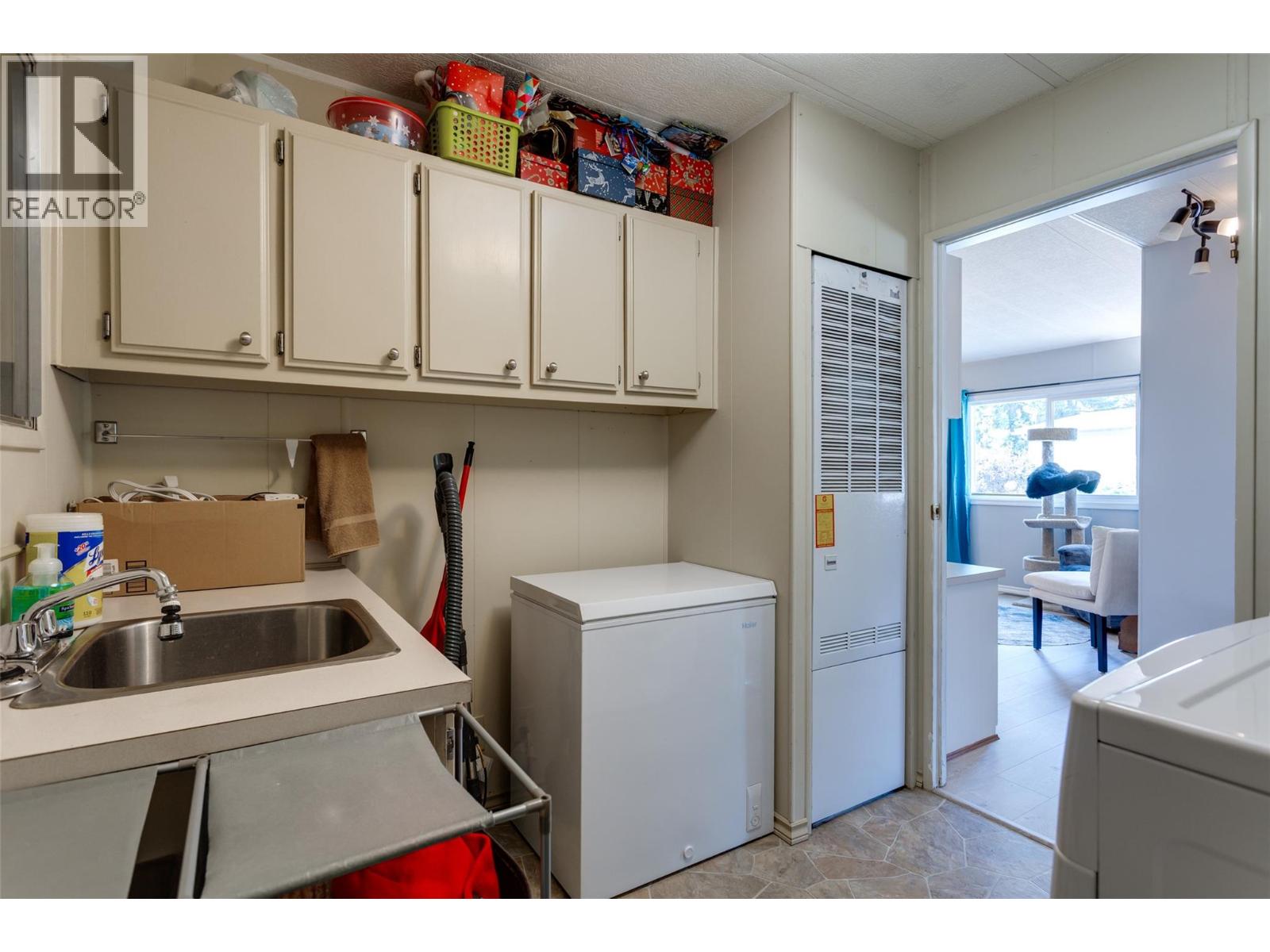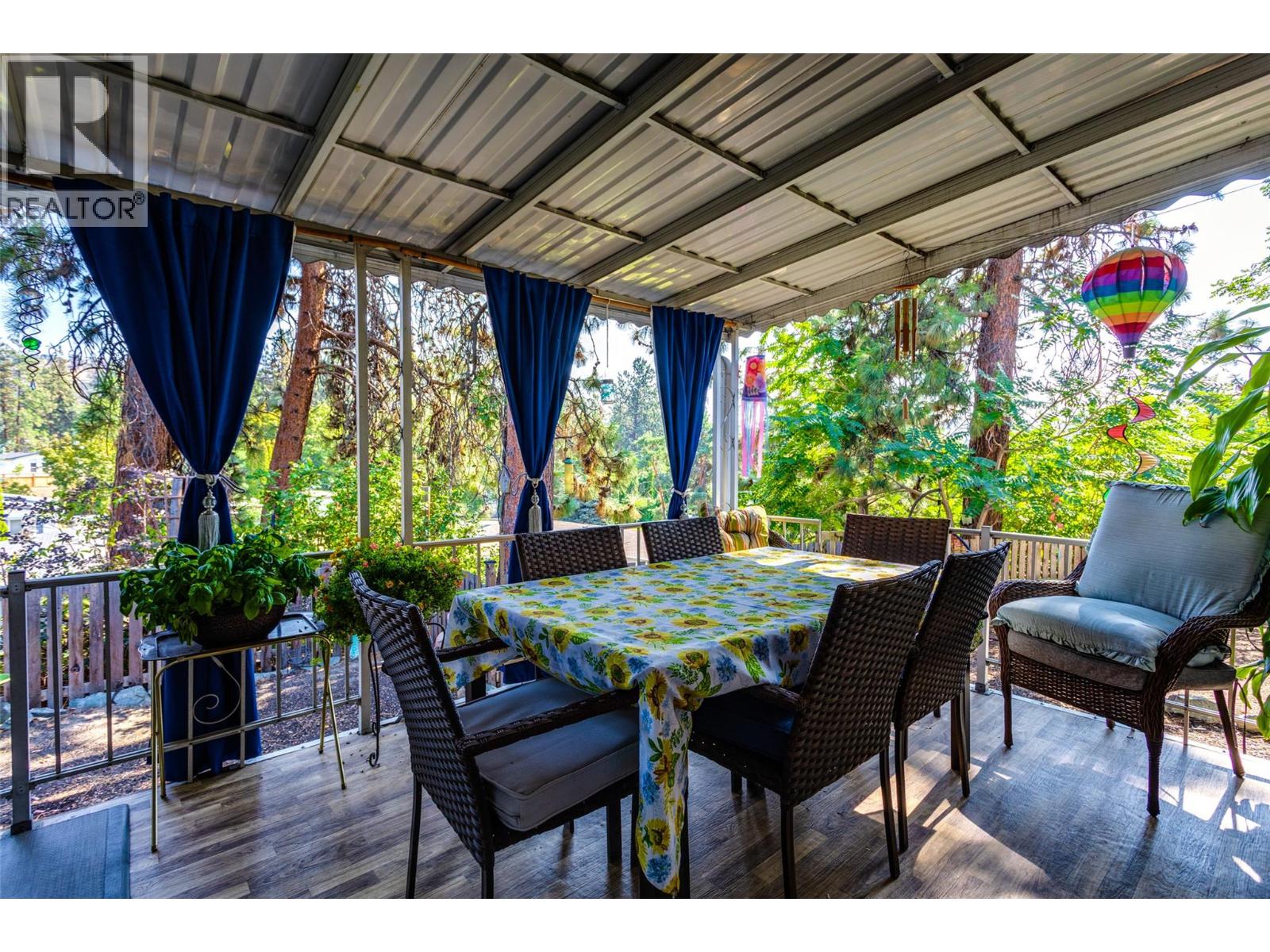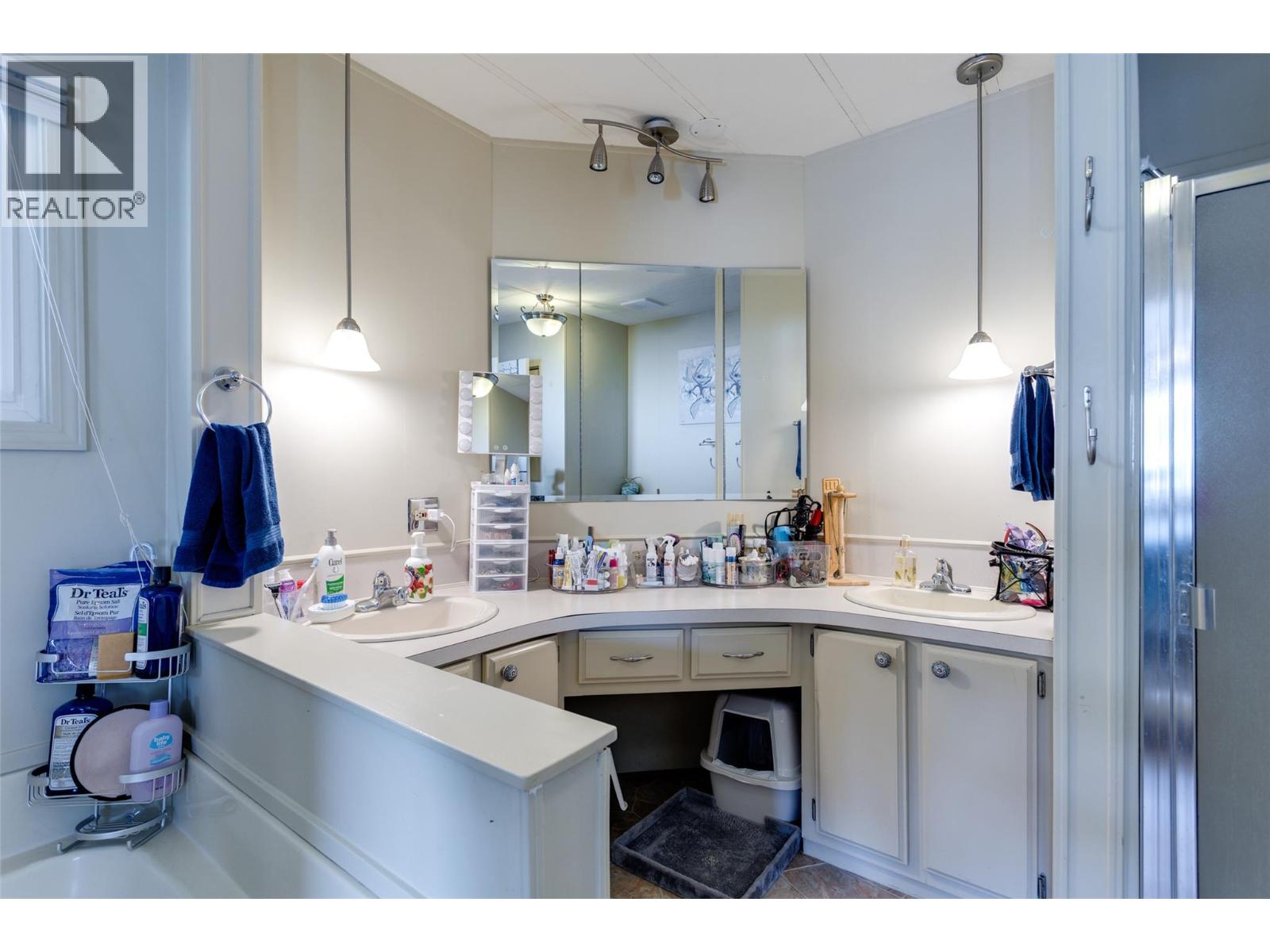 This exceptional 1981 home is located in Westview Village, an 18+ section of one of the area's most desirable manufactured home parks. This beautiful home spans over 1,400 sq/ft, offering three bedrooms plus a den and two bathrooms. The split floor plan provides privacy, with the master bedroom at one end and the other bedrooms at the opposite end. The spacious master bedroom features a large ensuite with a dual vanity, a separate shower, and a soaker tub for ultimate relaxation. The property includes a large, private covered deck in the backyard with no direct neighbors, a generously sized fenced yard perfect for pets, a carport, and ample additional parking for visitors. There is substantial storage with a separate, spacious mudroom and laundry room. Recent updates enhance the home's appeal, including updated flooring, a newer roof (2011), Furnace 2012, a Silver Label, and a hot water tank replaced in 2023. The air conditioning unit is original but well-maintained. Financing is commonly available through BMO and Interior Savings. Westview Village boasts a central location, mere minutes from schools, transit, golf courses, restaurants, shops, beaches, and wineries, providing easy access to the Okanagan lifestyle. The park is pet-friendly, with no height or weight restrictions, though vicious breeds are not permitted. Gross annual taxes are $1,177.84, water/sewer is $178.14 quarterly, and the new pad rent is $690.00. This truly is a one-of-a-kind home. For showing requests, please ensure your client's credit score is approximately 650 or higher for park approval. (id:6770)