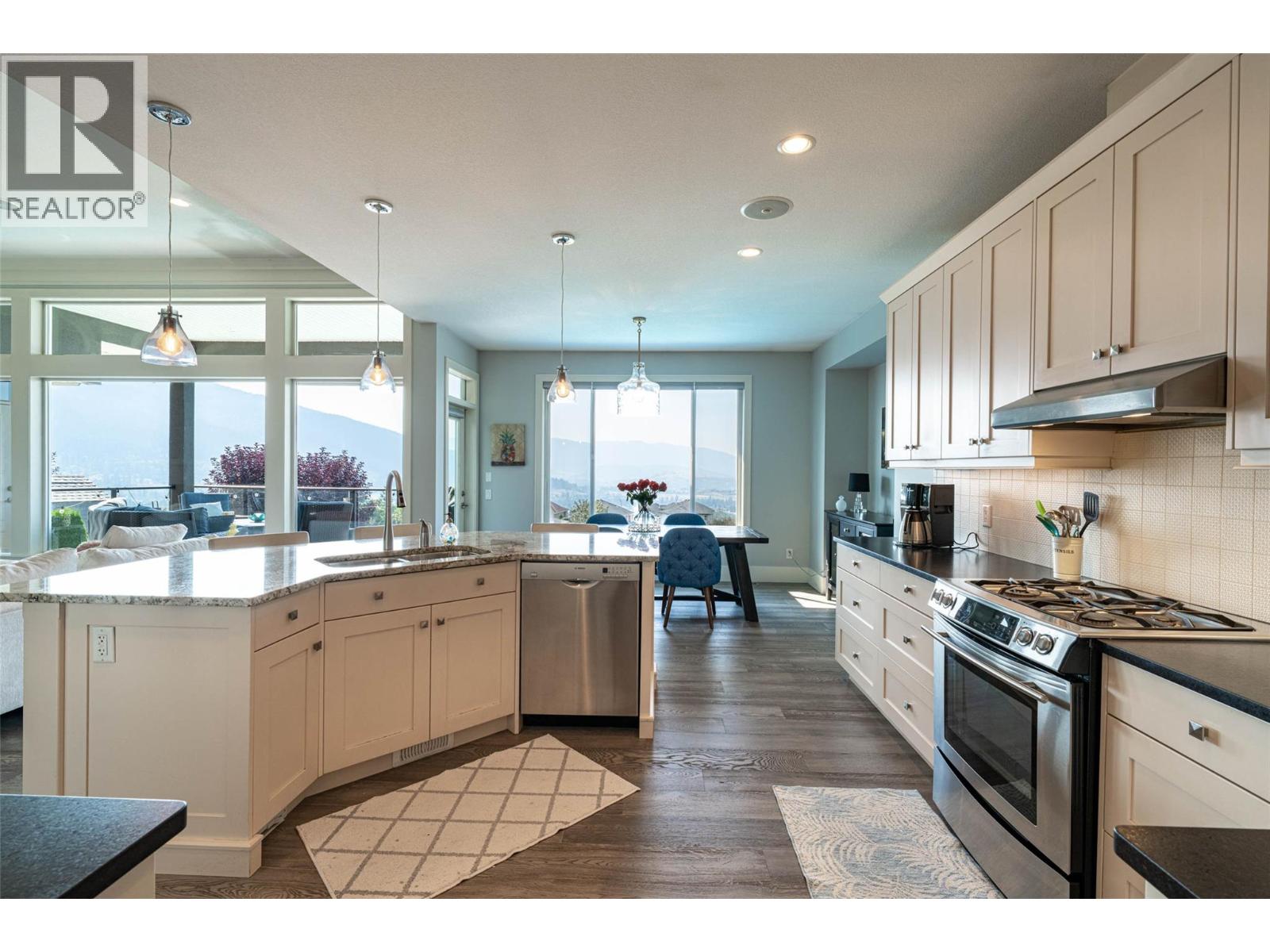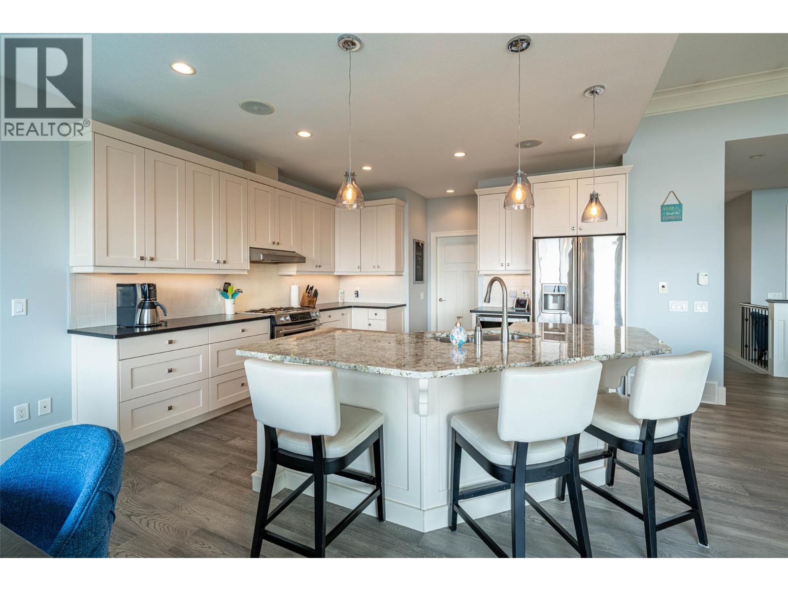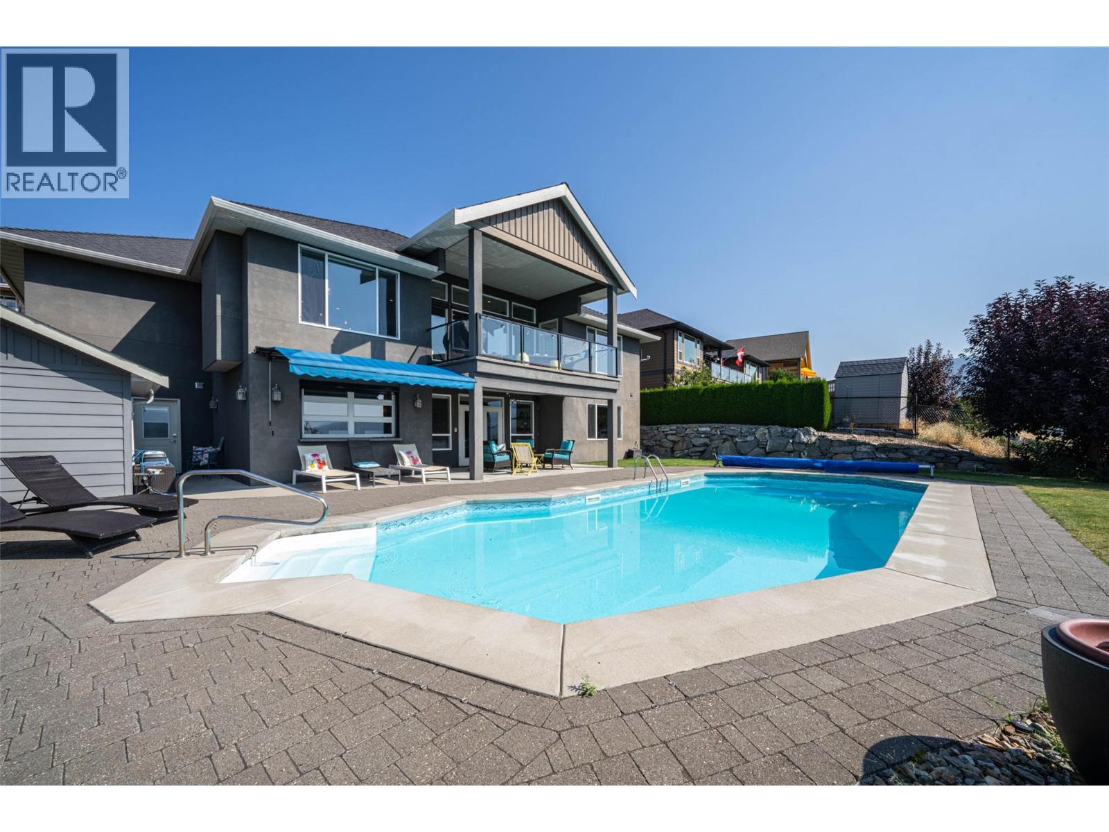 Desirable floor plan, pool, suite and stunning home located in the highly desirable community of the Foothills! Perfectly positioned with walking trails outside your door. Step inside this rancher to a grand entry with soaring ceilings and expansive windows that showcase breathtaking views of the city, Kalamalka Lake, and Okanagan Lake. The open-concept main floor is light and airy, featuring engineered hardwood, a stone gas fireplace, and a chef’s kitchen complete with granite counters, stainless steel appliances, and a walk-in pantry. Step out onto the deck to enjoy your morning coffee against the incredible backdrop. The main level also offers a versatile office (or extra bedroom), a full shared bathroom, and a luxurious primary retreat with walk-in closet and spa-inspired 5-piece ensuite with double vanity. Laundry with a sink and access to the double garage are conveniently located on this level. Downstairs, the walk-out basement is designed for entertaining. A family room with wet bar and garage-style door opens seamlessly to the pool deck, where bar seating sets the scene for unforgettable poolside gatherings. This level also includes two bedrooms, one featuring its own ensuite, a full shared bathroom, and a separate one-bedroom suite with private entrance- ideal as a mortgage helper or short-term rental. Outside, the private backyard is a true oasis with an in-ground heated pool and space to lounge and soak up the Okanagan sun. Lovingly maintained by its original owner, this home is ready for its next chapter. Enjoy four-season living at its finest, close to world-class skiing, golf, and two stunning lakes. This is Okanagan living at its very best. (id:6770)