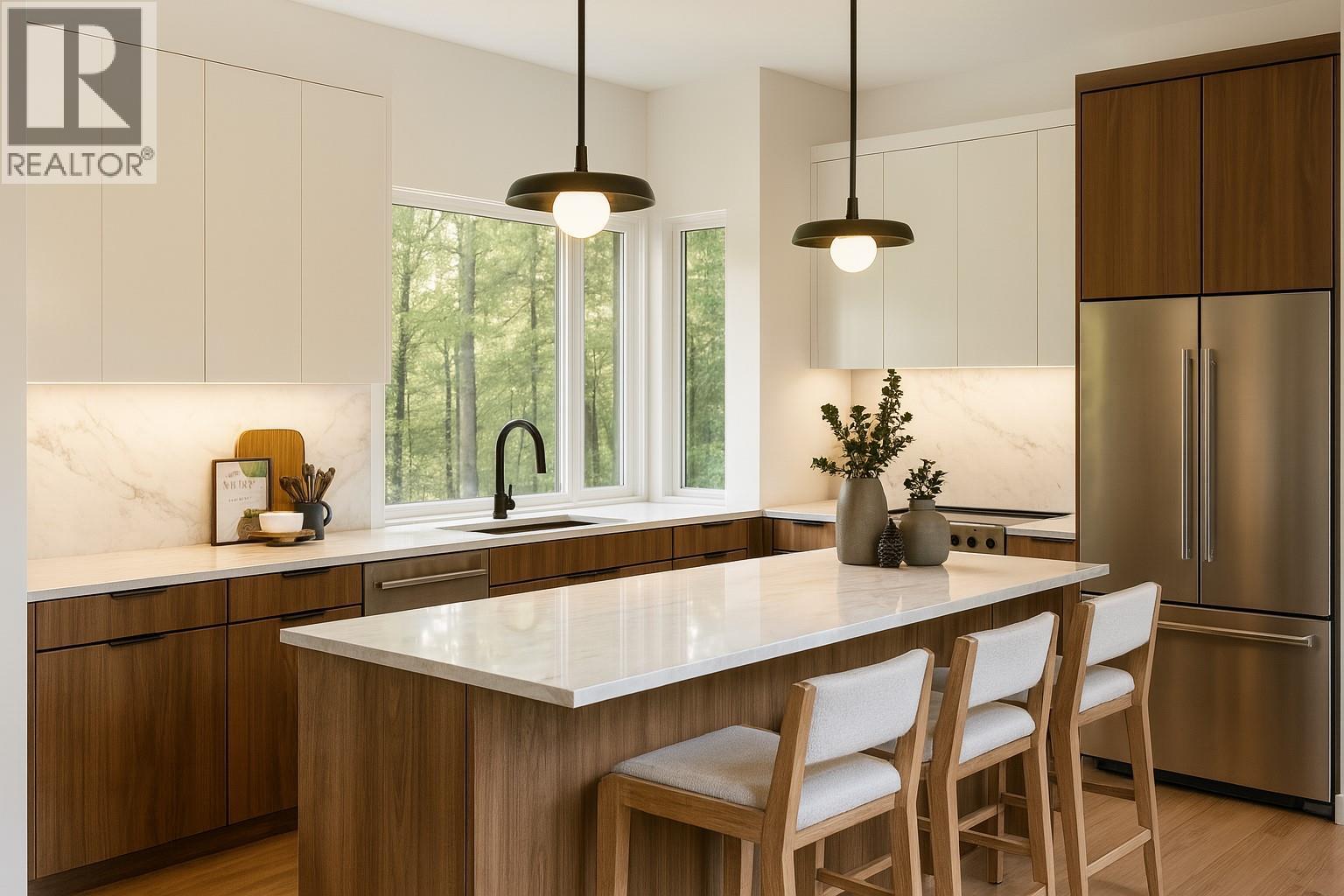 Welcome to Juniper Grove at McKinley Beach, single-family homes surrounding Arrowroot Pond in the Hilltown neighborhood. Lot 9 is a thoughtfully designed 3-bedroom plus den, 4-bath residence highlighted by two primary bedrooms, each with its own ensuite, creating an ideal layout for multi-generational living, hosting guests, or offering additional privacy and flexibility for today’s lifestyle. The open-concept design features a modern kitchen, a welcoming fireplace, and a wrap-around deck with views of the natural surroundings. With ample parking and stylish mid-century modern finishes, the home combines everyday functionality with contemporary elegance. Juniper Grove offers the best of the McKinley Beach lifestyle, with easy access to trails, playgrounds, and the beach, along with the nearby amenity centre featuring a pool, hot tub, gym, and yoga room. The neighborhood is connected, family-friendly, and designed for both relaxation and recreation, while still being just minutes from Kelowna International Airport, UBCO, and downtown Kelowna. Move-in is scheduled for January/February 2026, making this an exceptional opportunity to own in one of Kelowna’s most sought-after lakefront communities. (id:6770)