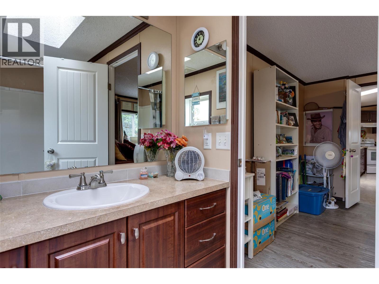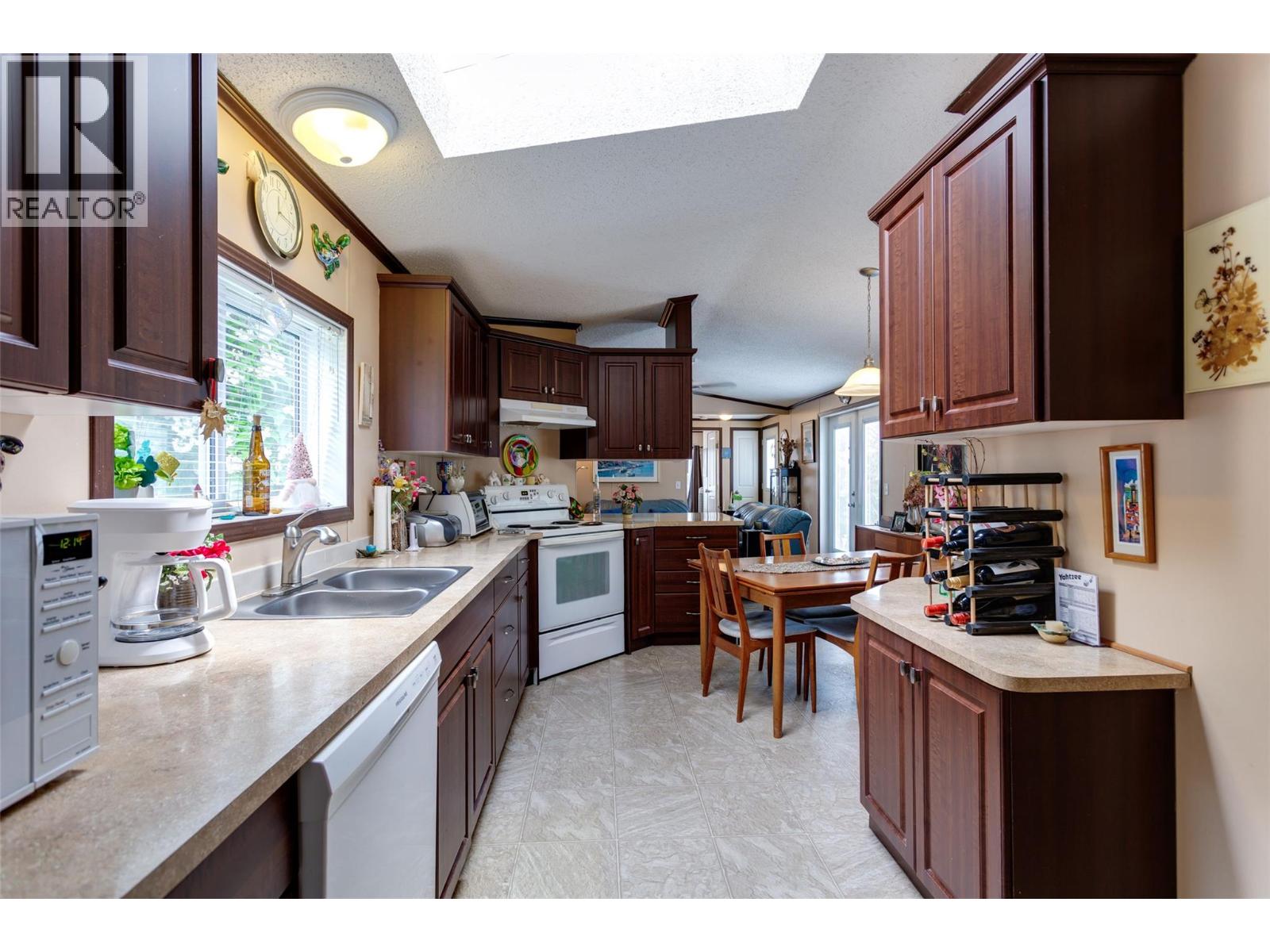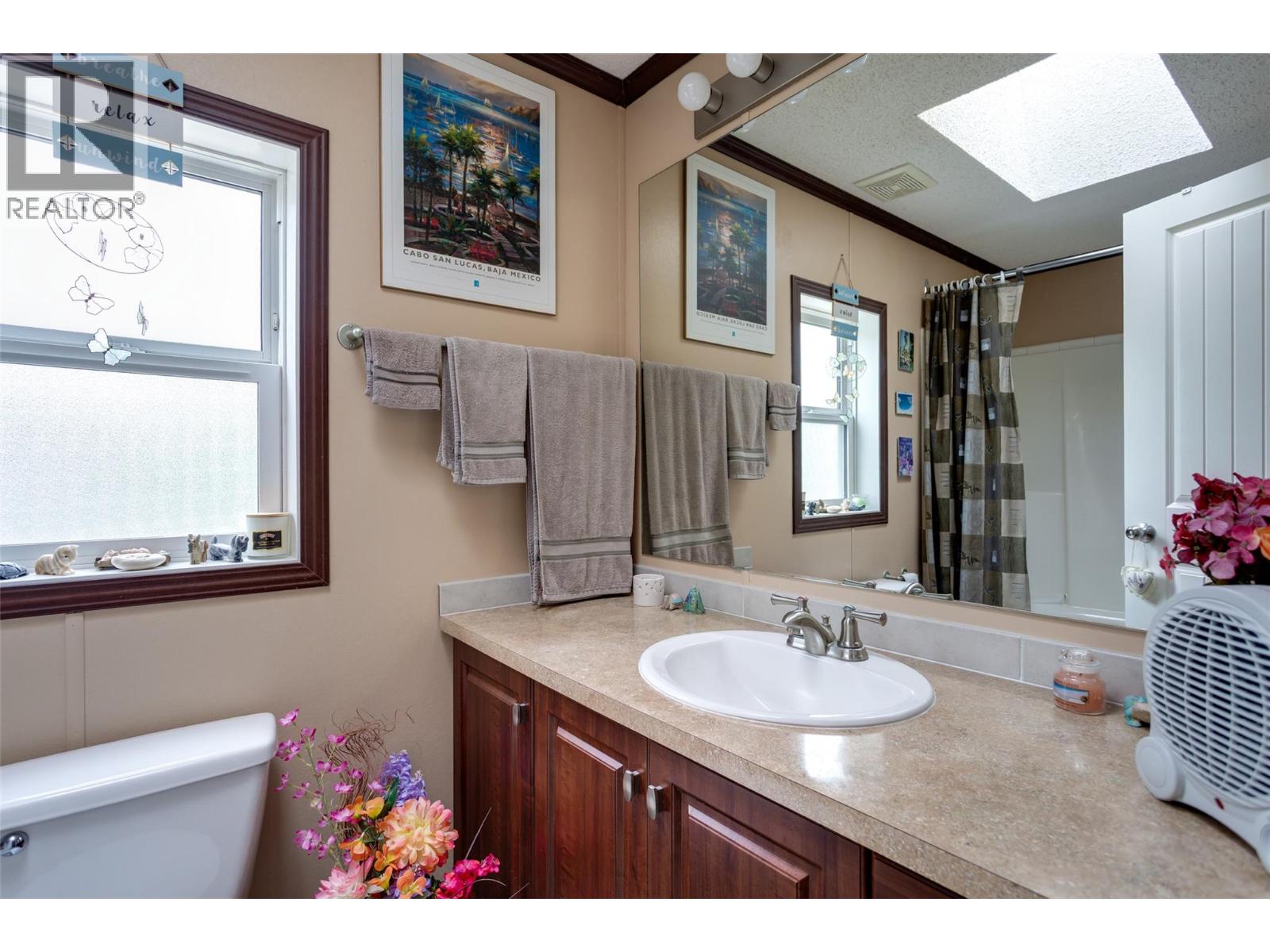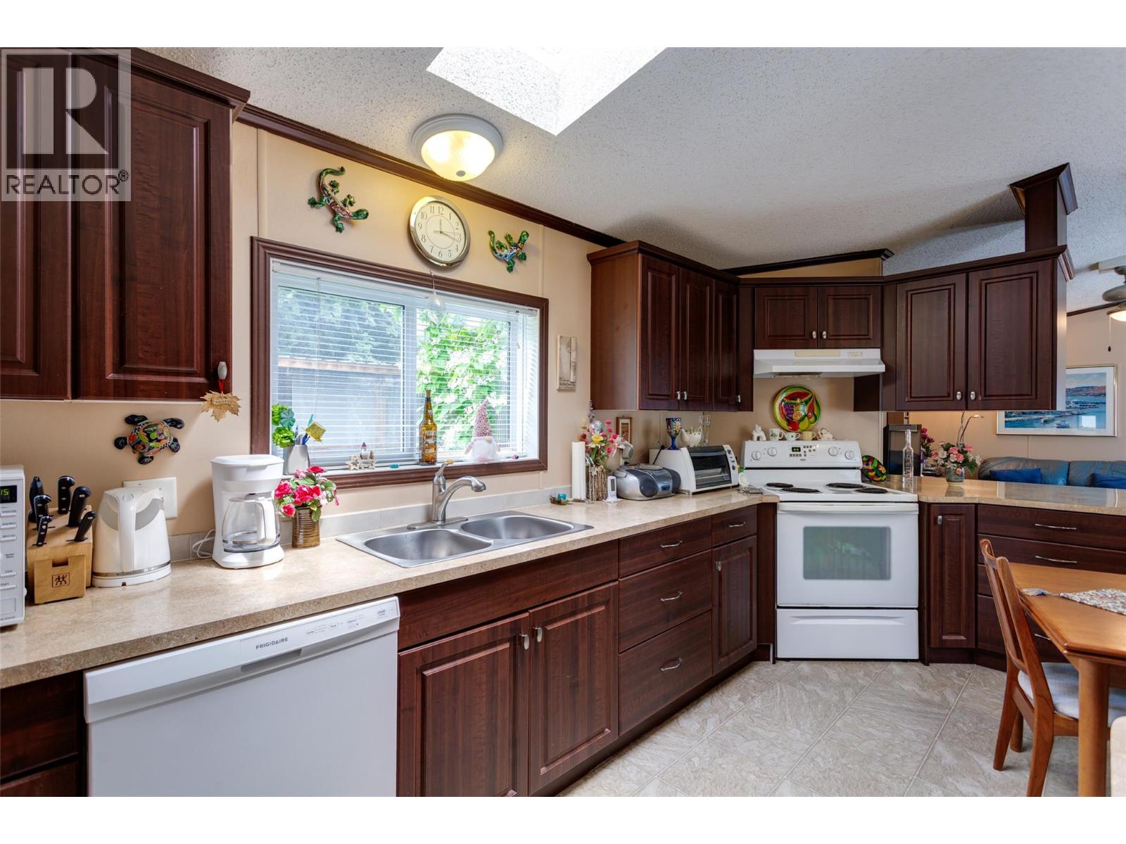 Dreaming of lakeside living without breaking the bank? Discover this spacious 2 bedroom/2 bathroom 2008 home in West Kelowna. Featuring a large living room, a well-appointed kitchen with ample storage, and an expansive outdoor deck perfect for enjoying the Okanagan lifestyle. The home offers a desirable split-bedroom layout for enhanced privacy and two skylights that fill the space with natural light and a jacuzzi bathtub located in the ensuite for ultimate relaxation. Recent upgrades include an updated hot water tank, dishwasher, superior vinyl planking flooring, installed leafguard, and fresh paint throughout. Enjoy walking proximity to beach access for those hot Okanagan days and evenings. A beautiful shed provides additional storage. The property boasts attractive landscaping with mature peach and cherry trees and a fenced yard. Gross annual taxes are $1272. Prospective buyers are encouraged to know their credit score prior to requesting a viewing (a score around 730 is typically required). Please note, while cats and small pets are welcome, dogs are not permitted. This is a must-see property. (id:6770)