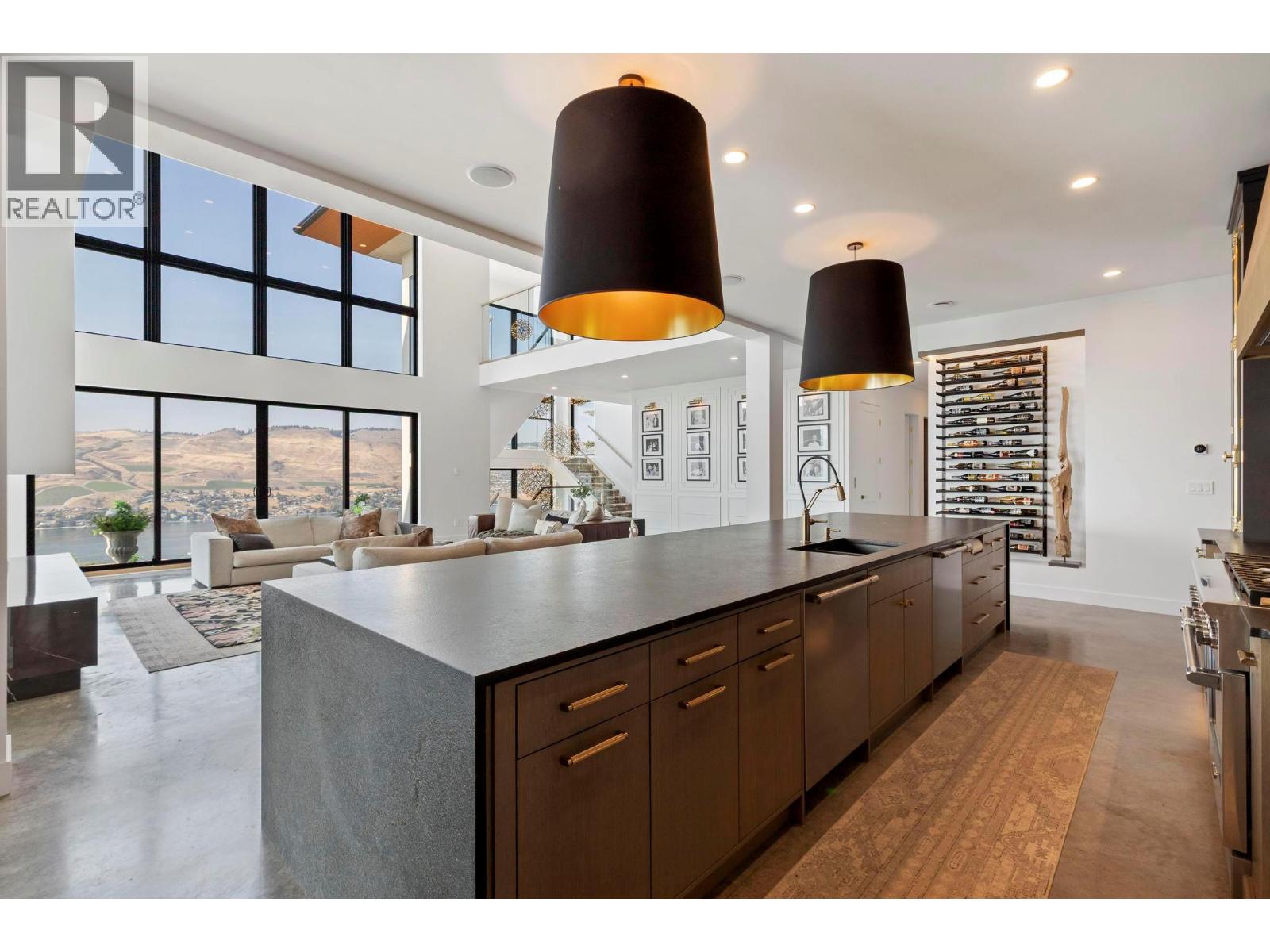 Experience unparalleled & expansive lake views from a residence meticulously designed to celebrate the natural splendour of the scenery situated in the exclusive Beverly Hills estates gated community. Floor-to-ceiling glass throughout creates an intimate connection with outdoors, framing breathtaking views of the lake, mountains, and nearby equestrian fields. Light pours into every space, ensuring you're bathed in natural beauty every moment. This remarkable 5 bedroom, 9-bathroom home has multiple flex rooms, secret rooms & masterfully blends luxury with functionality and adaptability offering seamless indoor-outdoor living. The main level is anchored by a show stopping kitchen equipped with coffee bar & scullery with exquisite finishing details that flows into expansive living + dining areas. A striking open-linear fireplace creates a warm and inviting atmosphere. The primary suite, occupies its own private wing. Encased in glass, it offers uninterrupted vistas and features a spa-like ensuite, spacious walk-in closet equipped with safe room & laundry. Designed for entertaining, the home’s pool area is positioned to preserve the panoramic views, while generous patios extend the living space outdoors. A poolside room offers a versatile space, perfect as a private suite or a dedicated entertaining hub. With a triple garage for vehicles and hobbies and an elevator that connects all three levels, this home is built for convenience and aging in place. (id:6770)