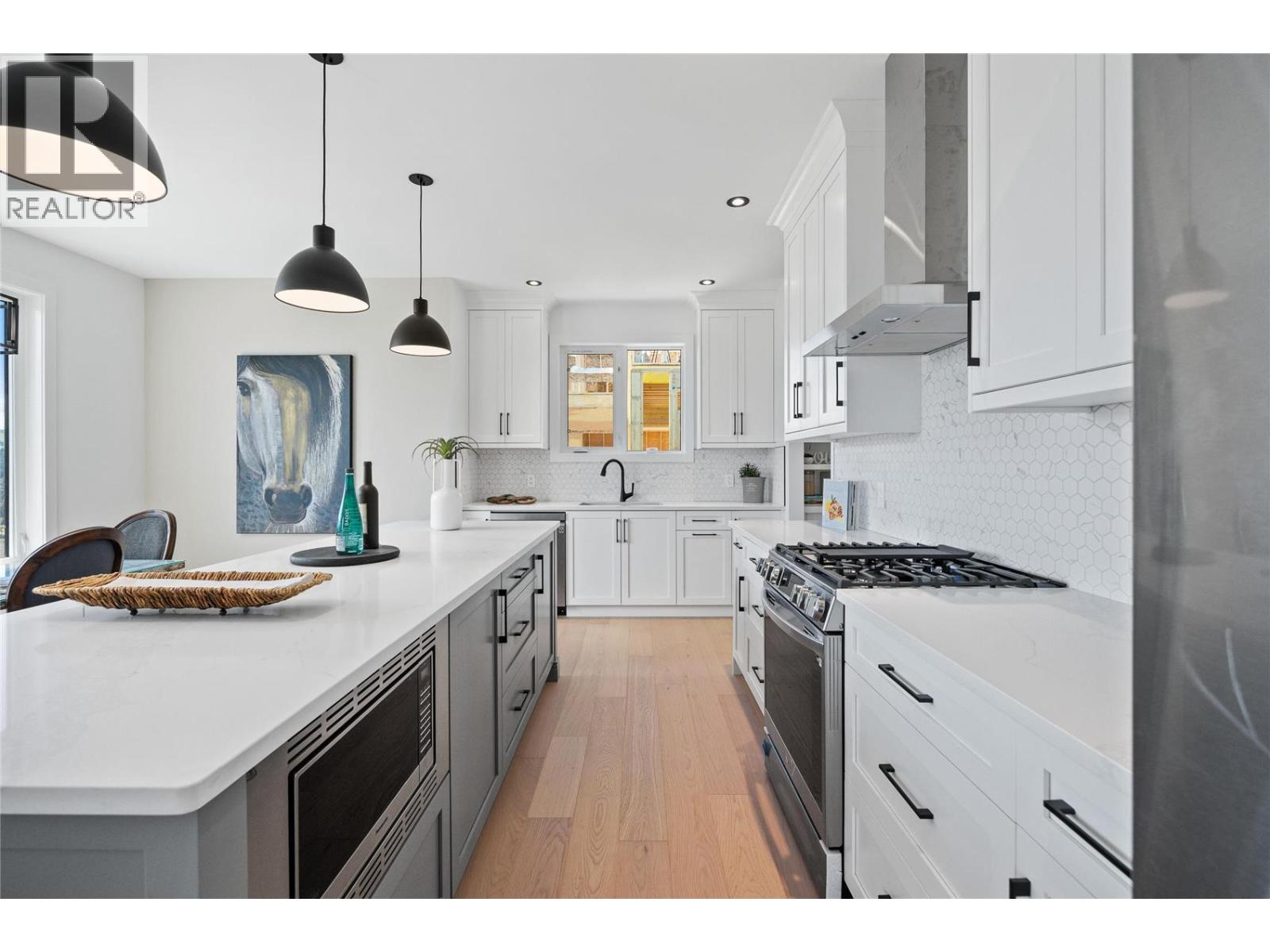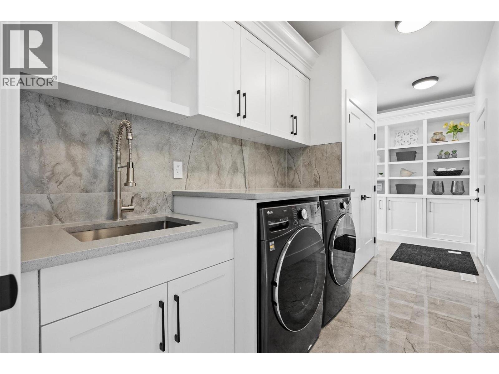 Stunning luxury walkout rancher with unobstructed lake views and a 2-bedroom executive legal suite! Beautifully landscaped with a tiered side yard, retaining walls, and a stamped concrete patio. This incredible home is designed to capture the captivating views and showcases superior finishes throughout. The main level features an open, airy living area with an inviting fireplace with a mantel, custom built-ins, and oversized sliding glass doors that extend seamlessly to the deck. The gourmet kitchen boasts white cabinetry, quartz countertops, and high-end appliances, while gorgeous wide-plank engineered hardwood flooring adds warmth and elegance. The spacious primary suite offers breathtaking views, a walk-in closet, and a spa-inspired 6-piece en suite. A second bedroom, full bath, laundry, and mudroom complete the main floor. The lower level provides an additional bedroom, full bath, and family room for the main home, along with a luxurious 2-bedroom legal suite. The suite includes a modern kitchen, spacious living area, covered patio, and stunning lake views. Located in the Smith Creek West subdivision, this property combines spectacular vistas with easy access to all the amenities of West Kelowna. (id:6770)
