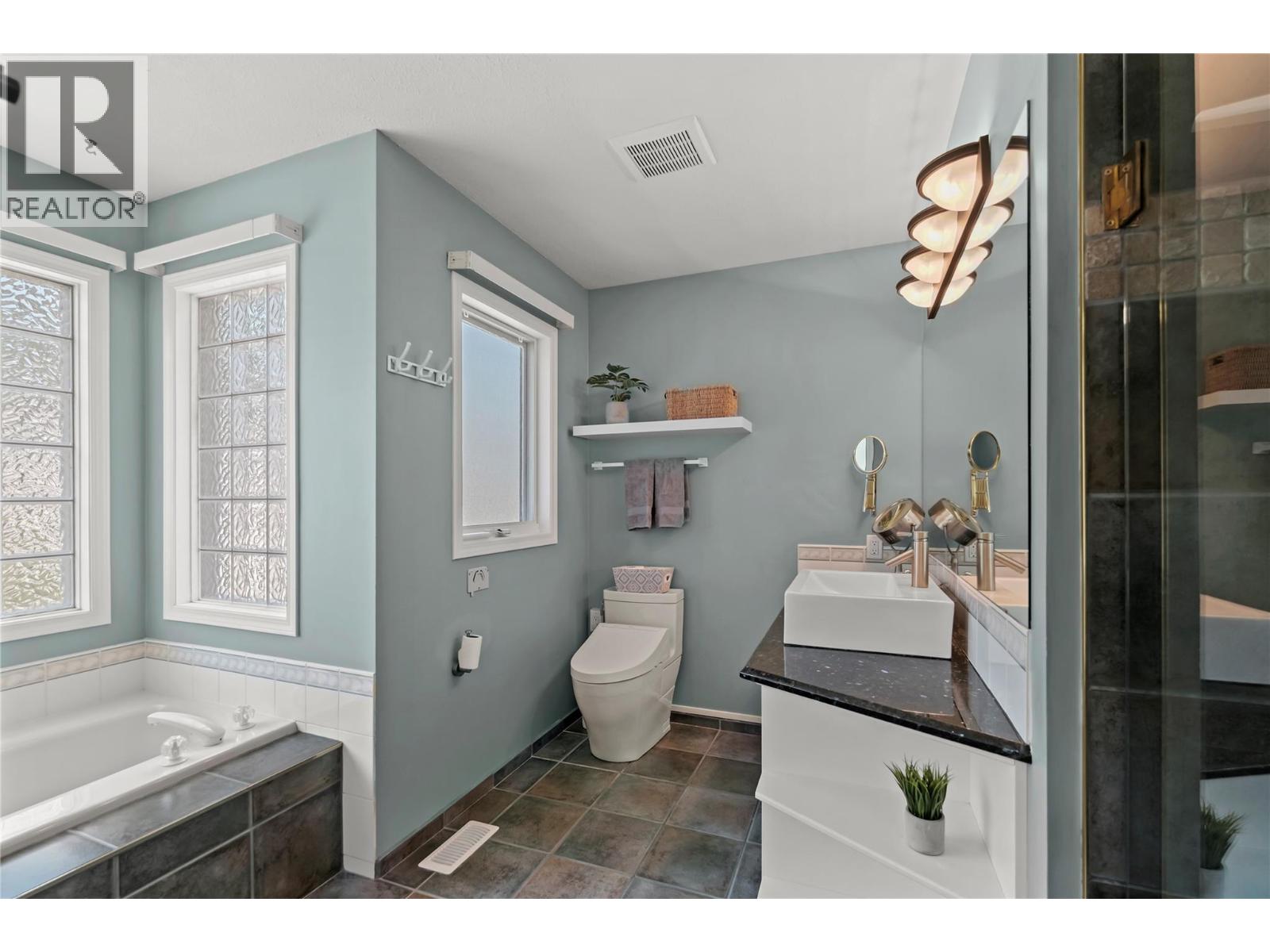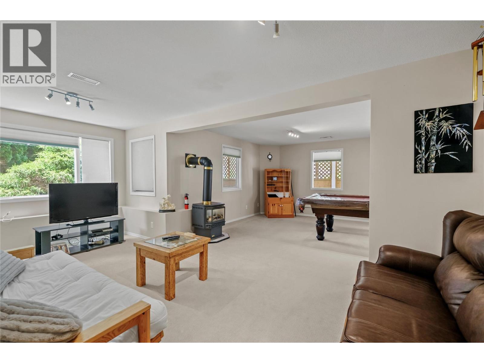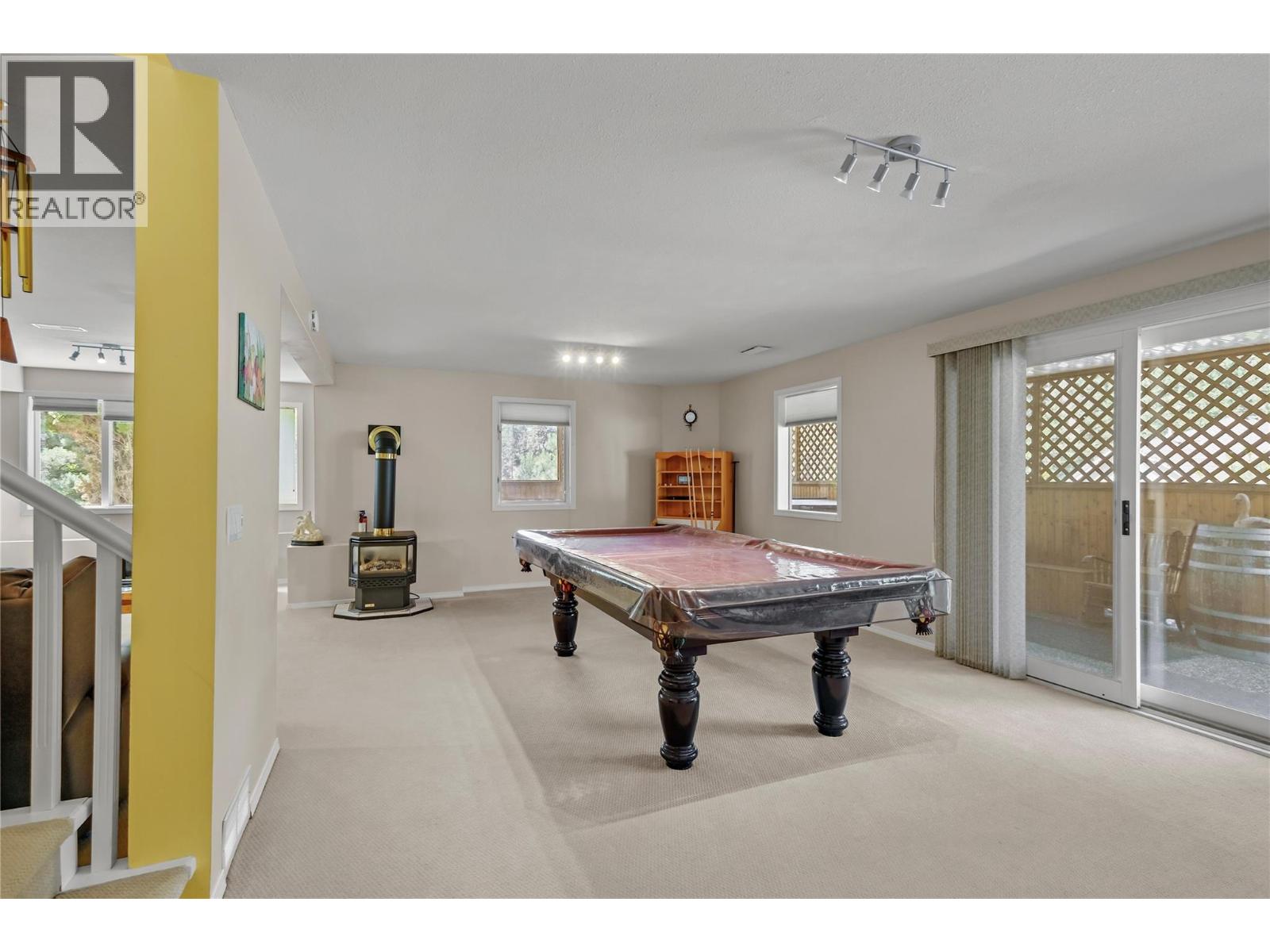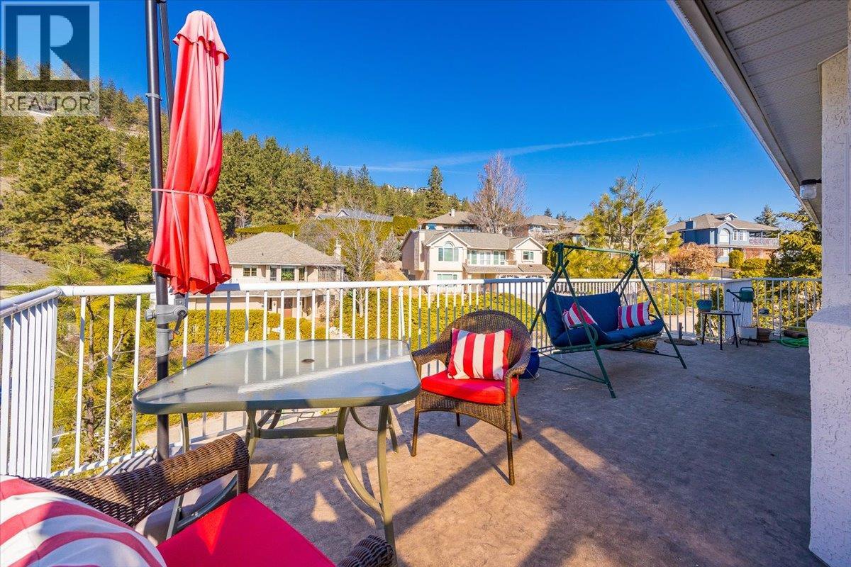 This spacious Dilworth Mountain home is an ideal choice for families and retirees alike. Vacant & offers immediate possession, with the option for a full furniture package and furnishings, details available upon inquiry. Situated on a fully landscaped, low-maintenance lot, this property caters to a variety of lifestyles. Boasting 5 bedrooms, 3 bathrooms, and over 3300 sq.ft. of living space. The basement, complete with its own entrance and daylight walkout access lends itself to create a rental suite. Inside, the house features Brazilian Cherry hardwood floors, tile, & plush carpeting. Open-concept kitchen is equipped with stainless steel appliances, a gas stove, granite countertops, island, & built-in eating bench. Formal dining room and a living room with a gas fireplace & vaulted ceilings, offering stunning panoramic views of the surrounding area. The master bedroom provides deck access and features an updated en-suite with a soaker tub and a stand-up shower. Two more beds and a full bath with heated flooring round out this level. Fully developed basement includes two beds, a spacious family room with a freestanding gas stove, & pool table. This space provides plenty of room and storage for an active family. Outside, you can unwind in the hot tub on the enclosed patio. The property's low-maintenance landscaping, central air, & underground irrigation system make it even more desirable. (id:6770)