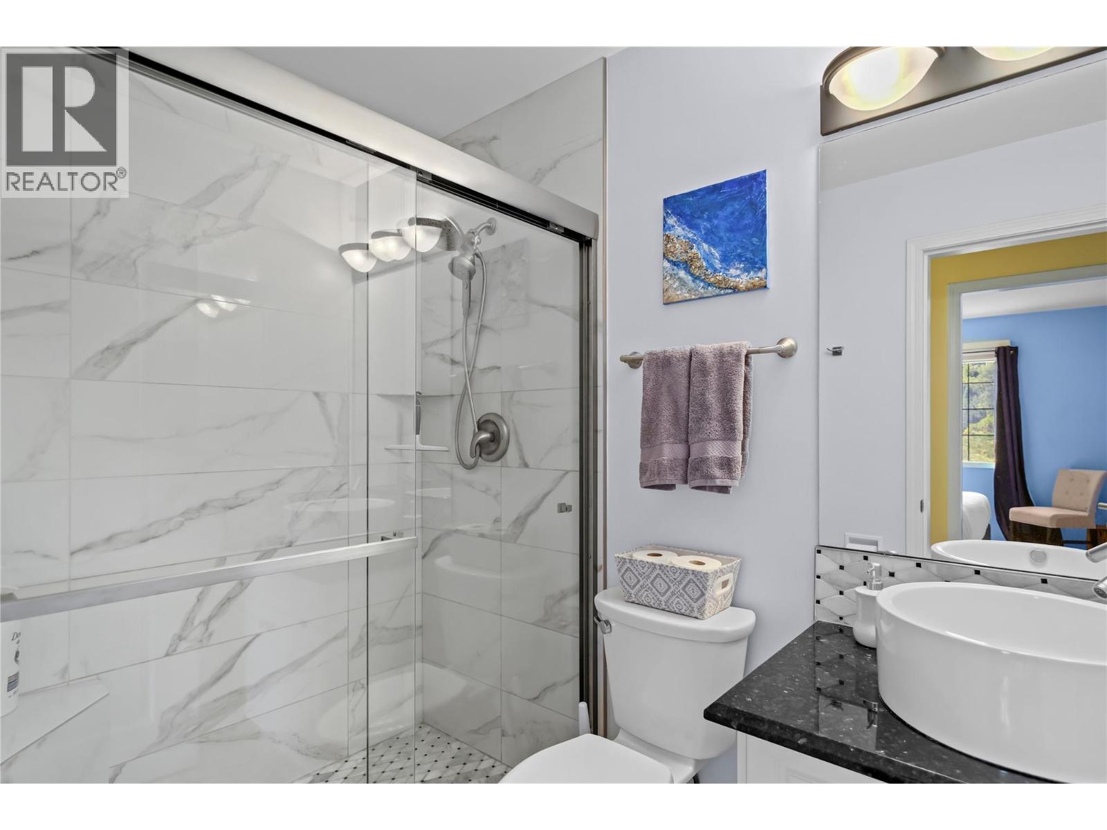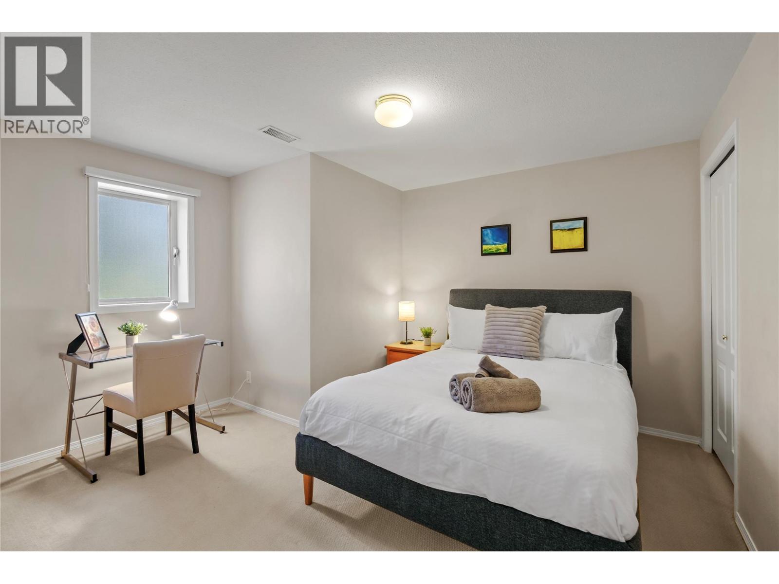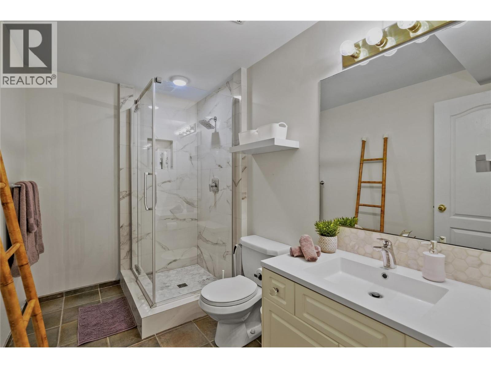 This spacious Dilworth Mountain home is an ideal choice for families and retirees alike. Vacant & offers immediate possession, with the option for a full furniture package and furnishings, details available upon inquiry. Situated on a fully landscaped, low-maintenance lot, this property caters to a variety of lifestyles. Boasting 5 bedrooms, 3 bathrooms, and over 3300 sq.ft. of living space. The basement, complete with its own entrance and daylight walkout access lends itself to create a rental suite. Inside, the house features Brazilian Cherry hardwood floors, tile, & plush carpeting. Open-concept kitchen is equipped with stainless steel appliances, a gas stove, granite countertops, island, & built-in eating bench. Formal dining room and a living room with a gas fireplace & vaulted ceilings, offering stunning panoramic views of the surrounding area. The master bedroom provides deck access and features an updated en-suite with a soaker tub and a stand-up shower. Two more beds and a full bath with heated flooring round out this level. Fully developed basement includes two beds, a spacious family room with a freestanding gas stove, & pool table. This space provides plenty of room and storage for an active family. Outside, you can unwind in the hot tub on the enclosed patio. The property's low-maintenance landscaping, central air, & underground irrigation system make it even more desirable. (id:6770)