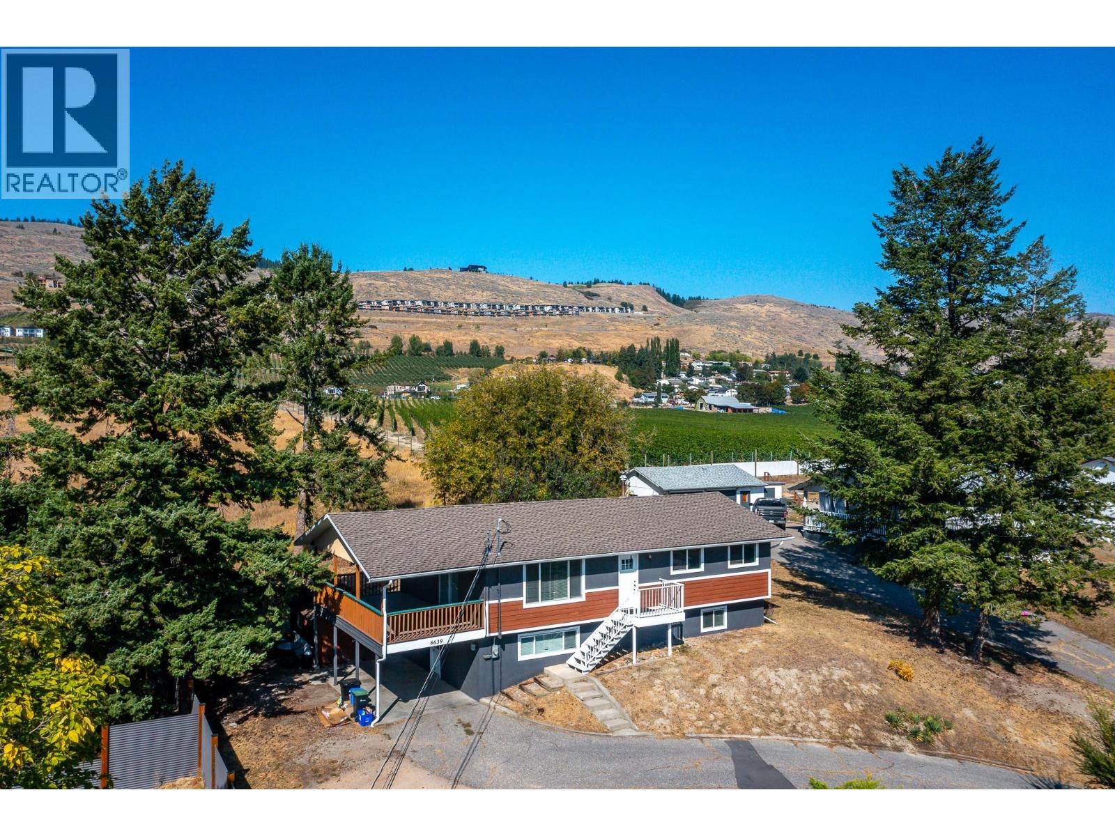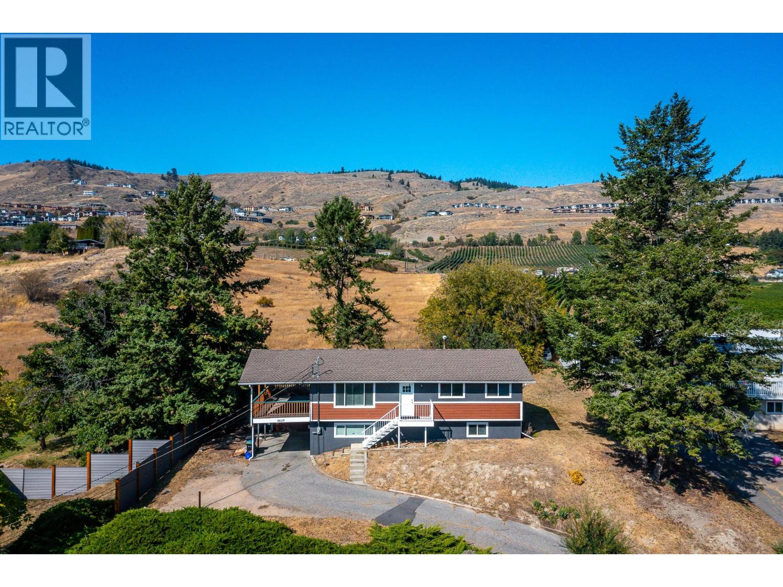 Charming Bella Vista Home on1/3 Acre Lot! This lovely home on a quiet no-thru road backs onto peaceful ALR land. The upper level features 3 bedrooms, including a primary with 2-piece ensuite, a spacious kitchen with gas range, and a bright living room opening to a large covered deck - perfect for entertaining. Enjoy valley, orchard, and mountain views from the front, while the rear deck overlooks the expansive backyard with apricot tree, offering plenty of space for gardens, pets, kids to play, or future outdoor projects. The ground floor is a self-contained mortgage helper featuring two bedrooms, a full bathroom, a second kitchen, a spacious living room, separate laundry, and flexible storage/den space. Recent improvements include a new roof and hot water tank (2020), upgraded 200-amp wiring, and a newly replaced water main from home to curb. Outside, a carport and abundant parking amplify the home’s quiet, rural charm without sacrificing its modern conveniences. This property delivers peaceful country living just minutes from everything Vernon has to offer. A rare opportunity to own a property in Bella Vista with so much potential and just minutes from beaches, amenities and recreation. Quick possession available! (id:6770)
