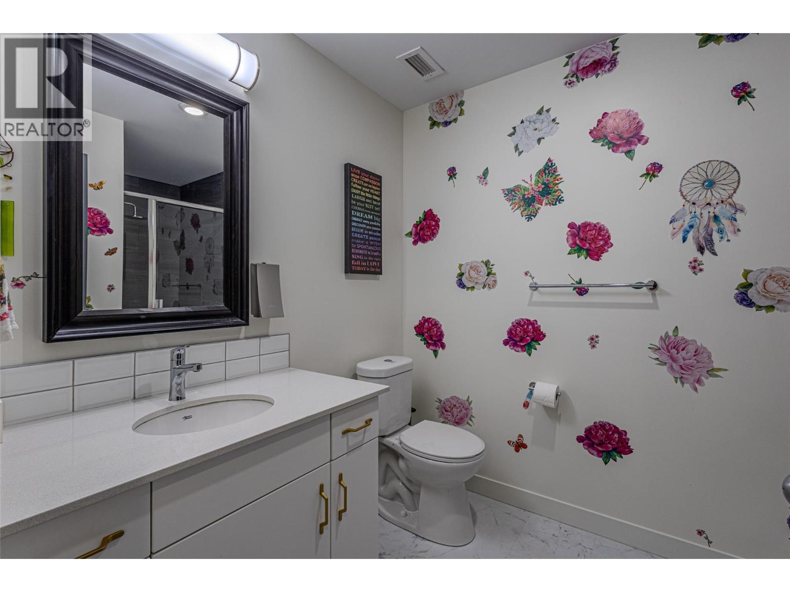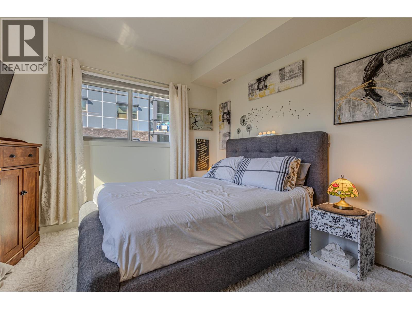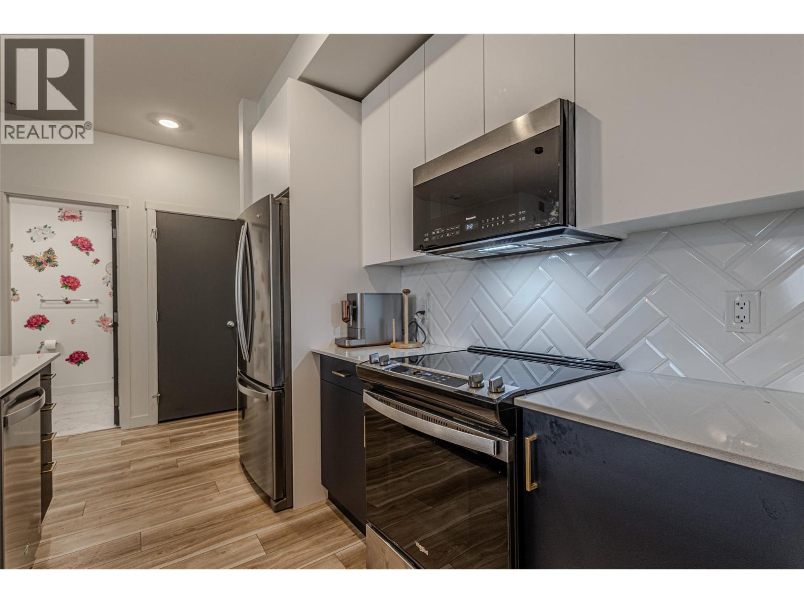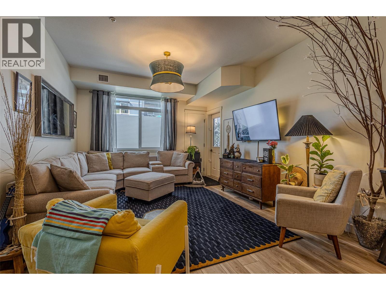 A welcoming, fully renovated, 2-bedroom, 2-bath+den in a fantastic location within the modern NEO residence! Walking distance to new park space and a paved creek feature walkway that travels through Majoros park up to shopping and amenities. Also easily walkable to the Gellatly Bay - providing an aquatic park, dog park, dock, marina, beaches and a 2km lakeside walking trail. 302 is a corner unit with views of Majoros park greenery, more privacy and an additional window with no parking lot view! Upgraded soundproof flooring and ceilings with 18cm gypcrete for comfort. Functional split bedroom, high ceilings making the space feel bright and large. Kitchen contains custom 2 tone cabinets with chevron tiling backsplash and oversized island - great for hosting! Entire unit has new vinyl flooring, lighting upgrades, shower upgrades and a walk-in-closet. Unit comes with an underground parking stall and brand new appliances. NEO residence was constructed in 2018 and certified green with solar panels reducing strata fees and the unit has a green brand-new HRV system providing heat and air conditioning reducing hydro bills. The building provides a communal large rooftop patio with panoramic views and a gas BBQ for socializing. Several community garden boxes are available. NEO is located just off the wine trail with 17 wineries and 9 dining options. Rentals allowed and pet-friendly allowing 2 dogs or 2 cats or 1 of each. Book your viewing today! (id:6770)