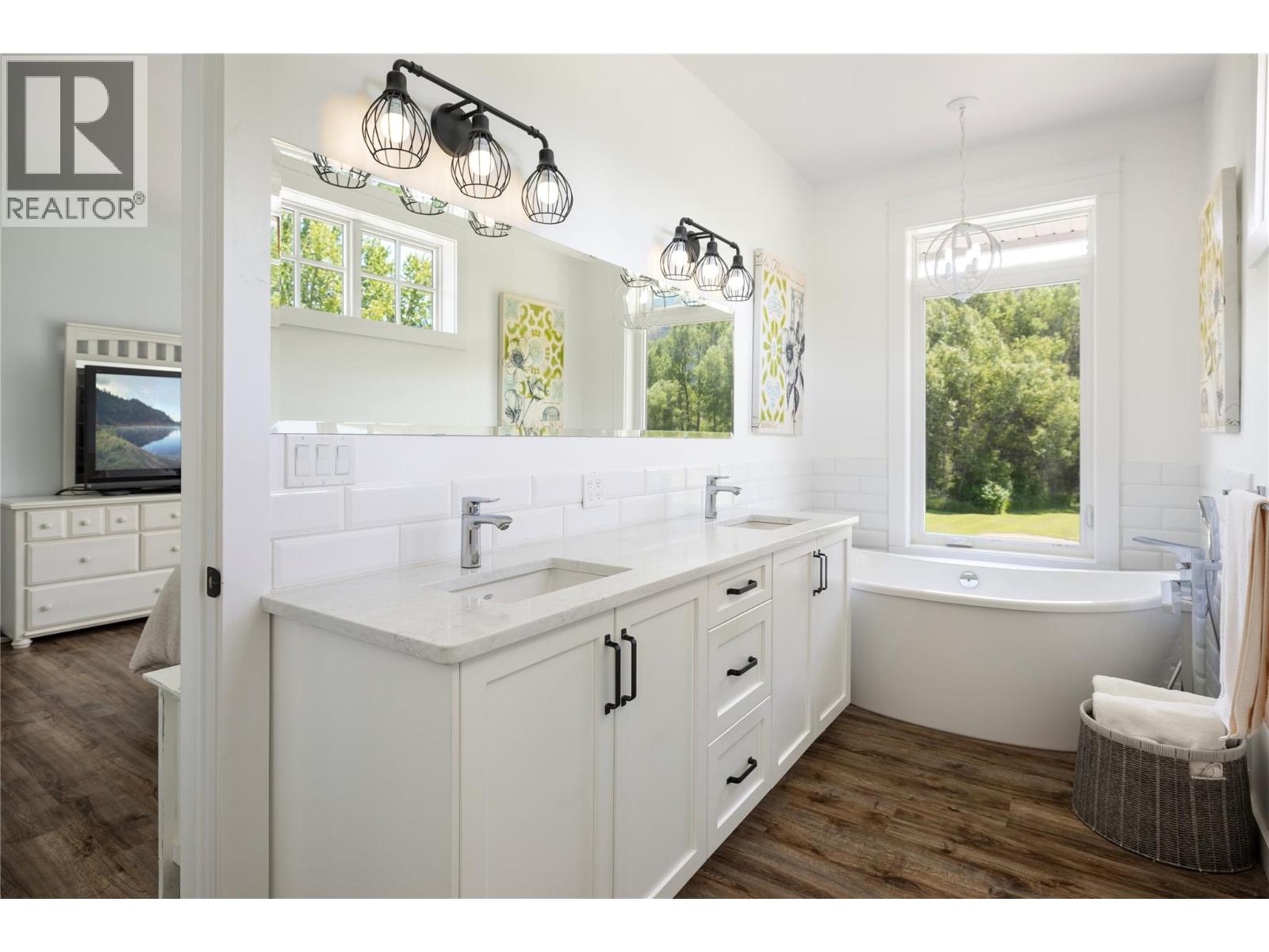 Welcome to your entertaining oasis! Located just east of Vernon, this stunning property blends luxury, space, and tranquility. Set on nearly 8 acres of pristine land, this 3-bedroom, 3-bathroom home offers the perfect serene lifestyle with modern conveniences. Enjoy spacious bedrooms, including a master suite with a spa-like ensuite. The three beautifully appointed bathrooms feature high-end finishes. The gourmet kitchen is a chef’s dream with top-tier appliances and custom cabinetry. Car enthusiasts will love the expansive showroom garage, or it can serve as a family or recreation space with folding lanai doors. The outdoor paradise offers endless hosting possibilities. This rare find combines luxury living with the beauty of the countryside. Don’t miss out—contact your favourite REALTOR® today! (id:6770)