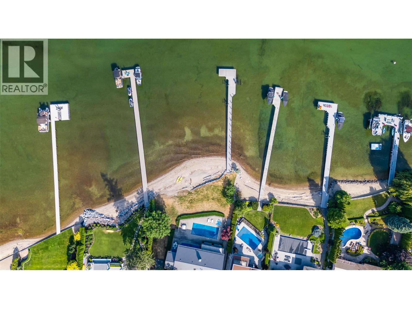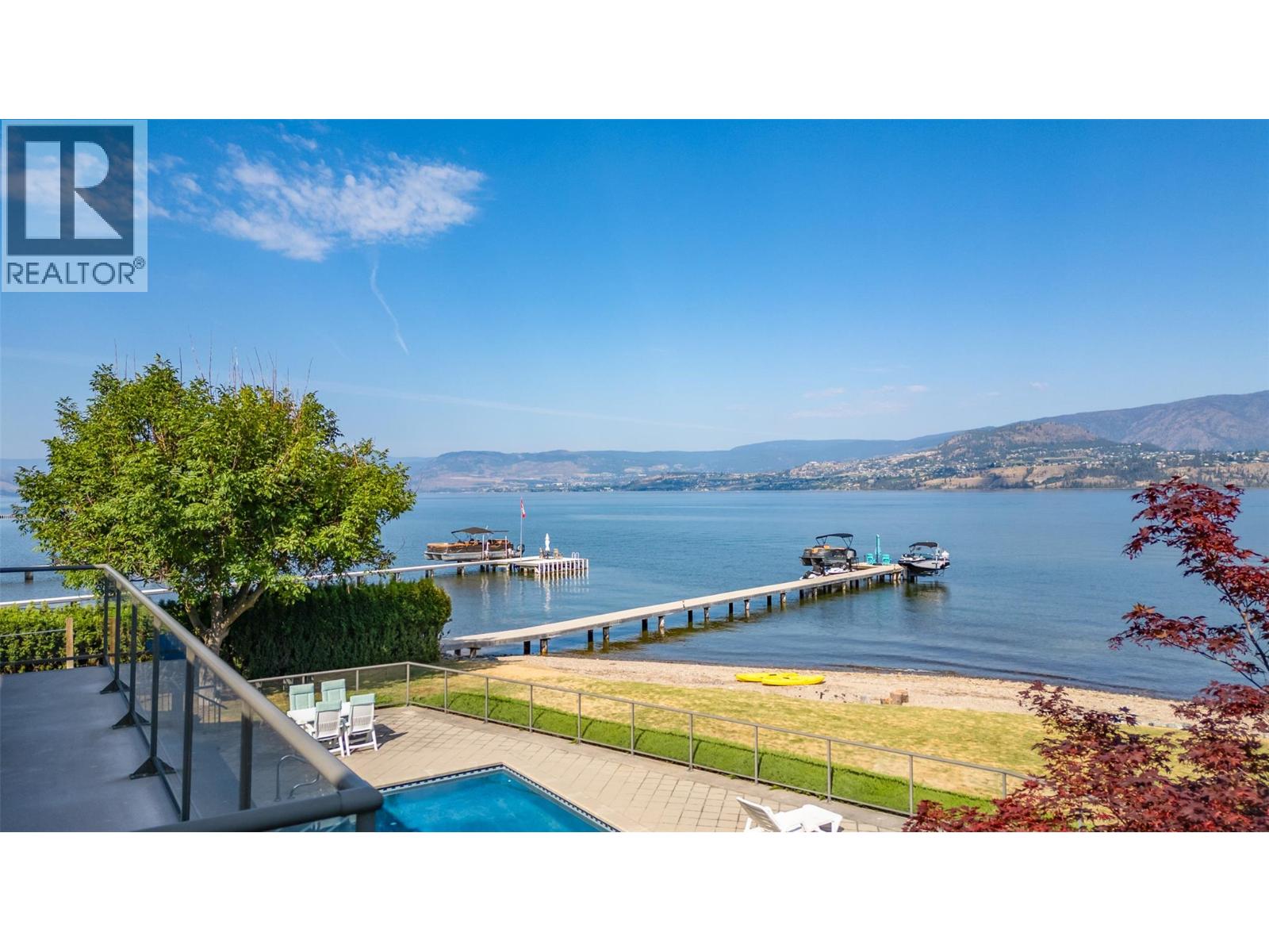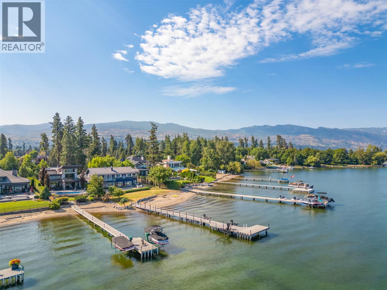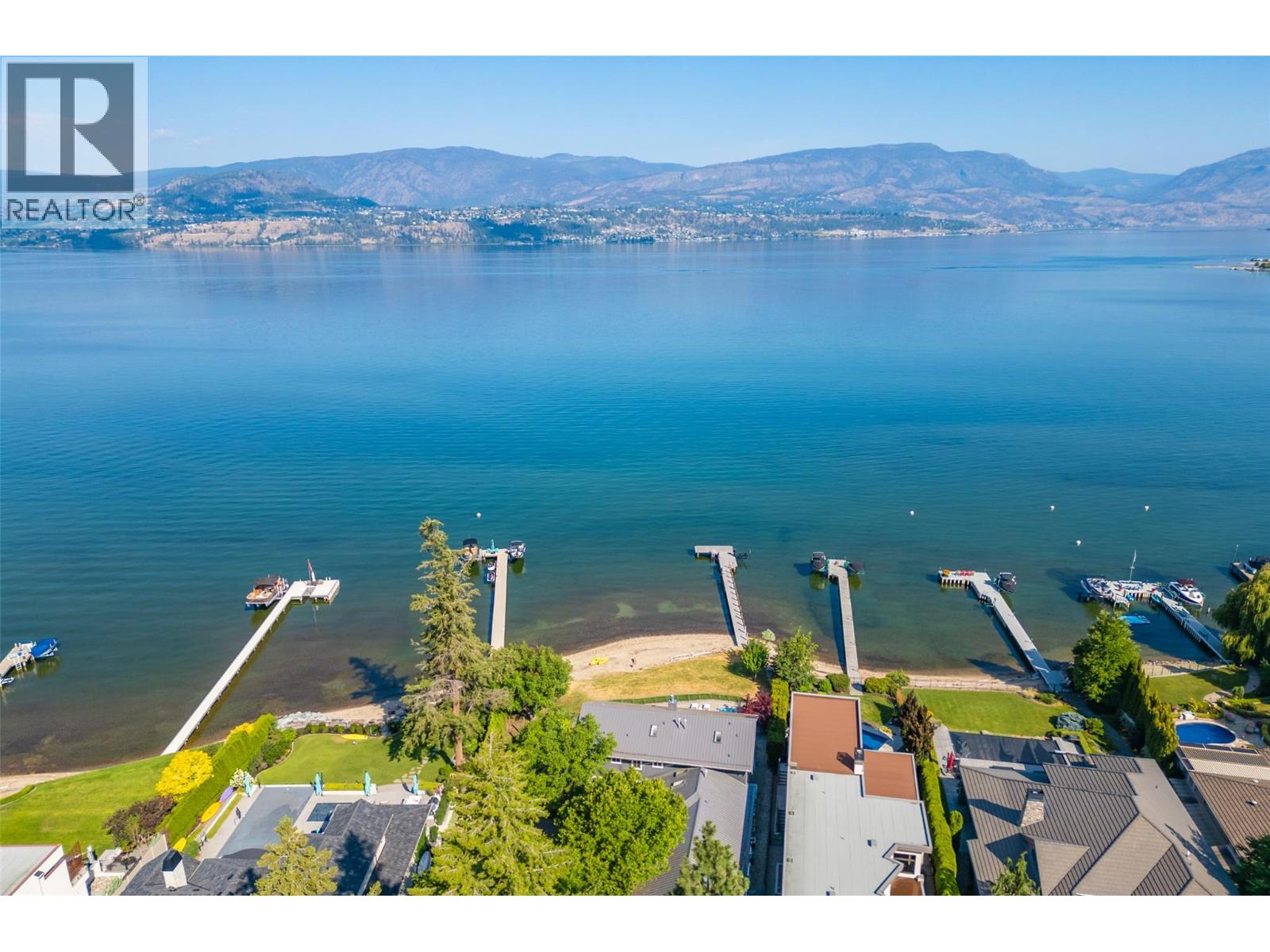 GORGEOUS .79 ACRE HOBSON ROAD LAKESHORE OFFERING! Situated on one of the most Prestigious streets in Kelowna offering a private .79 acre setting & featuring 120 ft. of Gorgeous Sandy lakefront on an almost peninsula shaped lot stretching out into the beautiful Okanagan Lake. Enjoy an unobstructed sandy Beach and Lake setting! Gated access welcomes you in with a Meandering Driveway, Stately Old growth trees, tons of parking, and covered parking for up to 6 cars total. This Executive Old English Cottage Style styled two story home offers a 6 bedroom, 5 bathroom home, Wood shake siding and low maintenance aluminum roof. Attached 1 Bedroom coach house with separate garage for Inlaws, gardener or mortgage helper. Expansive grounds for your enjoyment. Concrete In-ground Pool and Patio enjoys the private and expansive lake views, and direct access to the wide beach. Long and Large 2019 rebuilt pile driven deep water Dock with 2 electric jet ski lifts, and boat lift with Trex boards. Spacious 1998 Built Home offers a Maple Kitchen, Oak hardwood floors, 6 bedroom home, 5 bathrooms. Primary bedroom suites up and down. Tons of wall to wall windows and glass sliding doors to bring outdoors in. Expansive King-sized primary up with Gas FP, lounge area, luxurious ensuite. Double Attached Garage plus Detached Triple Garage. Located on one of Kelowna's most Exclusive High End Lakeshore Streets offering Privacy, Peace, Park like grounds, and Prestige! (id:6770)