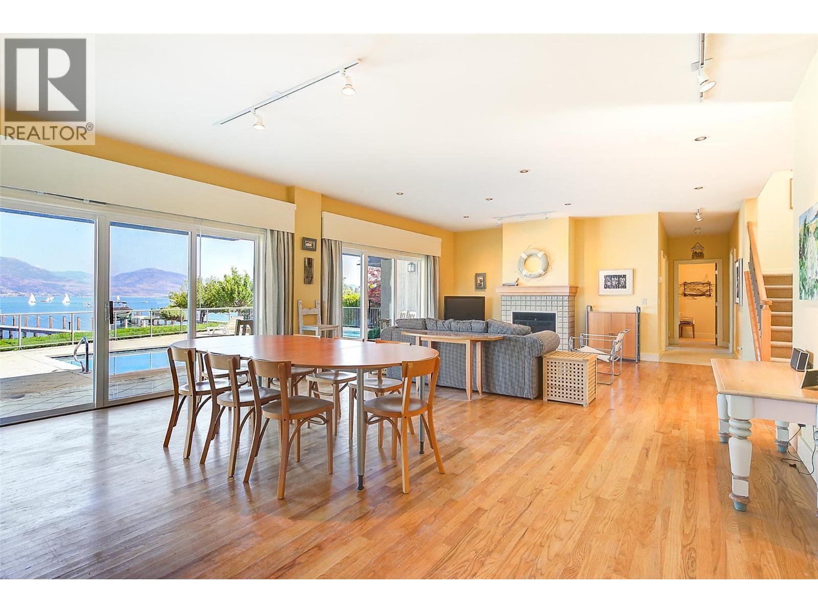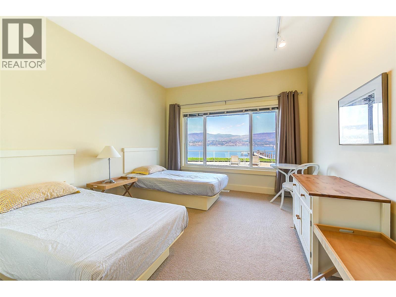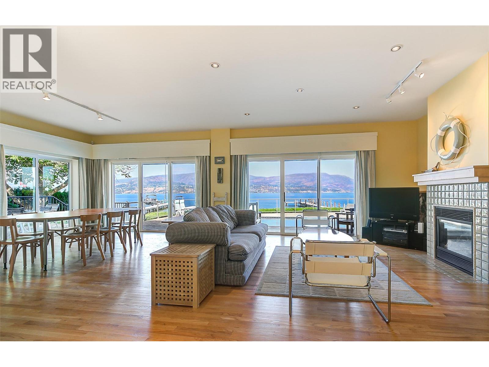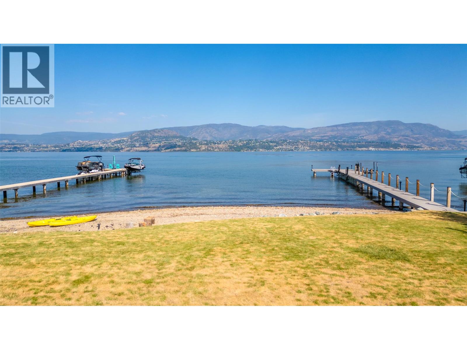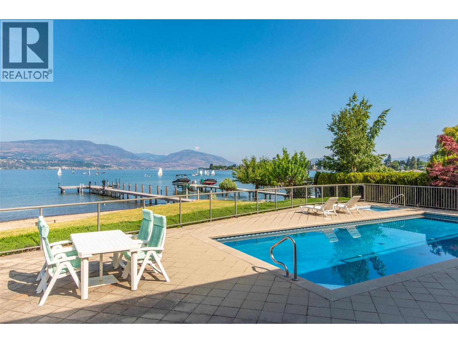 GORGEOUS .79 ACRE HOBSON ROAD LAKESHORE OFFERING! Situated on one of the most Prestigious streets in Kelowna offering a private .79 acre setting & featuring 120 ft. of Gorgeous Sandy lakefront on an almost peninsula shaped lot stretching out into the beautiful Okanagan Lake. Enjoy an unobstructed sandy Beach and Lake setting! Gated access welcomes you in with a Meandering Driveway, Stately Old growth trees, tons of parking, and covered parking for up to 6 cars total. This Executive Old English Cottage Style styled two story home offers a 6 bedroom, 5 bathroom home, Wood shake siding and low maintenance aluminum roof. Attached 1 Bedroom coach house with separate garage for Inlaws, gardener or mortgage helper. Expansive grounds for your enjoyment. Concrete In-ground Pool and Patio enjoys the private and expansive lake views, and direct access to the wide beach. Long and Large 2019 rebuilt pile driven deep water Dock with 2 electric jet ski lifts, and boat lift with Trex boards. Spacious 1998 Built Home offers a Maple Kitchen, Oak hardwood floors, 6 bedroom home, 5 bathrooms. Primary bedroom suites up and down. Tons of wall to wall windows and glass sliding doors to bring outdoors in. Expansive King-sized primary up with Gas FP, lounge area, luxurious ensuite. Double Attached Garage plus Detached Triple Garage. Located on one of Kelowna's most Exclusive High End Lakeshore Streets offering Privacy, Peace, Park like grounds, and Prestige! (id:6770)