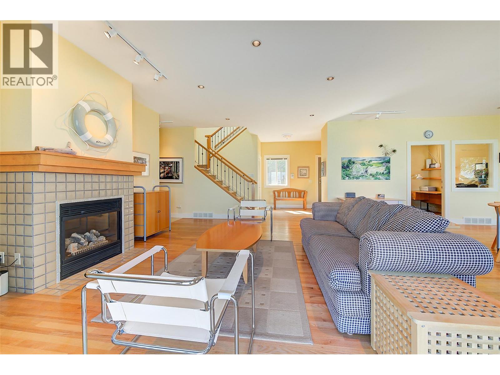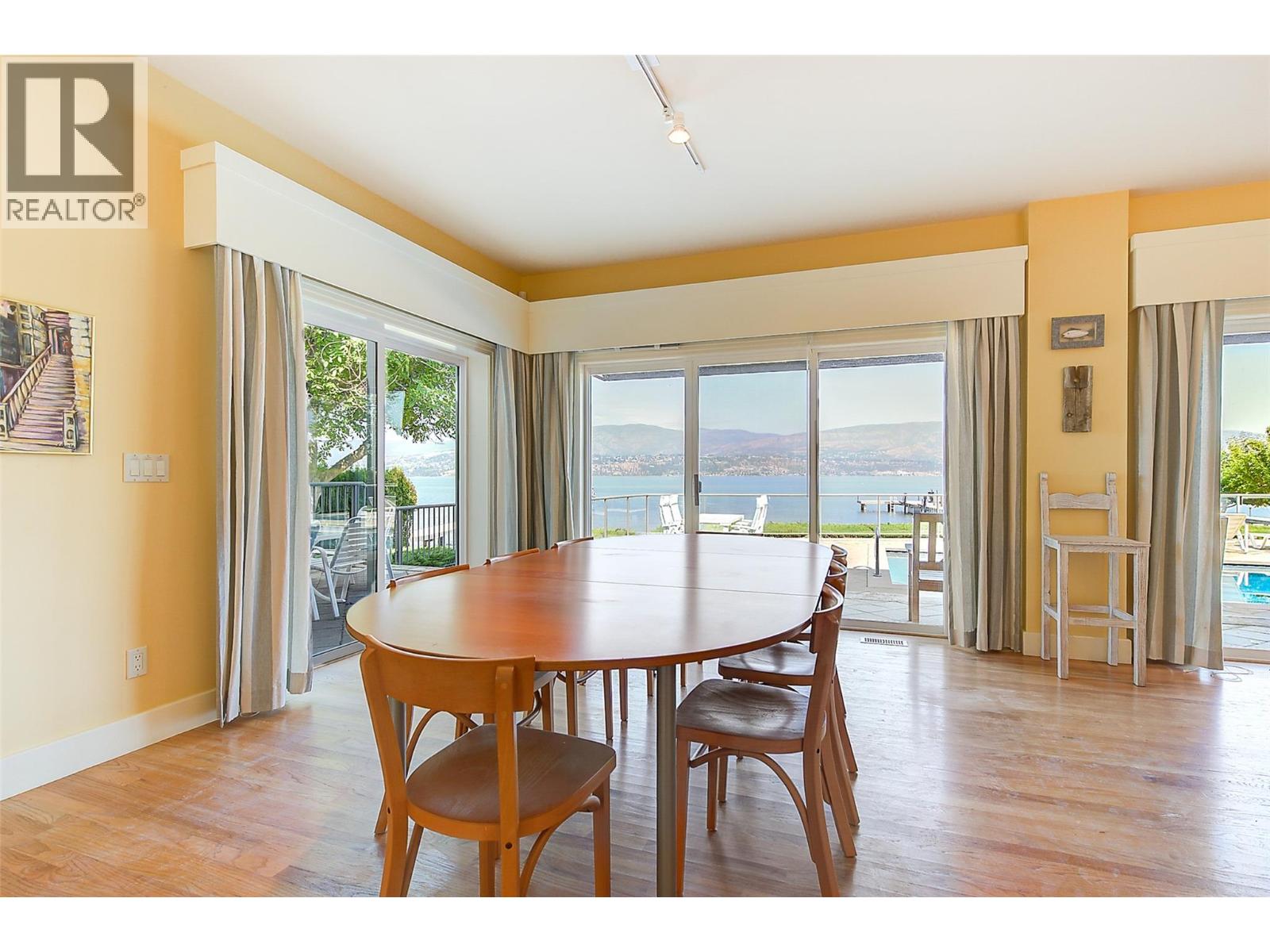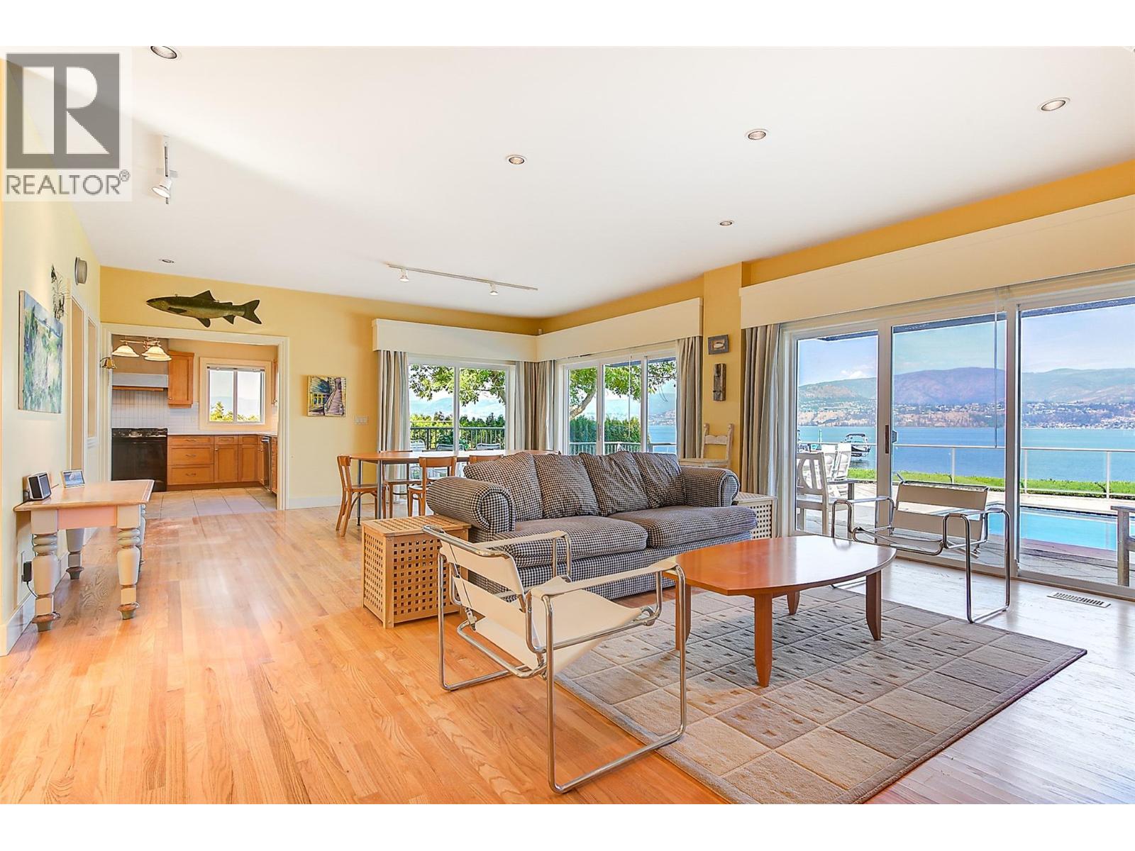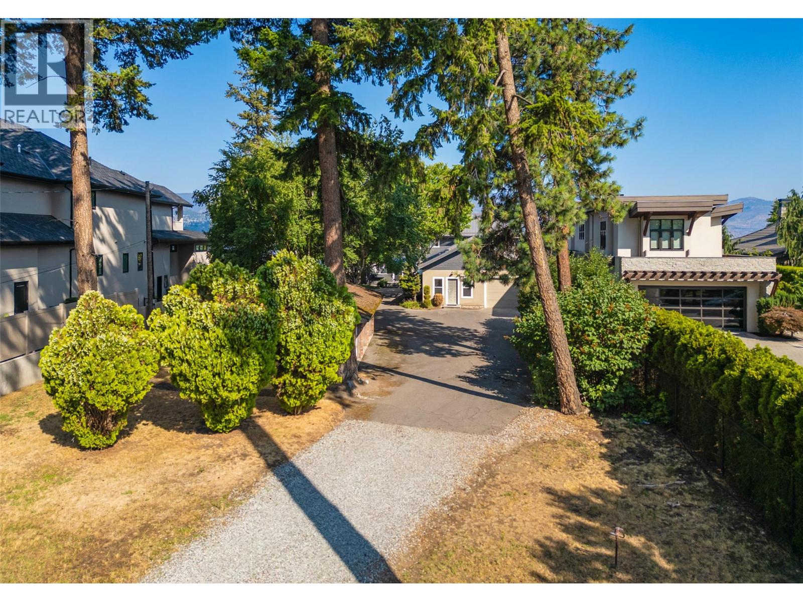 GORGEOUS .79 ACRE HOBSON ROAD LAKESHORE OFFERING! Situated on one of the most Prestigious streets in Kelowna offering a private .79 acre setting & featuring 120 ft. of Gorgeous Sandy lakefront on an almost peninsula shaped lot stretching out into the beautiful Okanagan Lake. Enjoy an unobstructed sandy Beach and Lake setting! Gated access welcomes you in with a Meandering Driveway, Stately Old growth trees, tons of parking, and covered parking for up to 6 cars total. This Executive Old English Cottage Style styled two story home offers a 6 bedroom, 5 bathroom home, Wood shake siding and low maintenance aluminum roof. Attached 1 Bedroom coach house with separate garage for Inlaws, gardener or mortgage helper. Expansive grounds for your enjoyment. Concrete In-ground Pool and Patio enjoys the private and expansive lake views, and direct access to the wide beach. Long and Large 2019 rebuilt pile driven deep water Dock with 2 electric jet ski lifts, and boat lift with Trex boards. Spacious 1998 Built Home offers a Maple Kitchen, Oak hardwood floors, 6 bedroom home, 5 bathrooms. Primary bedroom suites up and down. Tons of wall to wall windows and glass sliding doors to bring outdoors in. Expansive King-sized primary up with Gas FP, lounge area, luxurious ensuite. Double Attached Garage plus Detached Triple Garage. Located on one of Kelowna's most Exclusive High End Lakeshore Streets offering Privacy, Peace, Park like grounds, and Prestige! (id:6770)