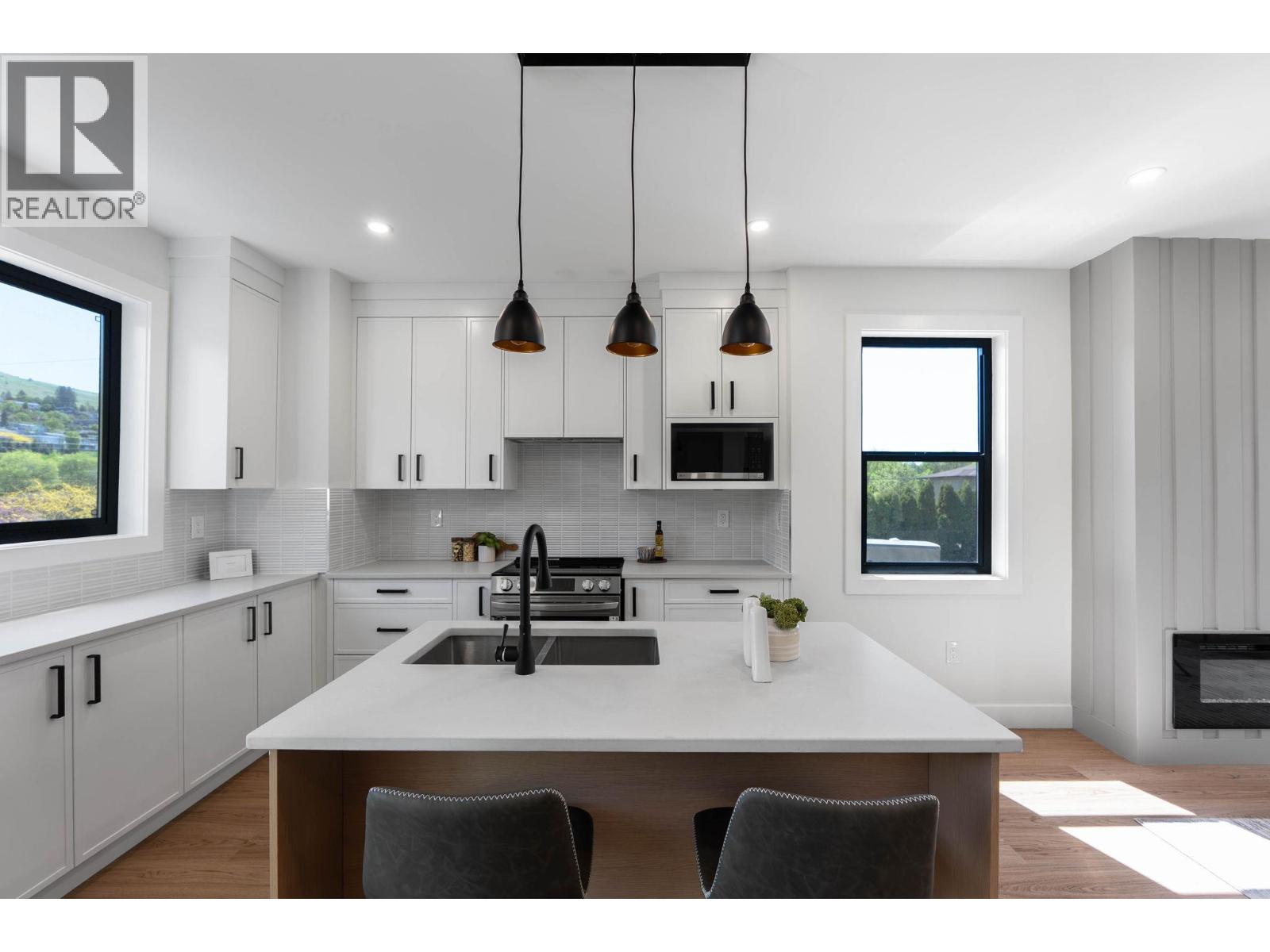 Traditional meets modern flare in these boutique townhomes nestled in a private setting in Lake Country. Indulge in the ultimate Okanagan lifestyle in the private and boutique townhomes, nestled in the flats of Lake Country. Located on a no through road, these homes provide piece and quite surrounded by farms and acreages. Head down the street and take the famous Rail Trail down to the lake. Flooded with natural light the open-concept living space flows effortlessly into the beautiful kitchen accented with gleaming quartz countertops and a custom pantry. A stylish wine bar adds a touch of decadence, perfect for effortless entertaining. Doubled black framed windows allow abundance of natural light creating a seamless open concept space. The fireplace ties in the room with its outstanding traditional but modern appeal. The opulent primary suite offers a rain shower with beautiful assorted tile. The units all have hot water on demand, heat pump, AC units, forced air, all appliances plus wine fridge. The staircases designed with lights. These units are code 4 within the BC Energy Step Code. An oversized garage provides ample space for toys and tools, blending practicality with polish. Sophisticated, sun-drenched, and unapologetically stunning—these are more than town homes. It’s your statement piece in the heart of wine country. *Price plus GST. PETS ALLOWED! Up to 2 dogs (no size restrictions), 2 cats, or 1 cat/1 dog. **Photos and floor plan are from unit 1 but similar layout. (id:6770)