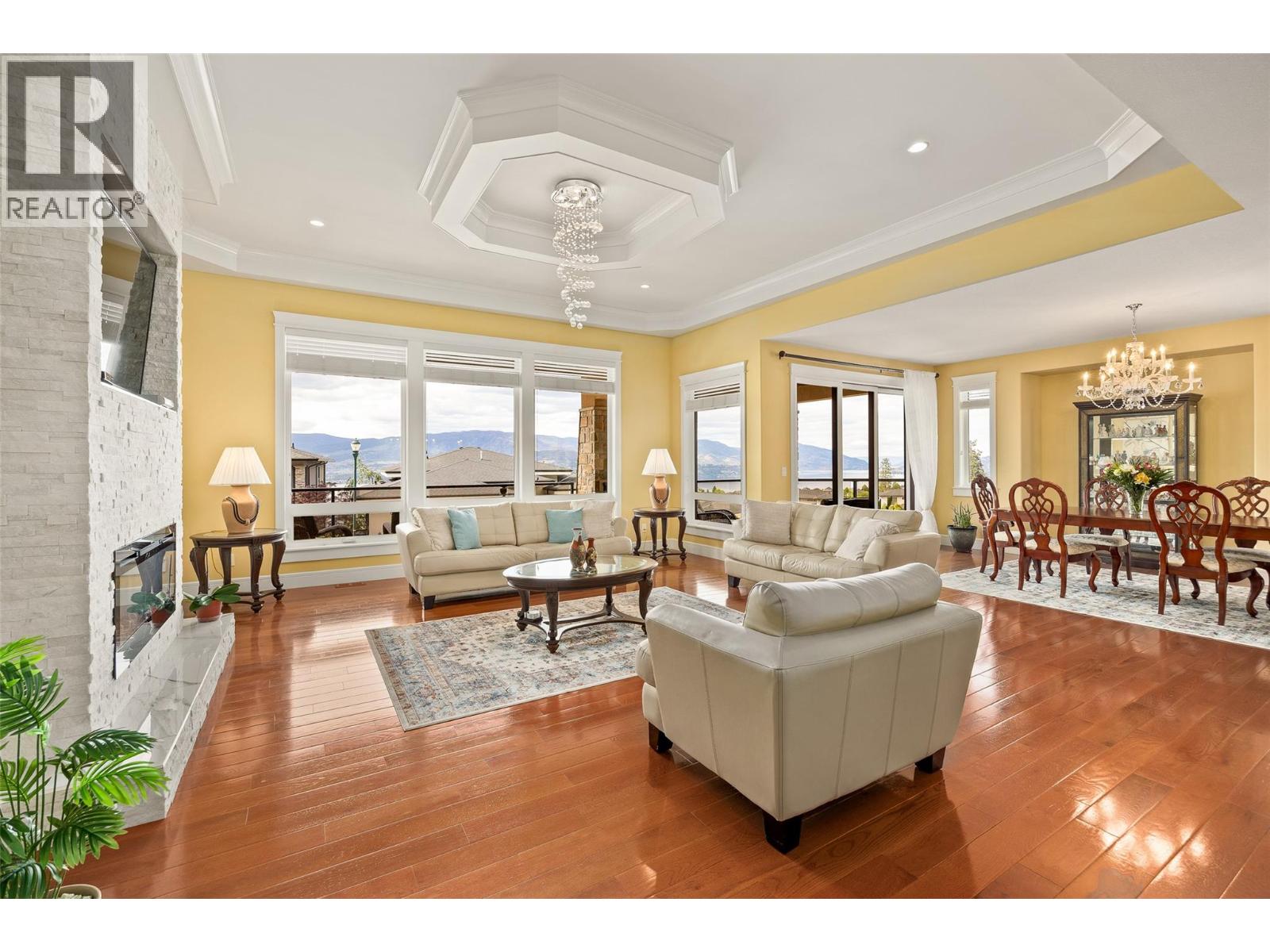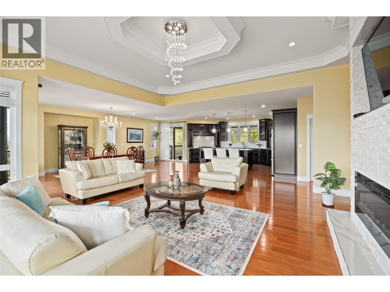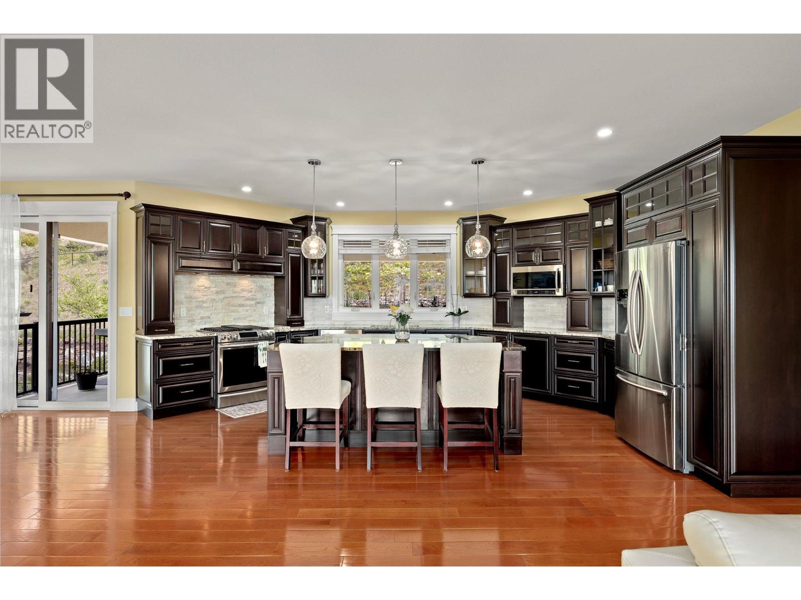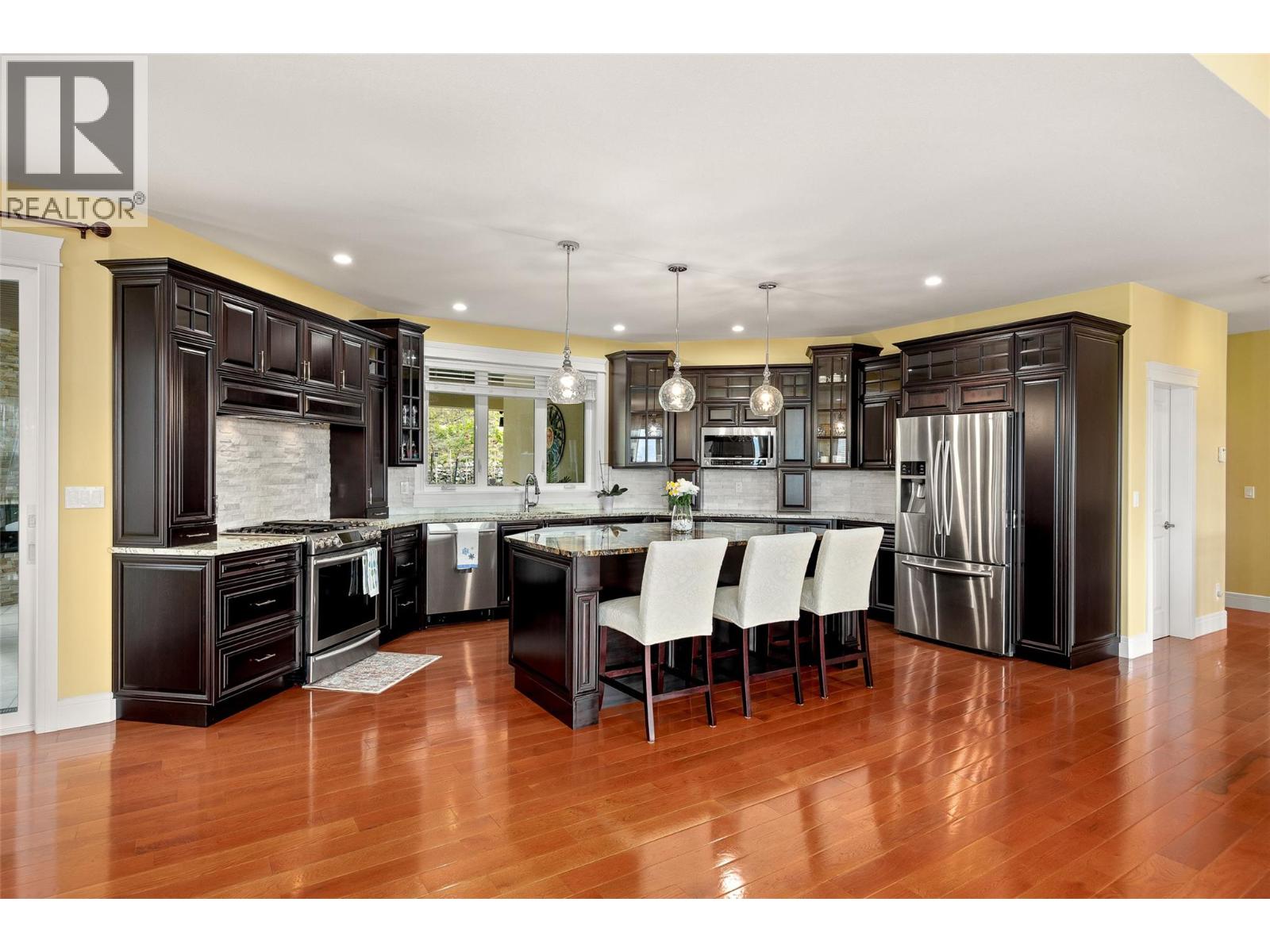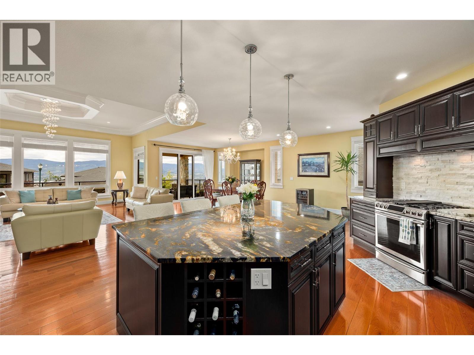 Set in the heart of Kettle Valley, this exceptional 4 bed + den / 3 bath home boasts 3,800 sqft of beautifully designed living space with stunning lake and valley views. The open floor plan is highlighted by rich cherry wood floors, granite countertops throughout, and a spacious kitchen and living area perfect for entertaining. Enjoy Okanagan sunsets from the front deck or the private balcony off the primary bedroom. The triple-car garage includes a tandem stall for added flexibility, and the versatile den is ideal as a home gym or theatre. Outside, the landscaped and fully fenced backyard features grapevines, strawberries, and tomatoes—with plumbing in place for a future pool. Situated on a quiet, no-thru road, the property offers a peaceful and private setting on a .21-acre lot in the highly desirable neighbourhood near parks, schools, restaurants and more. Want to learn more? Contact our team today to book your private viewing! (id:6770)