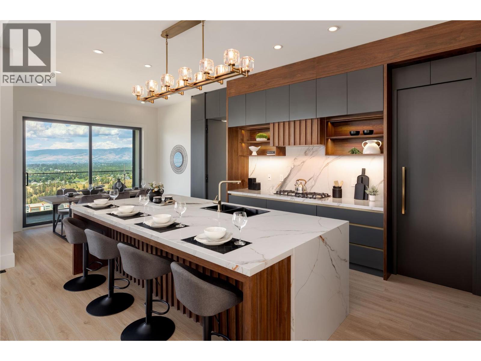 This architectural masterpiece blends modern sophistication with timeless elegance, set high above the city for sweeping lake, valley & mountain views. Designed for both grand entertaining & intimate living, the main level flows from a dramatic 2-storey living room with marble fireplace to a chef’s kitchen with Fisher & Paykel appliances, waterfall-edge marble island, butler’s pantry & dining area opening to a covered deck. The primary suite is a private retreat with panoramic views, spa-inspired ensuite & boutique-style walk-in closet. A stylish den, powder room & mud/laundry complete this level. Upstairs offers two view bedrooms with walk-in closets & ensuites, plus a lounge with wet bar & sun deck leading to the rooftop patio. The lower level is an entertainer’s dream — recreation room, wet bar, glass-enclosed gym, wine room & walkout to a covered patio. A fully self contained 1-bedroom legal suite with private entry provides flexibility for guests or premium rental income. Throughout, luxury finishes — marble, custom millwork, Lutron lighting & accent stair lighting — create a cohesive, elevated style. This is Upper Mission living without compromise. (id:6770)
