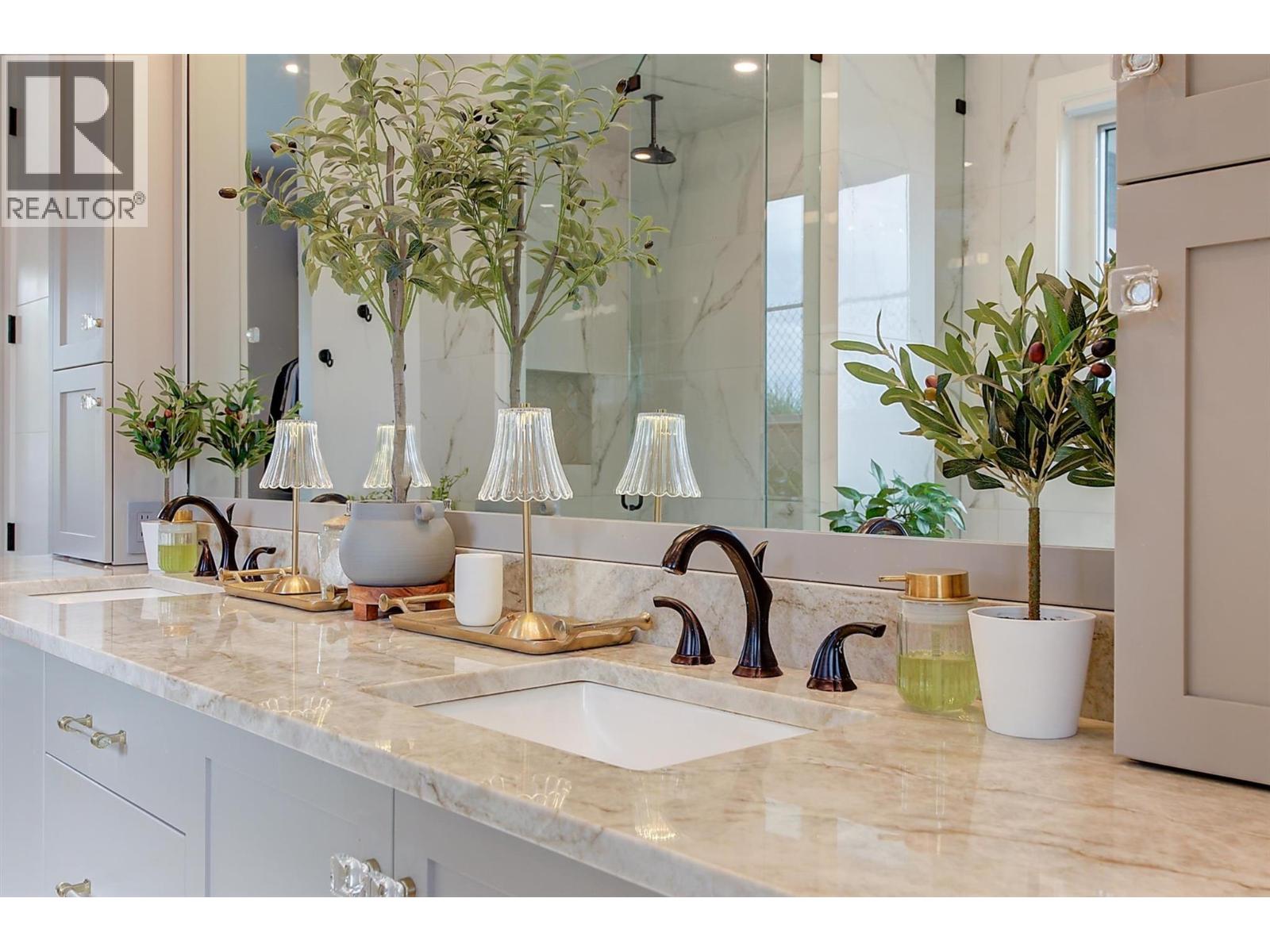 Welcome to this remarkable DeBruin Custom Home, tucked away on an exclusive private cul-de-sac in the prestigious Upper Ponds neighborhood. Blending modern sophistication with timeless elegance with more than 5,800 sq. ft. of luxurious living. Inside, you’ll find 5 bedrooms (lower bedroom ""no closet"") and 6 bathrooms, including upper-level bedrooms each with their own private ensuite. The chef-inspired kitchen features premium appliances, double ovens, dual dishwashers, a butler’s pantry, a hidden coffee station, and two large islands that make hosting effortless. The open-concept living and dining areas are accented by architectural detailing and expansive nano doors that open to a true outdoor oasis. Enjoy Kelowna summers with a built-in BBQ, fire pit, saltwater pool, and sweeping lake views. The fully fenced yard also includes a dog run and a private putting green. Every detail has been thoughtfully integrated with full home automation, controlled by a single app. The lower level offers a spacious rec room, family room, and additional flex space that can easily be transformed into a home theatre or 5th bedroom. This location is second to none: minutes to Okanagan Lake beaches, world-renowned wineries, golf, and shopping, with Canyon Falls Middle School less than 1 km away and a new shopping center just around the corner. This is more than a home—it’s a lifestyle. Rarely does an offering of this caliber become available in one of Kelowna’s most coveted communities. (id:6770)