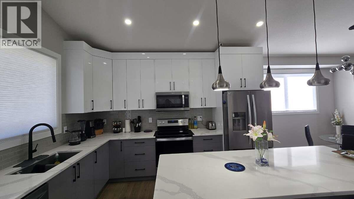 For more information, please click Brochure button. Welcome to this stunning new home located in the highly desirable Tallus Ridge community of West Kelowna, offering 2,820 sq ft of beautifully finished living space and breathtaking views of Shannon Lake from the front deck. The main house features 4 spacious bedrooms and 3 full bathrooms, designed with comfort and style in mind. The kitchen is a true highlight with a large island, high-gloss acrylic cabinets, soft-close doors and drawers, elegant quartz countertops, and upgraded Whirlpool stainless steel appliances. Throughout the second floor, you’ll find engineered hardwood flooring, while all bathrooms feature sleek porcelain tiles. The living area is bright and airy with modern LED lighting, upgraded fixtures, and a cozy gas fireplace. This home is equipped with central air conditioning, a central vacuum system, a gas dual-speed furnace & a gas water heater. Enjoy outdoor entertaining with a gas BBQ hookup on the back patio. The property also includes a large double garage and an additional parking space on the right side of the lot—perfect for an RV or boat. Downstairs, a fully legal 2-bedroom suite offers a private entrance, full kitchen, in-suite laundry, stainless steel appliances, a separate water heater, and a spacious concrete patio—ideal for extended family or rental income. The suite features waterproof plank flooring for durability and comfort. Don’t miss the opportunity to own this exceptional property. (id:6770)