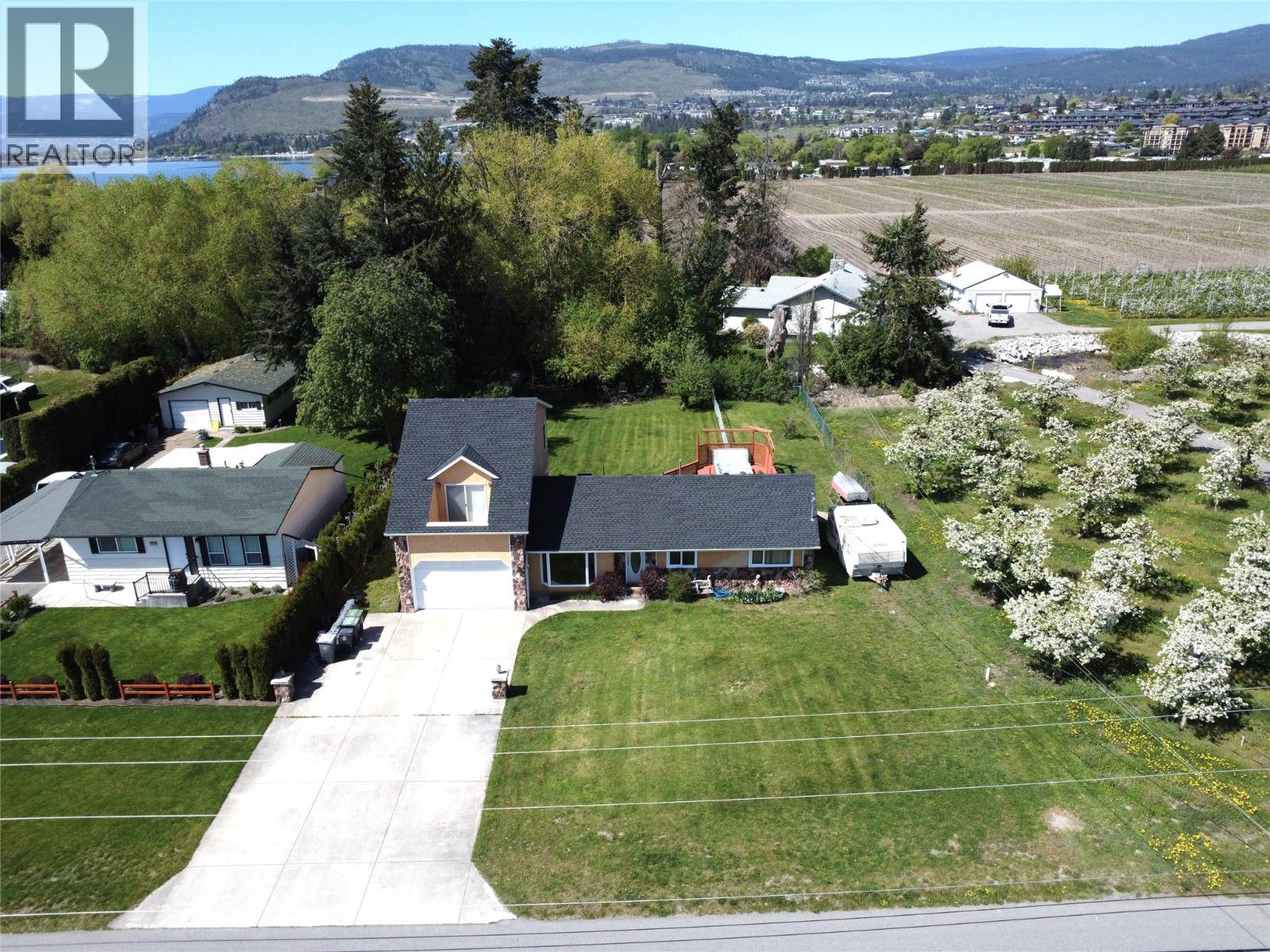 Country Living Just Steps from the Lake Tucked into a one of the area's most coveted streets, 3982 Hitchner Road offers the rare blend of space, privacy, and walkable lake access. This 0.3-acre property backs onto a peaceful creek and is surrounded by orchards, yet it's just one block from two sandy beaches and minutes from town. The 2,026 sq ft home features 3 bedrooms plus a den, 2 full bathrooms, and a flexible layout with potential to add a fourth bedroom. The spacious primary suite includes two private balconies overlooking separate orchards. The main level offers a warm, country-style kitchen with hickory cabinets, a bright living area with views of mature trees, and a cozy den that opens to the backyard. Upgrades include a new roof, high-efficiency furnace and A/C, water softener, private and shared water licenses, and city sewer connection. Downstairs offers 386 sq ft of bonus space with a separate entrance, ideal for a home office, studio, or suite. Outside, enjoy a large deck, hot tub under the trees, and an oversized garage with parking for five or more vehicles, including space for RV and boat. Hitchner Road is known for its rural charm, large lots, and close-knit community. Homes here are tightly held and rarely available, this is a well-maintained property with space to grow and make it your own. (id:6770)