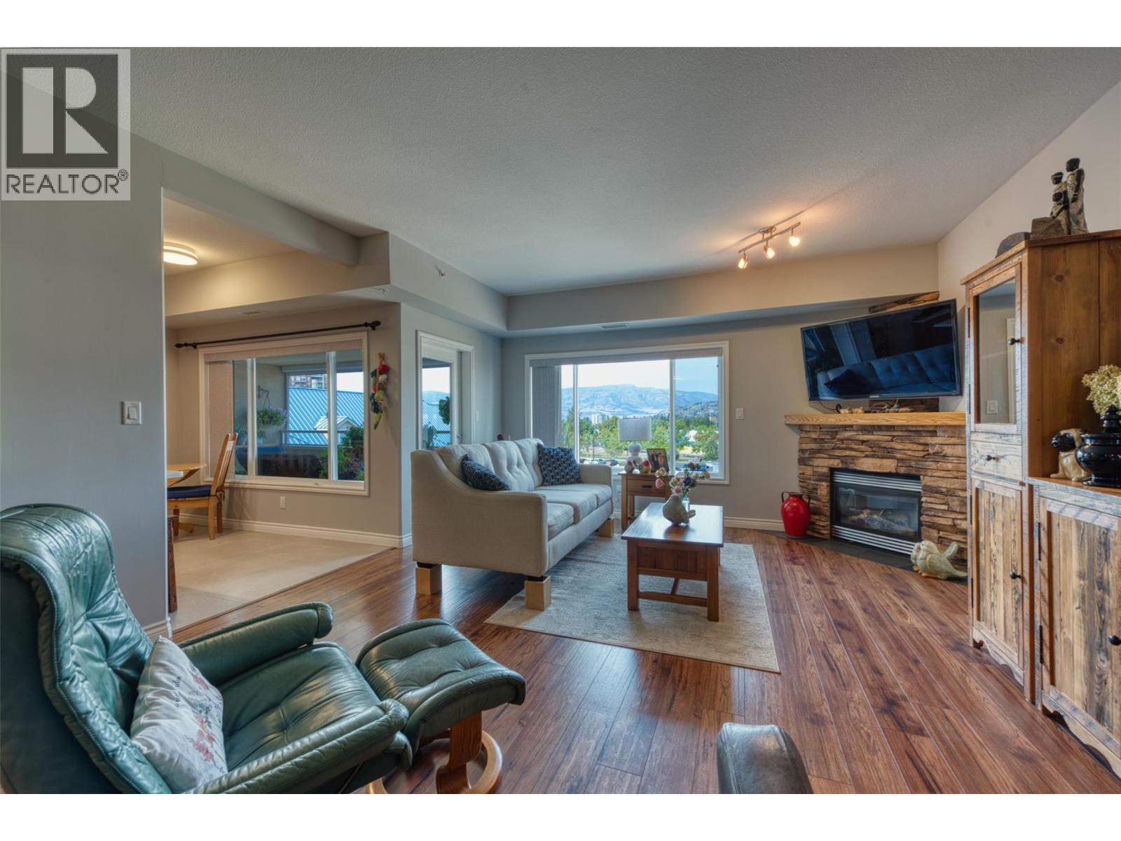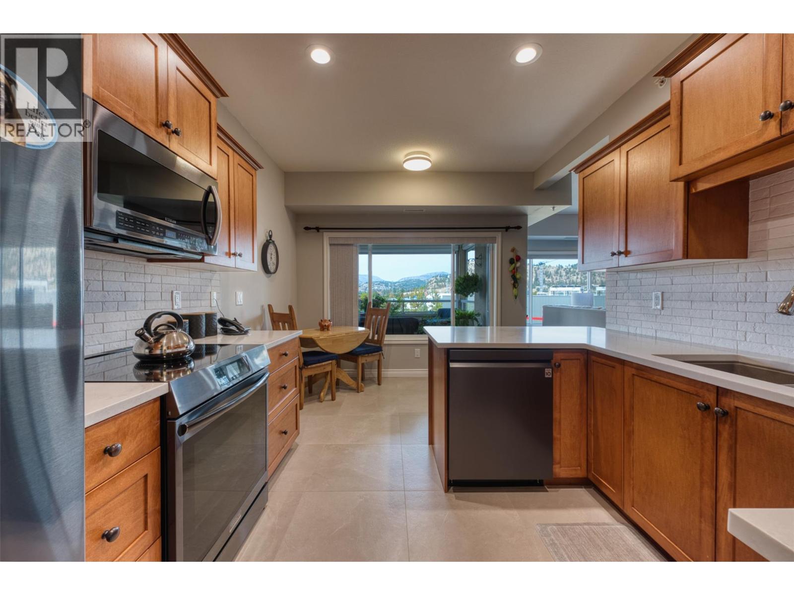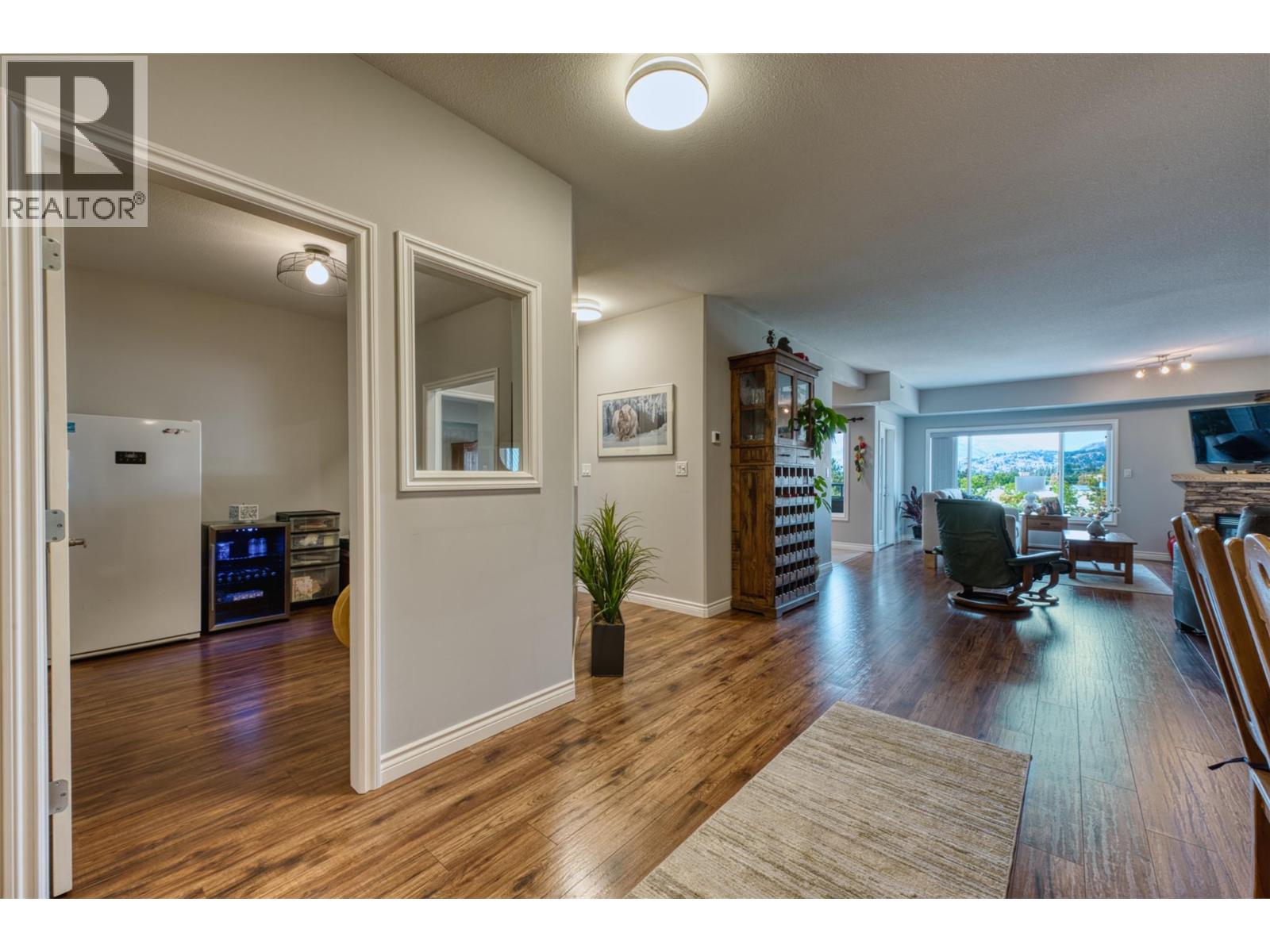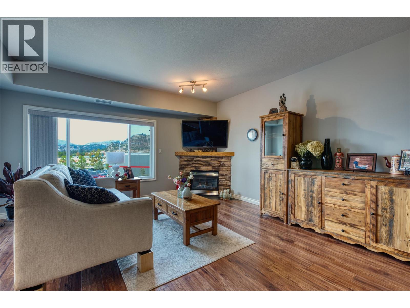 Prime Top-Floor Corner Residence in Bristol Gardens --- Discover this beautifully updated top-floor corner unit in the sought-after Bristol Gardens community. Featuring fresh paint throughout, this spacious 2-bedroom plus office, 2-bathroom home has been thoughtfully upgraded with new ensuite flooring and shower, refreshed kitchen flooring, new countertops, a modern backsplash, and more. The open-concept dining and living areas are ideal for entertaining, highlighted by a cozy corner gas fireplace and expansive windows that frame northwest mountain and city views. Step out onto the private enclosed deck to enjoy your morning coffee or evening sunsets. The generously sized primary suite offers sliding glass doors to the deck and a fully updated ensuite complete with high-end walk-in shower. The kitchen, designed for convenience and style, features stainless steel appliances, new quartz counter-tops, an eating bar, and plenty of cabinetry—accessible from both sides for ease of flow. Perfectly located, Bristol Gardens offers walkable access to shops, restaurants, and Mission Creek Park’s scenic trails. Residents also enjoy a wealth of amenities, including a clubhouse with kitchen facilities, a library, billiards room, workshop, bike room, and lush green space. Secure underground parking and a separate storage locker are included. This amazing corner-unit combines comfort, convenience, and lifestyle in one exceptional home. (id:6770)