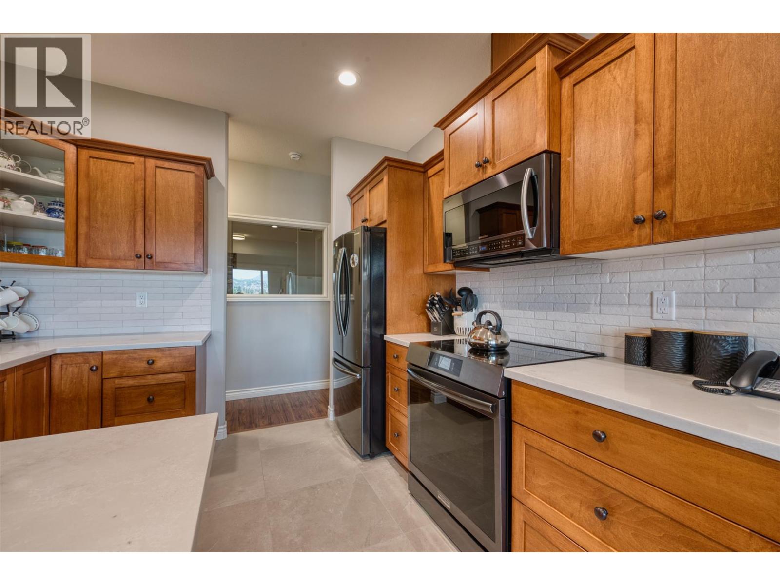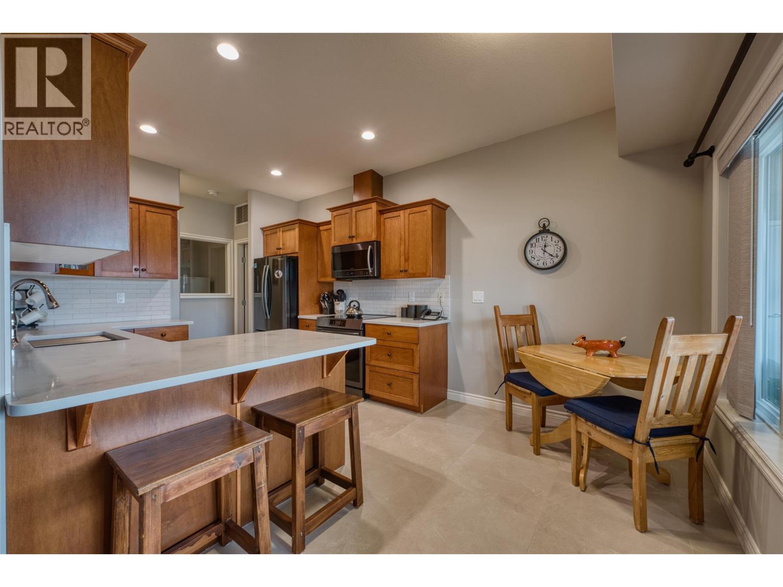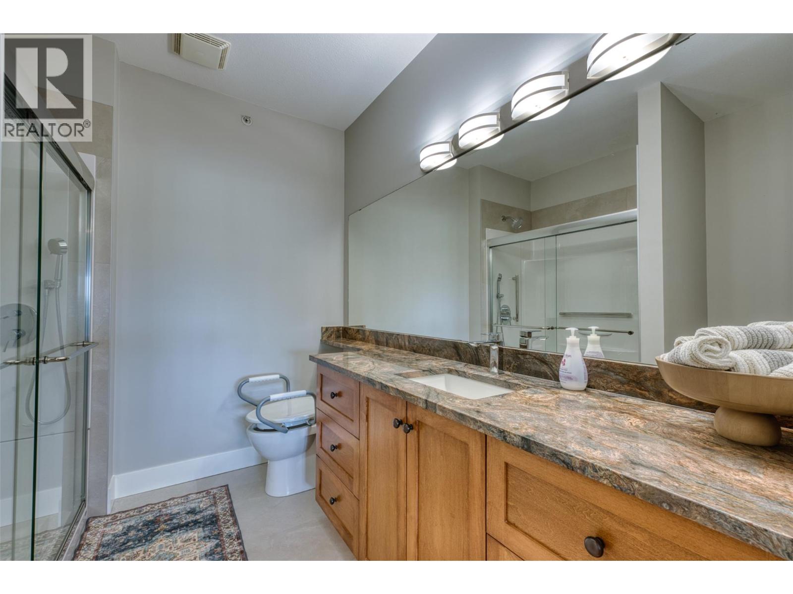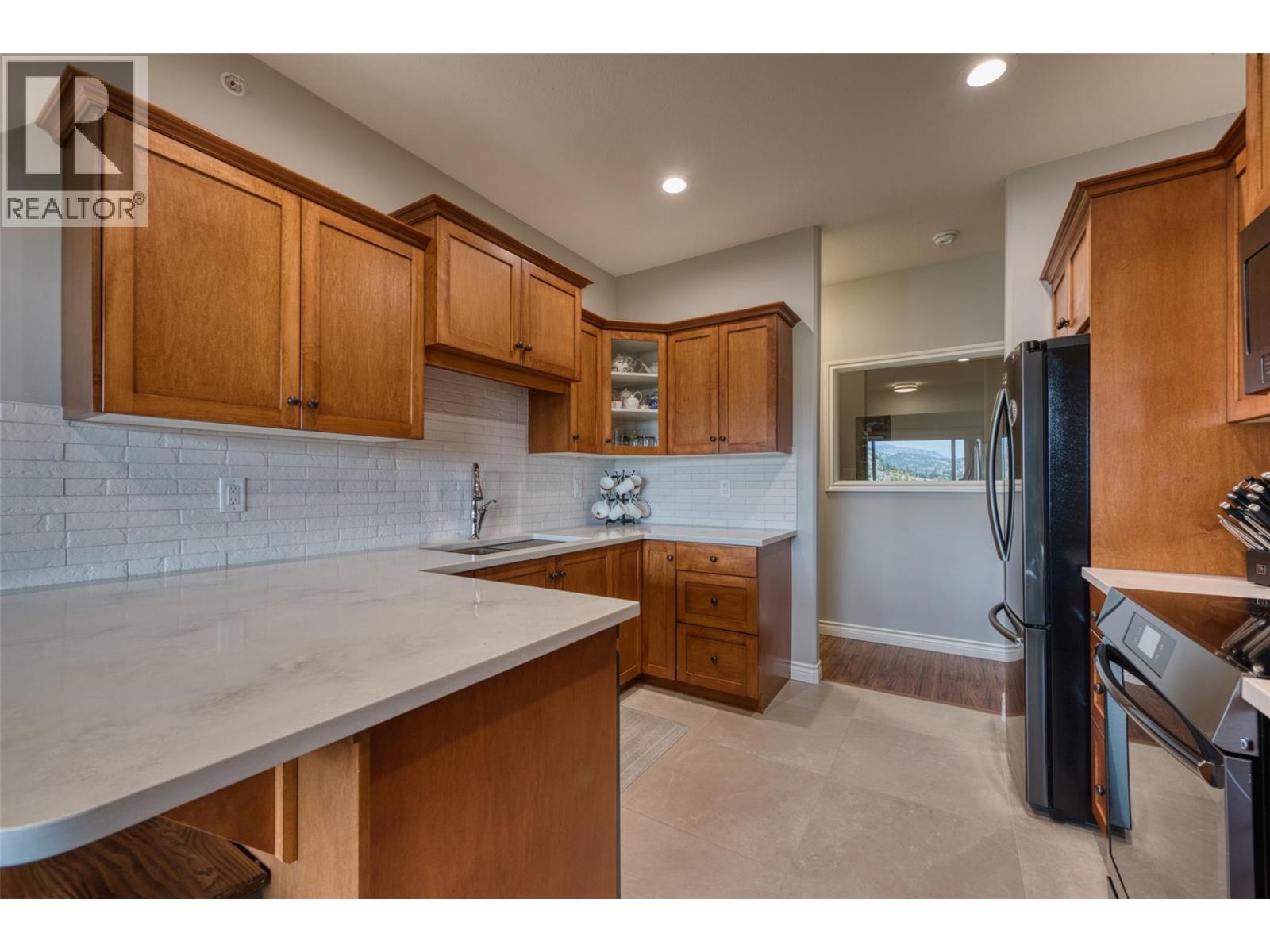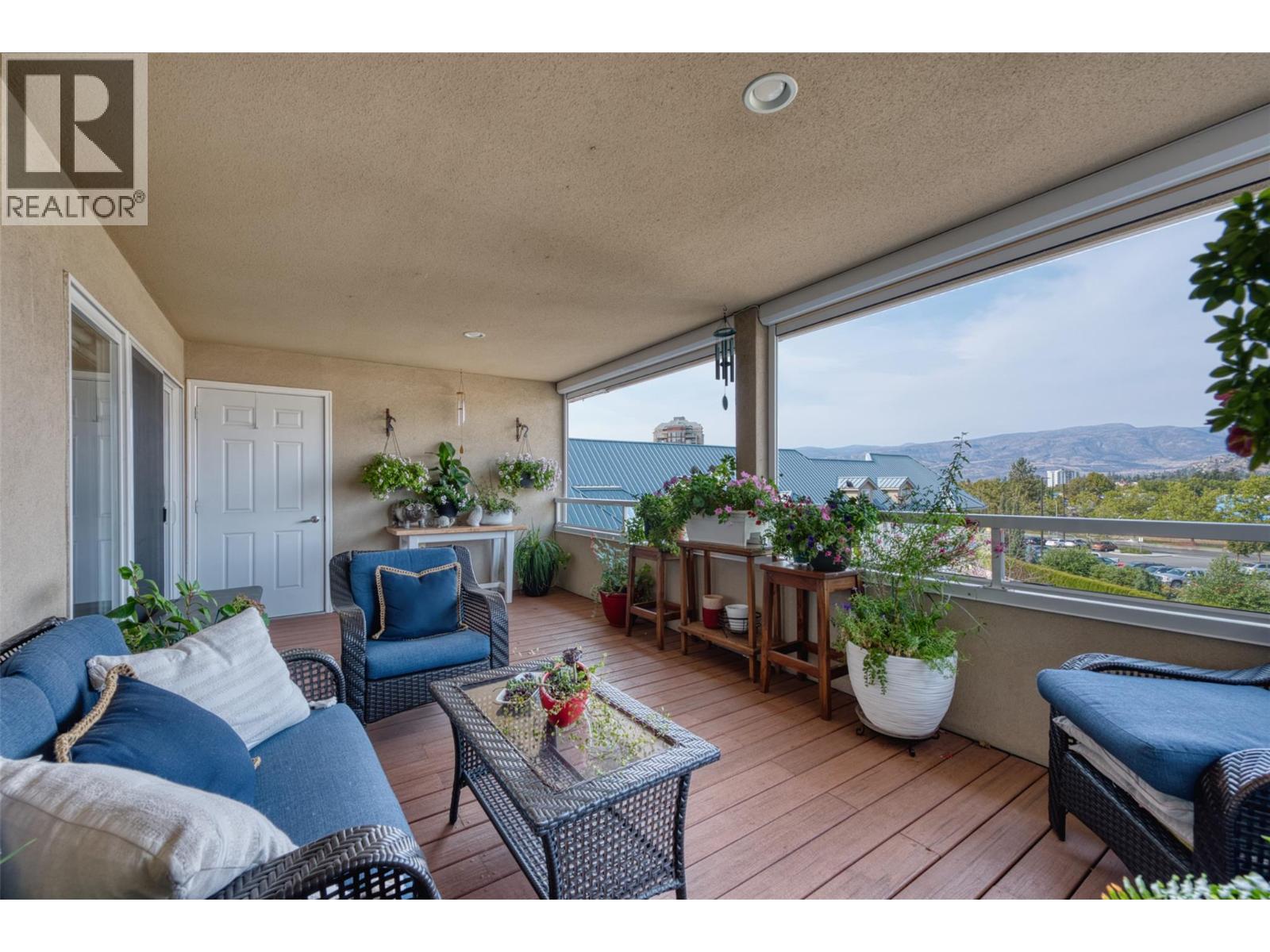 Prime Top-Floor Corner Residence in Bristol Gardens --- Discover this beautifully updated top-floor corner unit in the sought-after Bristol Gardens community. Featuring fresh paint throughout, this spacious 2-bedroom plus office, 2-bathroom home has been thoughtfully upgraded with new ensuite flooring and shower, refreshed kitchen flooring, new countertops, a modern backsplash, and more. The open-concept dining and living areas are ideal for entertaining, highlighted by a cozy corner gas fireplace and expansive windows that frame northwest mountain and city views. Step out onto the private enclosed deck to enjoy your morning coffee or evening sunsets. The generously sized primary suite offers sliding glass doors to the deck and a fully updated ensuite complete with high-end walk-in shower. The kitchen, designed for convenience and style, features stainless steel appliances, new quartz counter-tops, an eating bar, and plenty of cabinetry—accessible from both sides for ease of flow. Perfectly located, Bristol Gardens offers walkable access to shops, restaurants, and Mission Creek Park’s scenic trails. Residents also enjoy a wealth of amenities, including a clubhouse with kitchen facilities, a library, billiards room, workshop, bike room, and lush green space. Secure underground parking and a separate storage locker are included. This amazing corner-unit combines comfort, convenience, and lifestyle in one exceptional home. (id:6770)