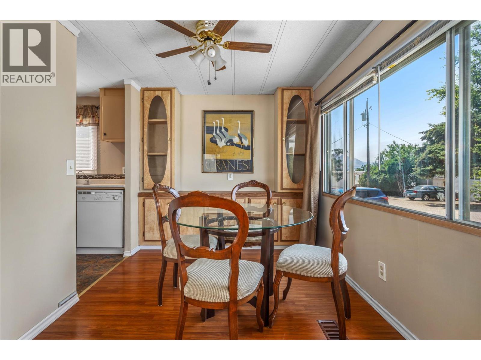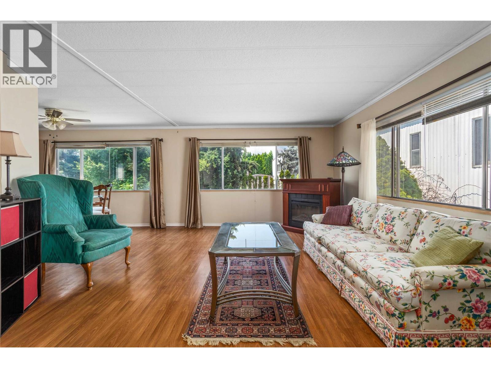 Nestled in a peaceful, well-maintained park, this charming double-wide mobile home offers the perfect blend of privacy and convenience. Backing onto a quiet creek, the setting is serene and surrounded by nature. Inside, you’ll find a thoughtfully designed layout with 2 comfortable bedrooms, 1 bathroom, and a spacious, open-concept kitchen and living area. Step outside to your private backyard oasis, complete with multiple planter boxes for garden lovers and a beautiful, mature cherry tree that adds shade and charm. The home's electrical has been recently inspected and certified with a new silver label. Enjoy being just minutes from the lake, top-rated wineries, and two stunning golf courses—everything you need is within easy reach. Located in a welcoming 55+ community, this is your opportunity to enjoy quiet, carefree living in a location that has it all. (id:6770)