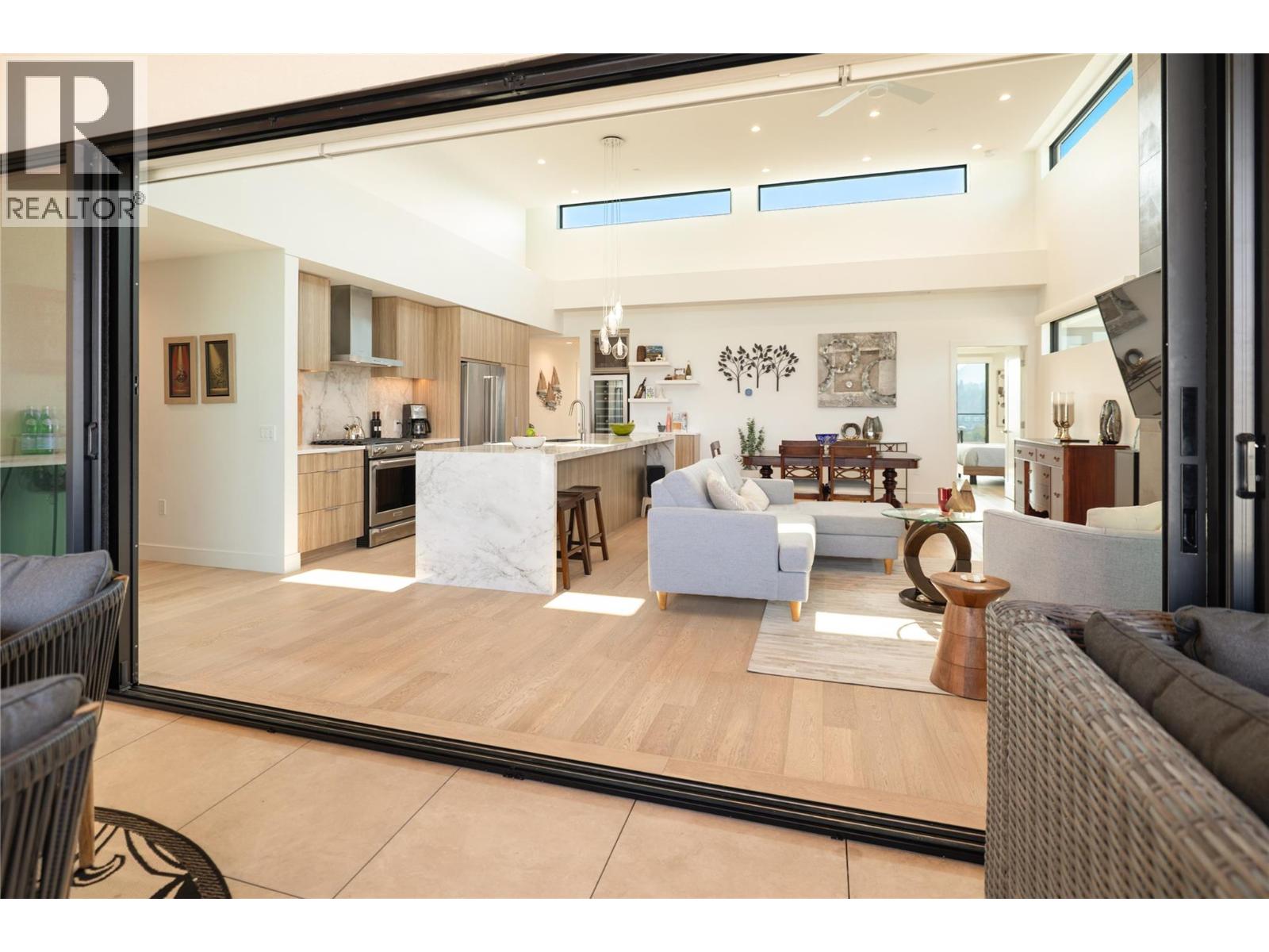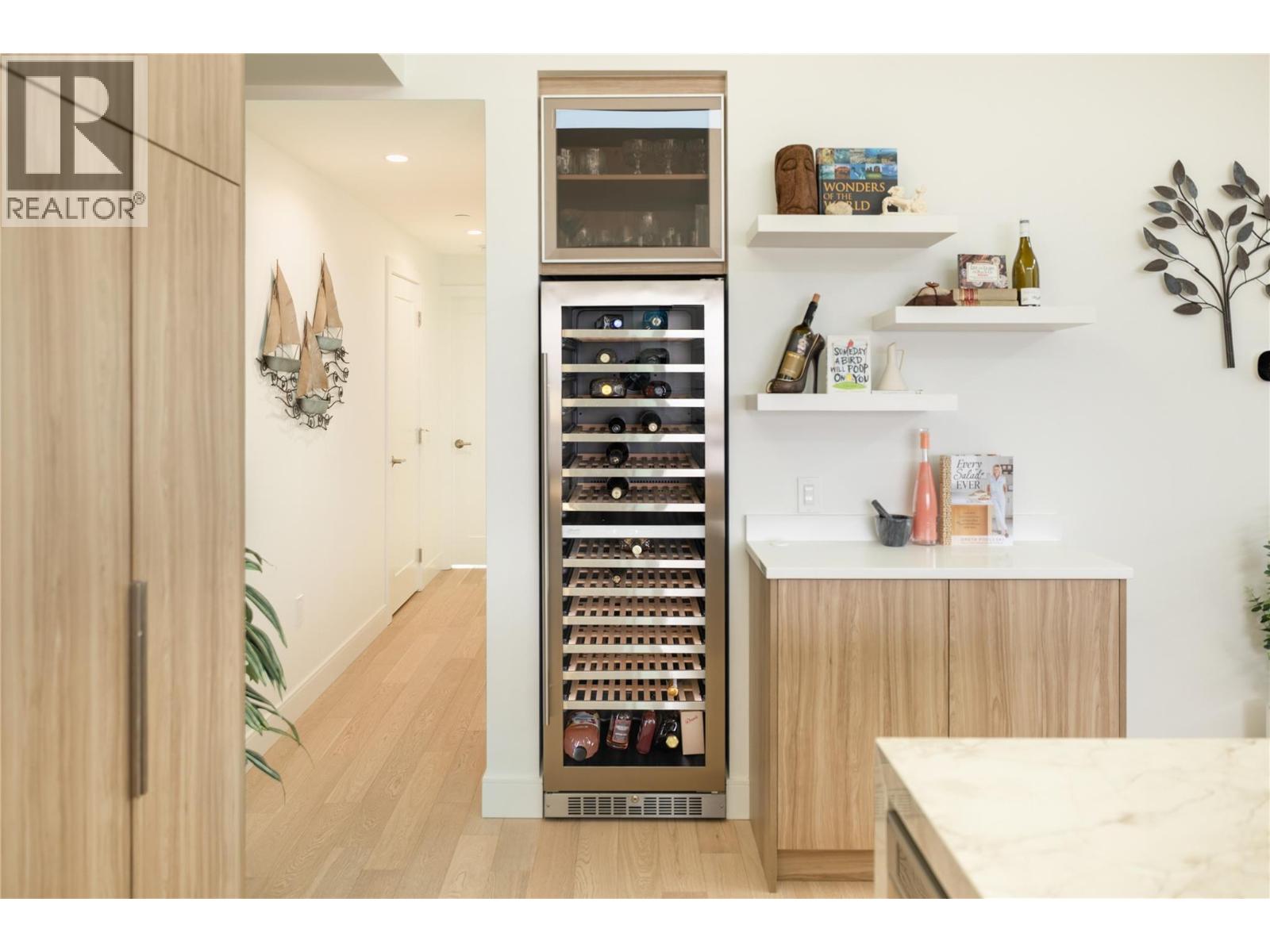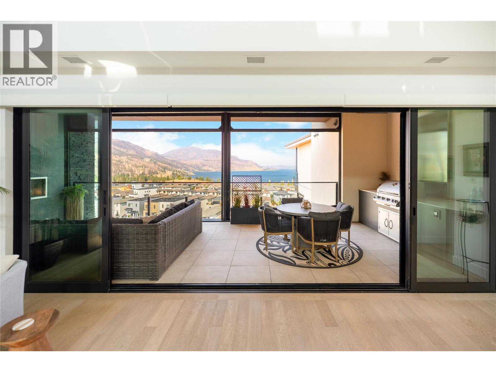 Penthouse living with a lifestyle to match. This top-floor 2 bed plus den, 3 bath home impresses with soaring 16’ ceilings and wraparound transom windows that flood the space with natural light from sunrise to sunset. Premium design details include brushed oak hardwood, a Cosentino Dekton Stonika Berge waterfall island with matching backsplash, and polished Cambria White Cliff countertops throughout the home. Blending elegance with comfort, it offers an equal sense of openness and intimacy. Two expansive balconies extend your living space year-round. The main balcony is complete with motorized screens, 2 ceiling infrared heaters, full height tiled gas fireplace, built-in Jackson Grill BBQ and additional gas hookup for a fire bowl or table—perfect for entertaining or quiet evenings. Breathtaking lake, mountain, and city views are enjoyed from nearly every angle. The primary retreat showcases unforgettable sunsets, a dream walk-in closet, a spa-inspired ensuite and large, private balcony. Control4 automation makes living effortless. Nearly new (with no GST) and offering resort-style amenities—steam rooms, yoga studio, gym, pool, pickleball courts, lounges, and patios—this residence delivers both luxury and ease. With a prepaid, worry-free 125-year lease and secure lock-and-leave convenience, it’s ideal for those who want to live richly, entertain impressively, and travel with peace of mind. (id:6770)