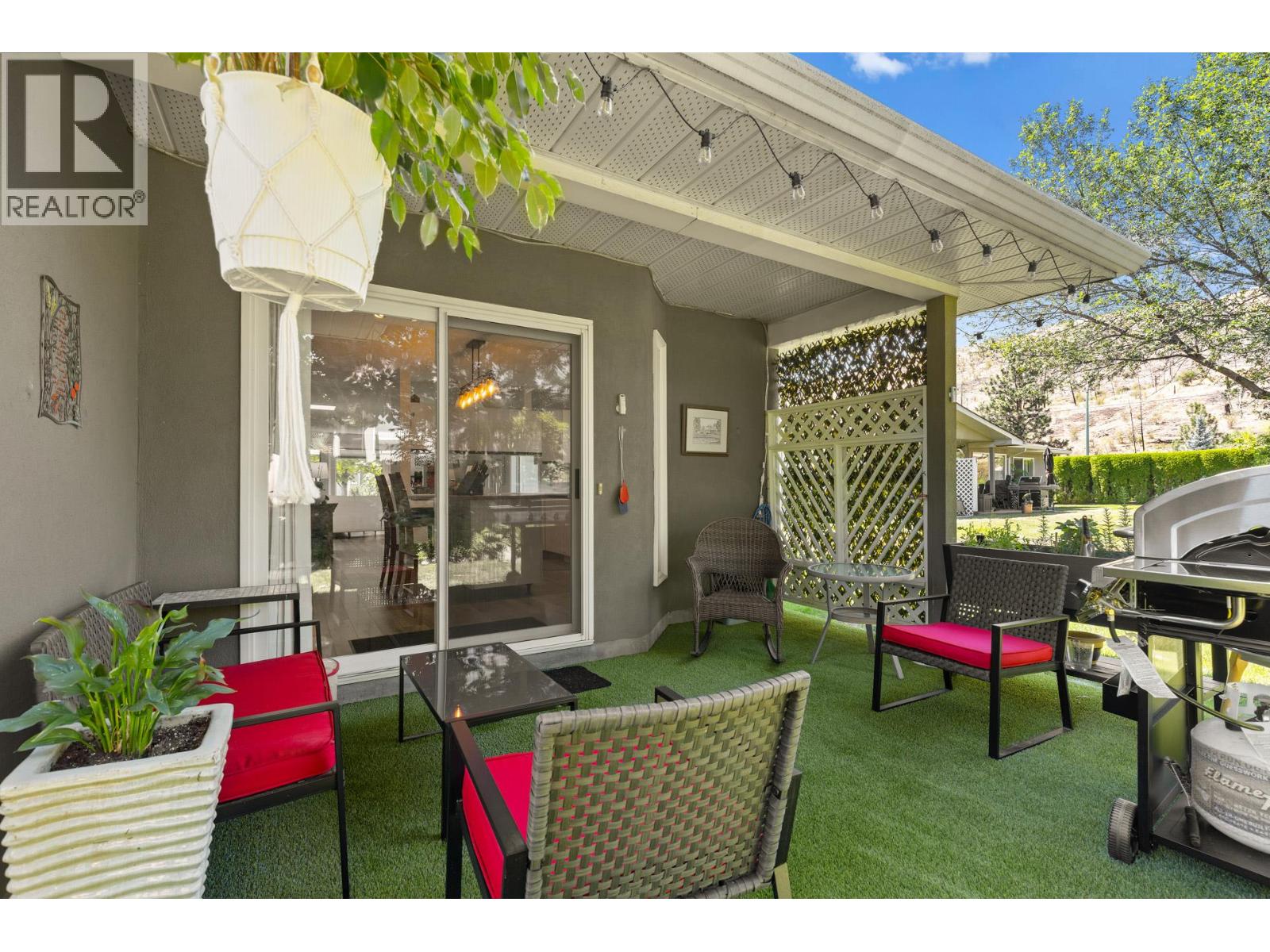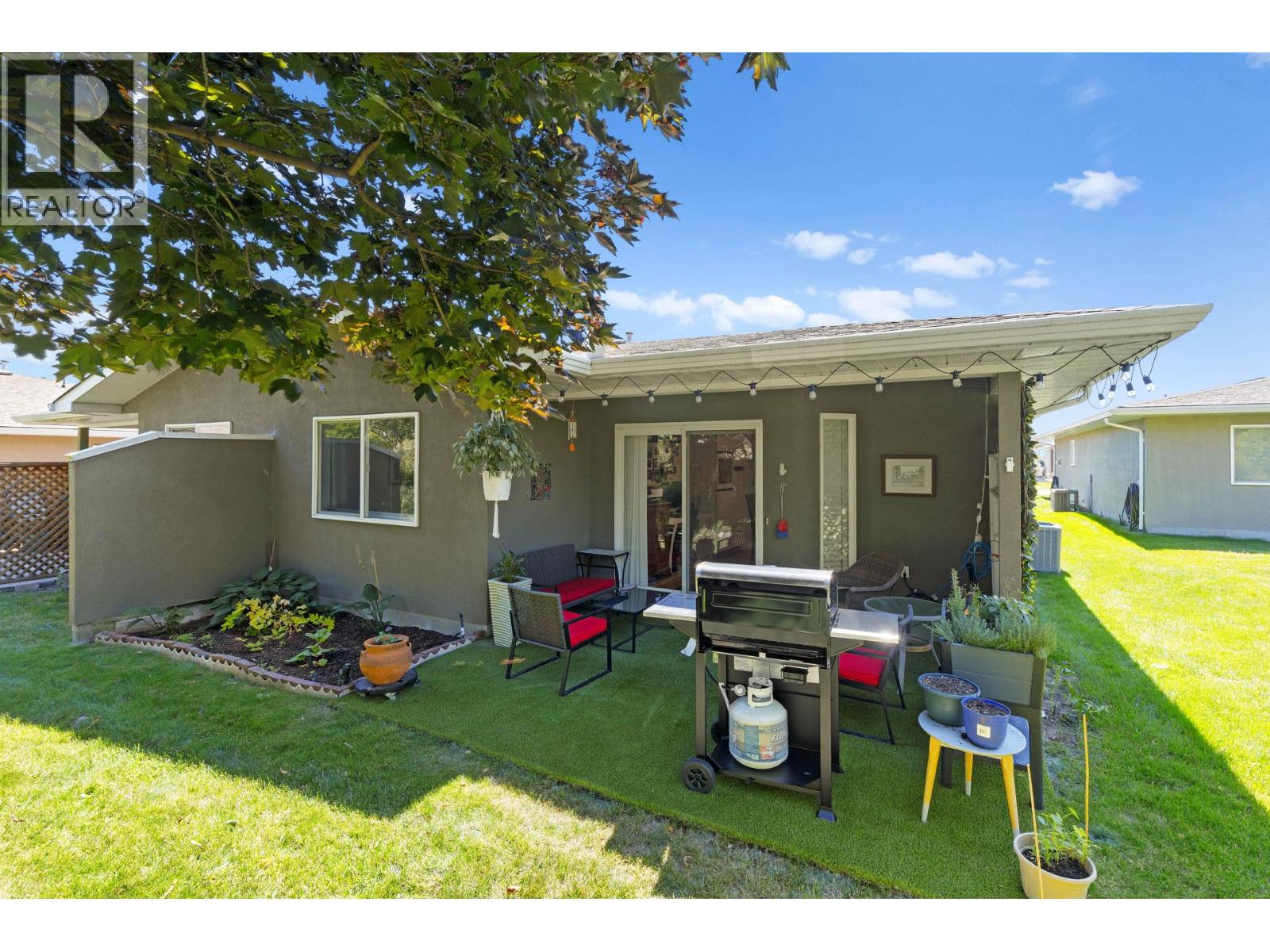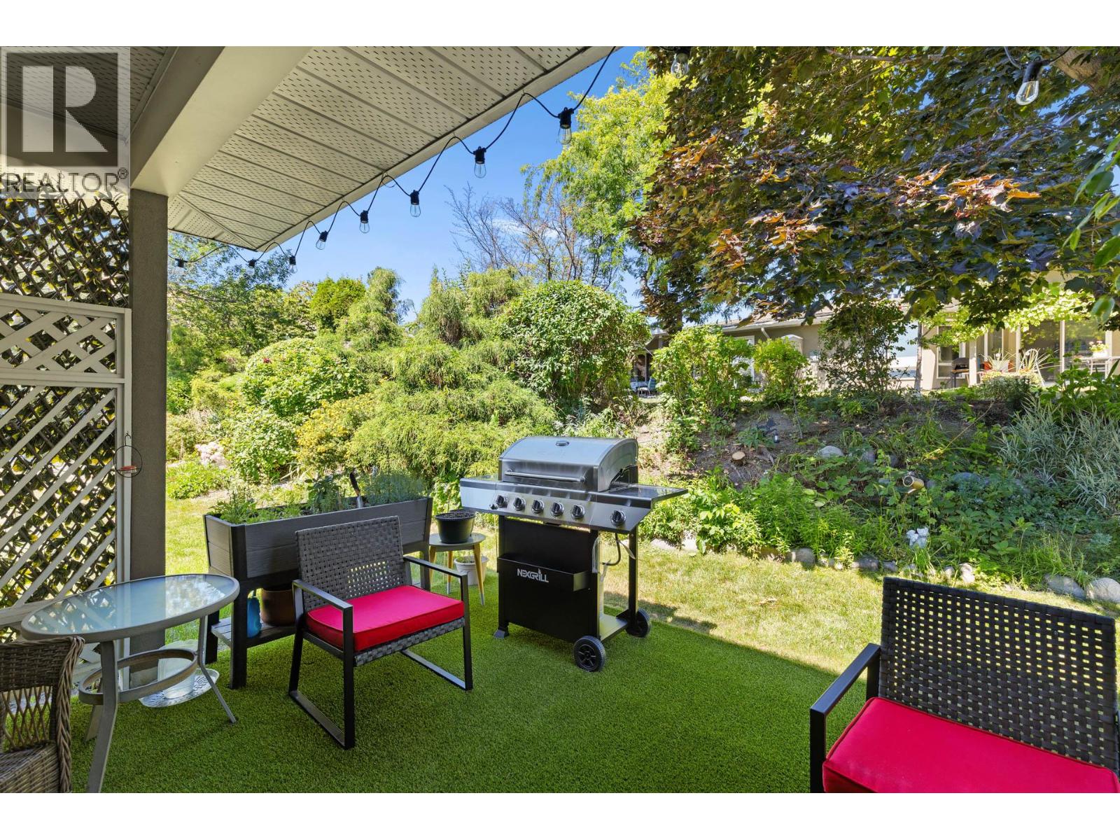 Welcome to Canyon Ridge – A Tranquil 55+ Gated Community. This beautifully maintained 2-bedroom, 2-bathroom semi-detached rancher-style townhome is tucked into the heart of Canyon Ridge, a peaceful and impeccably cared-for 55+ gated community. Offering over $40K in thoughtful upgrades—including new furnace, Air conditioning, hot water tank, windows, upgraded plumbing and much more! This home strikes the perfect balance between comfort and Charm. Step inside to discover a bright, airy layout with open-concept living and a cozy gas fireplace. The spacious and bright kitchen features a dine-on butcher block island with built-in storage and a sunny nook ideal for a desk or reading chair. Large dining space makes entertaining effortless. Enjoy morning coffee or quiet evenings on your private covered patio that backs onto a gentle waterway, an ideal setting for reading, reflection, or simply soaking in the serenity. The primary suite is tucked away for privacy with lush landscape views and a four-piece ensuite. Roller blinds throughout add modern functionality and style. Additional features include a single-car garage with extra storage, low strata fees, and access to a vibrant clubhouse. Located just minutes from the Gellatly Nut Farm, scenic Glen Canyon Regional Park, Hiking and waterfront trails, and the beaches of the Okanagan—you’re perfectly positioned to enjoy nature, connection, and the best of West Kelowna living. Book your showing today! (id:6770)