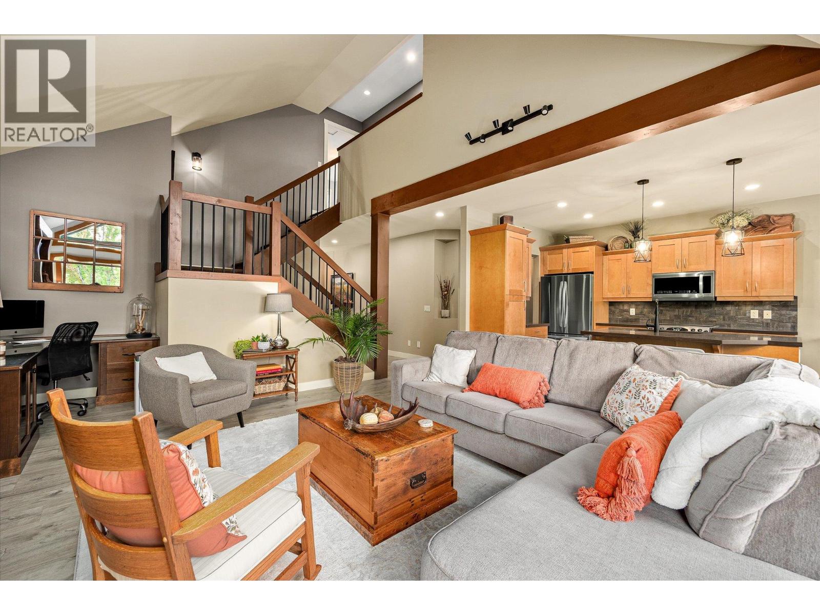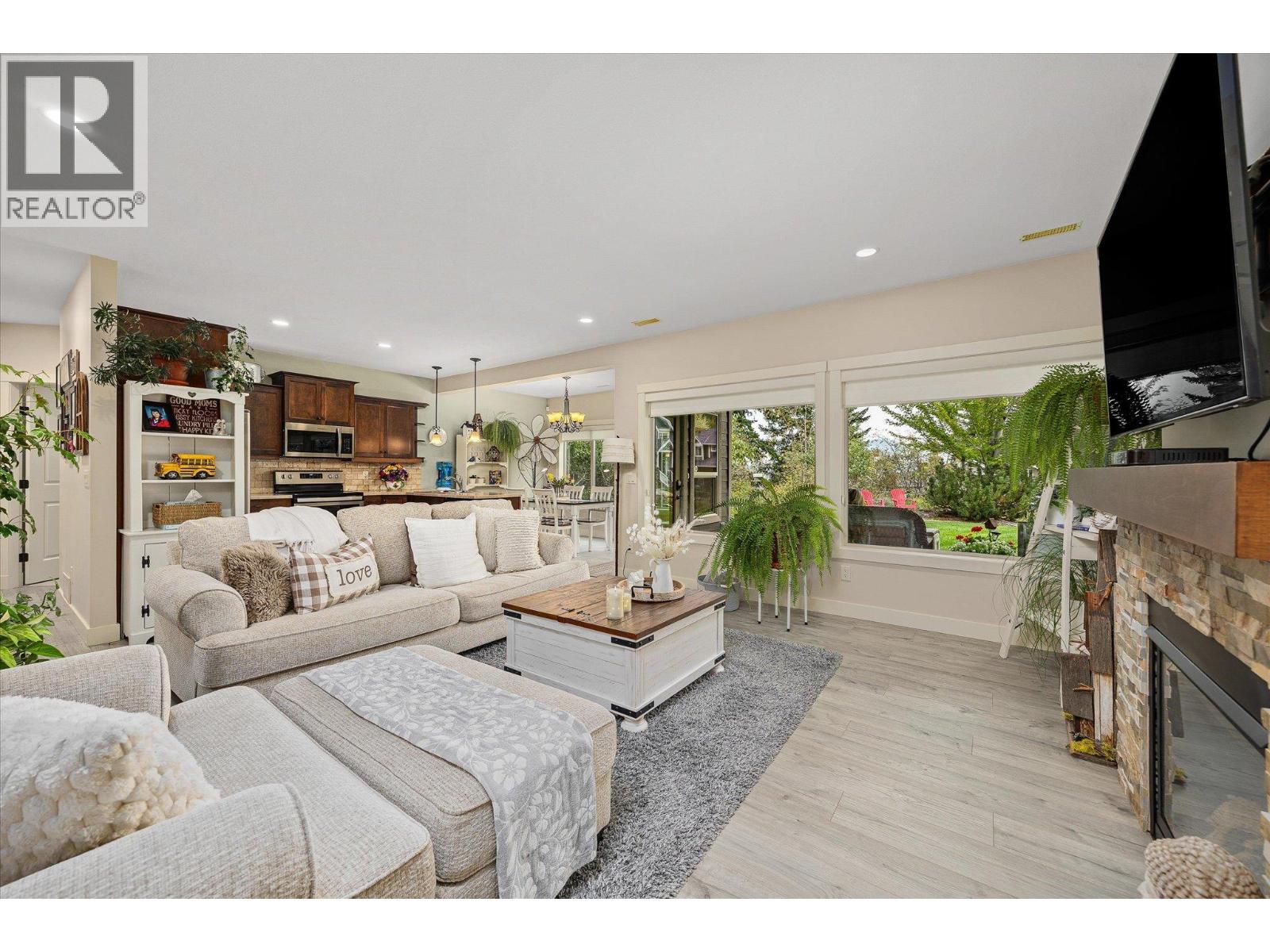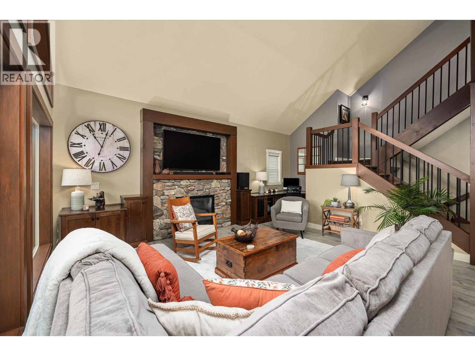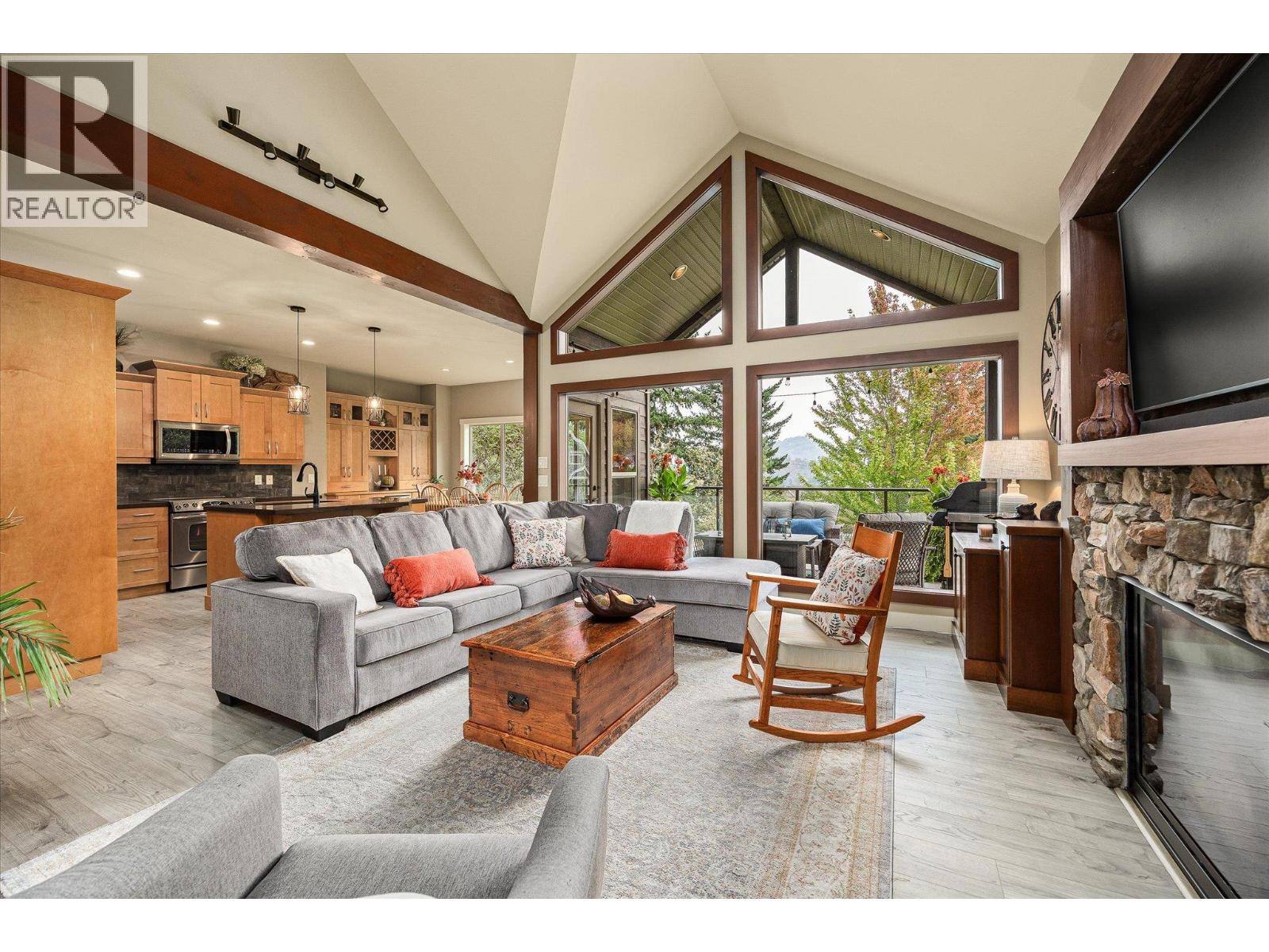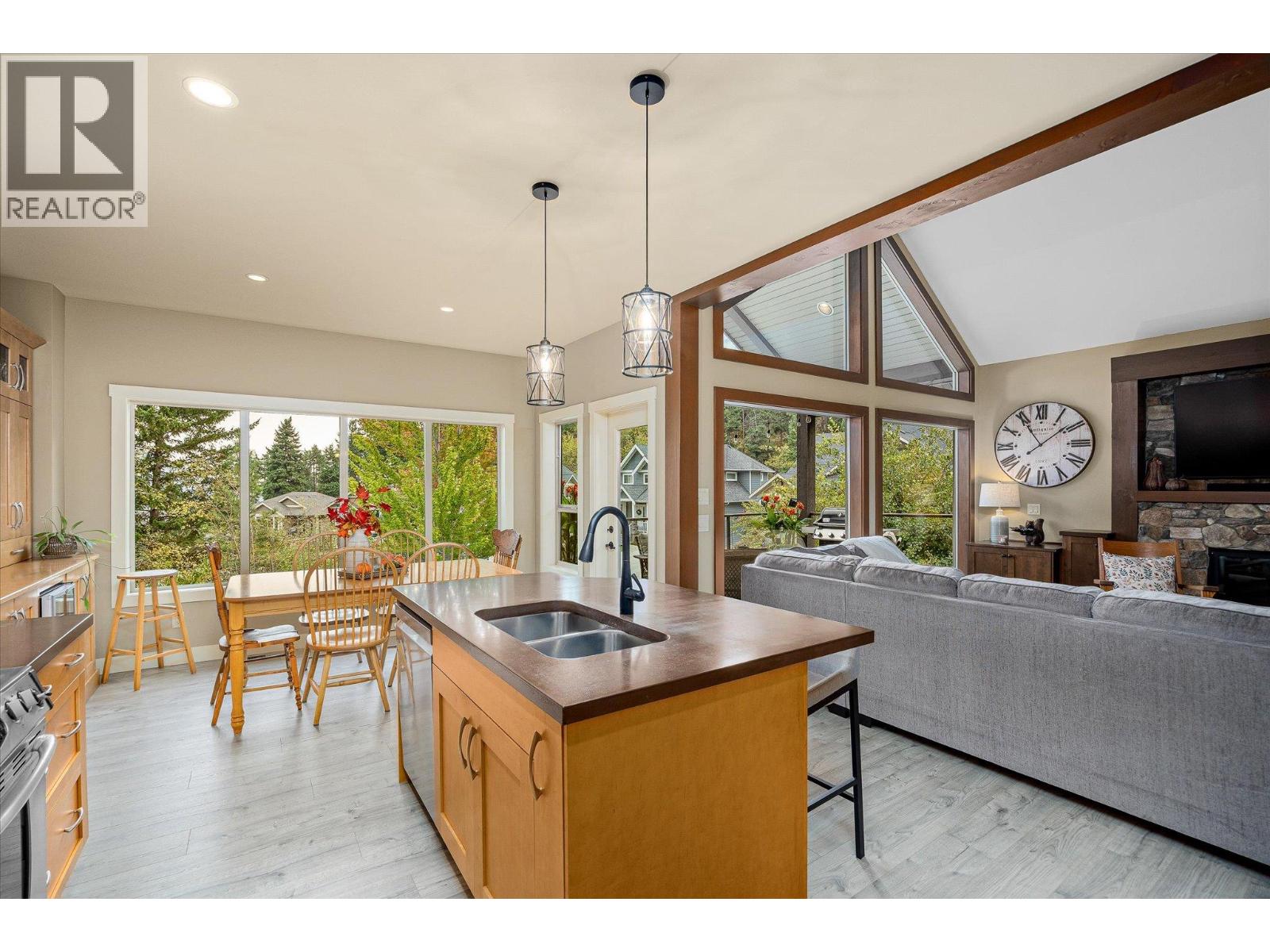 Exceptional 7-bedroom, 4-bath home in Tallus Ridge! Character, warmth, and quality define every inch of this expansive 3,400 sq. ft. residence. Step inside to a bright living space with soaring 16-foot ceilings, a striking stone fireplace, and expansive windows overlooking the pool-sized yard. The kitchen is designed for family living and entertaining, featuring solid wood built-in cabinetry, a large adjacent laundry and pantry, and plenty of space to gather. The king-sized main floor primary retreat offers a spa-like ensuite with a deep soaker tub and large tiled shower. A dedicated office or bedroom plus a full bath complement this level. Upstairs, two more spacious bedrooms and a full bath await, while a versatile flex room below offers the option of a fifth bedroom, gym, or media room. The lower level is perfect for generational living or income, with a 2-bedroom daylight walk-out in-law suite boasting high ceilings, a private patio, its own driveway, and a cozy gas fireplace. THIS is a home that breaks the mold of ‘builder white’ and shows the distinction of a home built to last. Outside, mature landscaping, perennial beds, and fruit trees create a private oasis backing onto ecological land, with no neighbours on three sides. Nestled in Tallus Ridge, the perfect community for active families, you’ll enjoy endless biking and hiking trails, a wonderful park, and proximity to fantastic schools. This home truly stands apart. (id:6770)