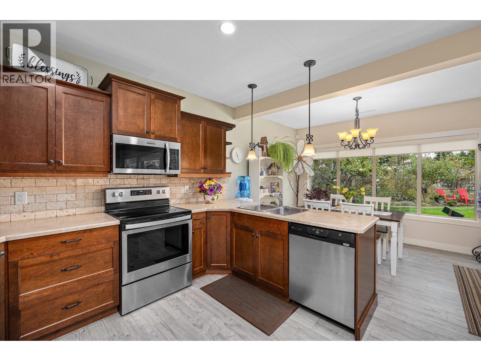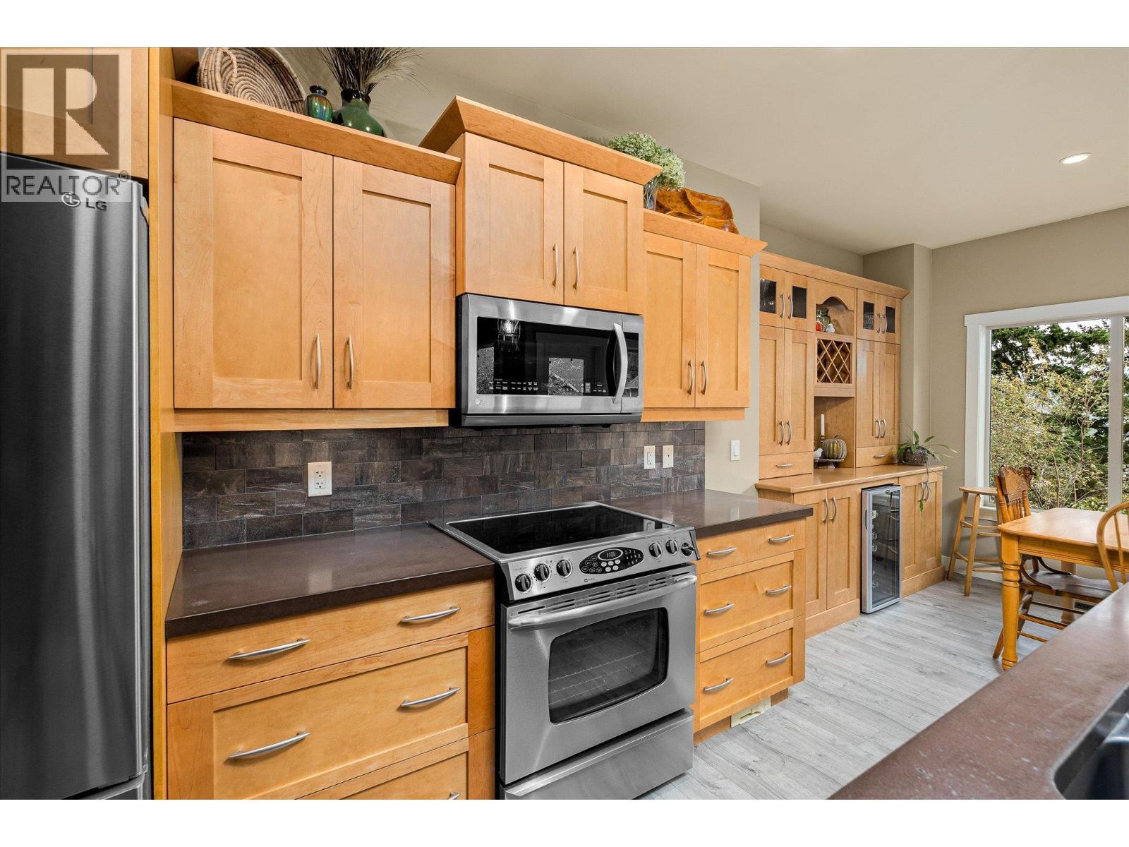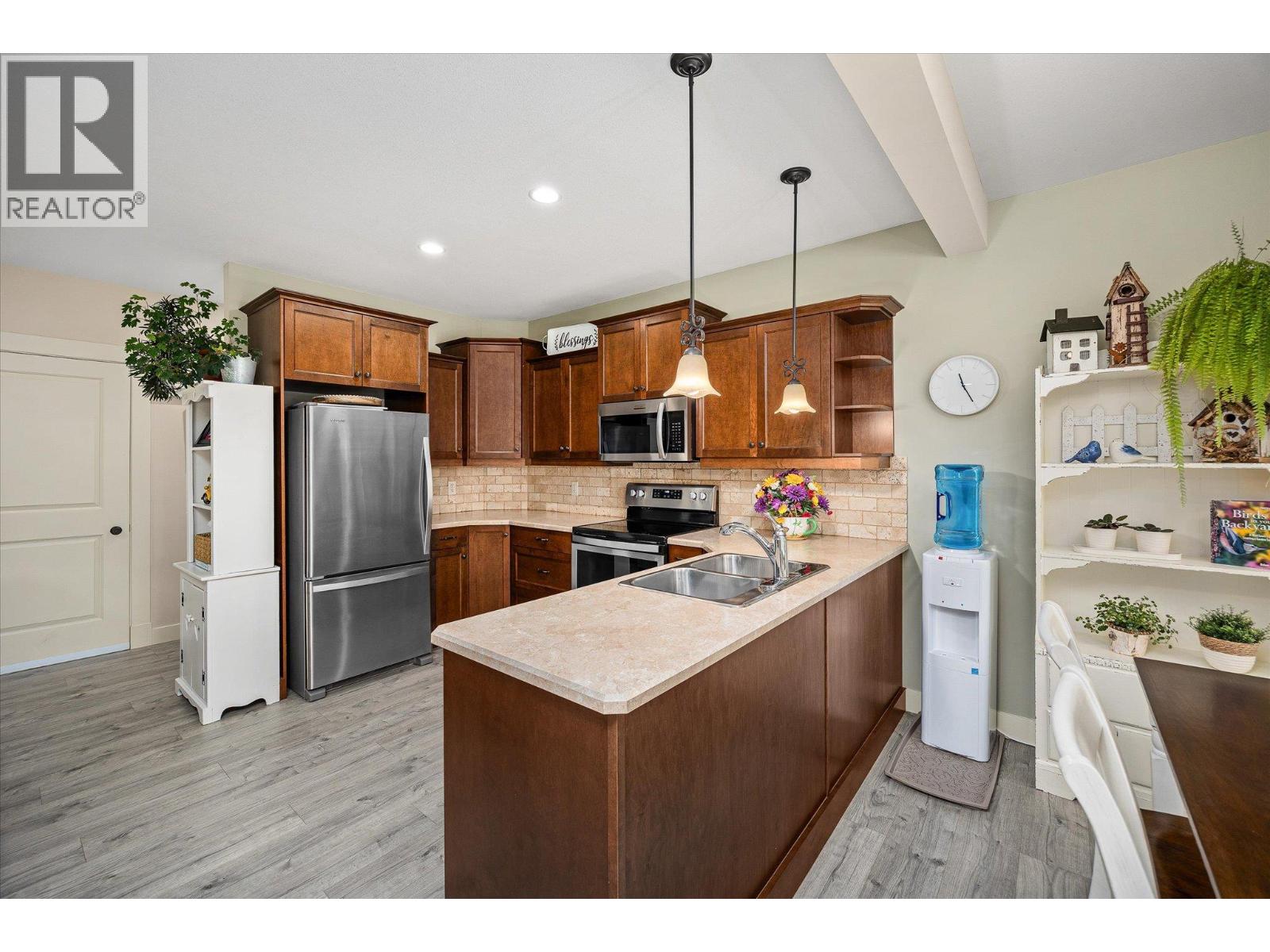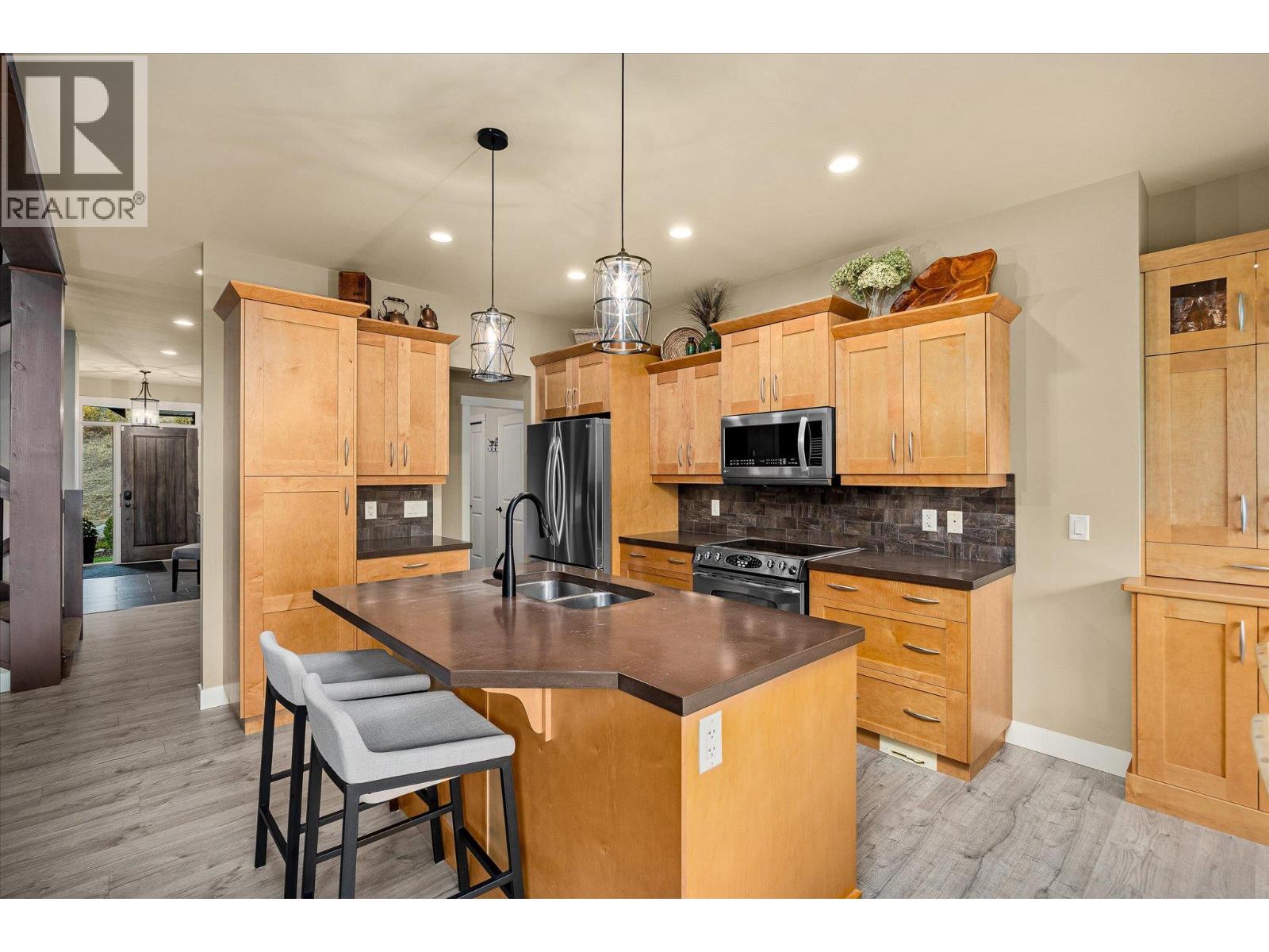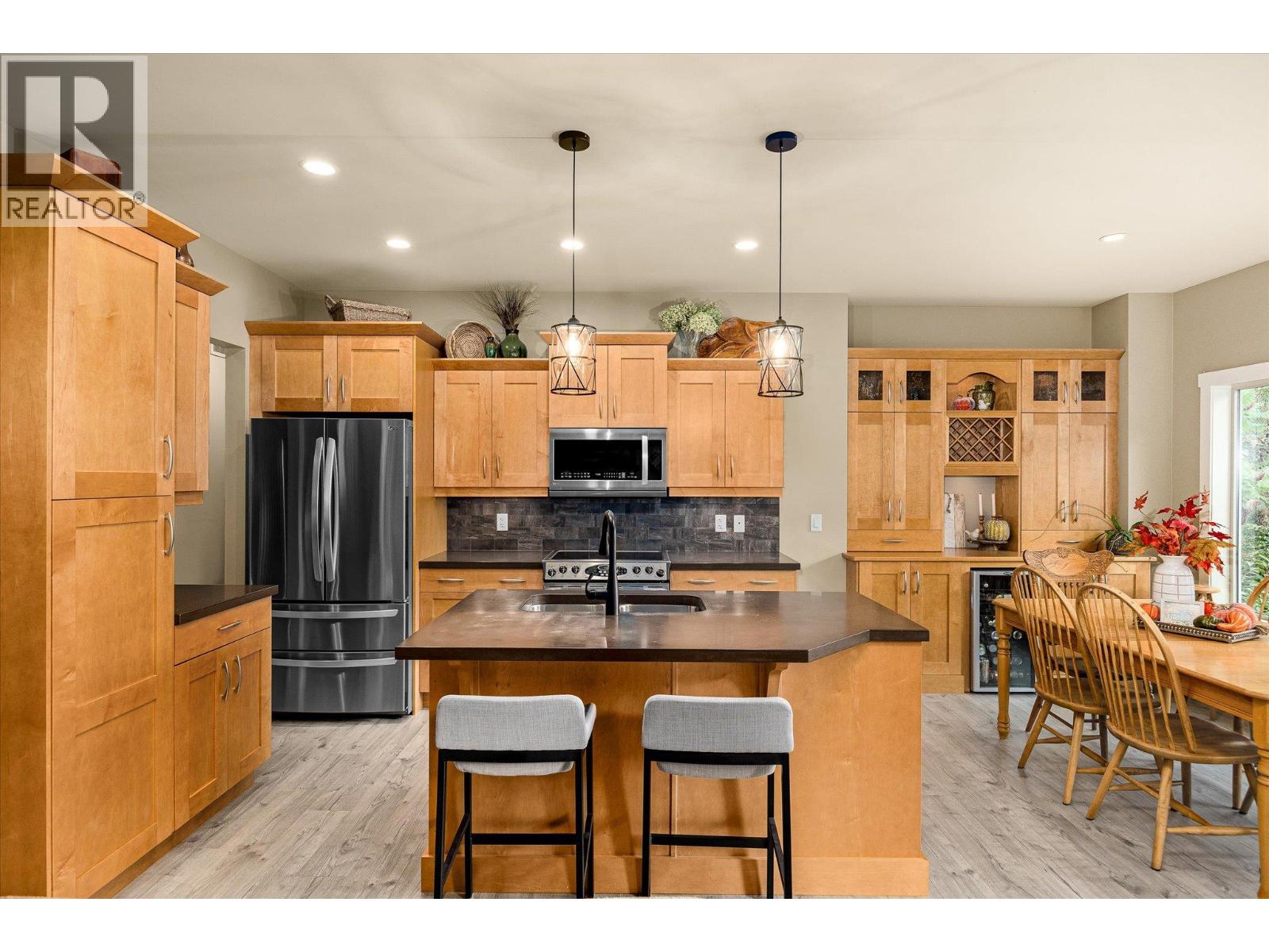 Exceptional 7-bedroom, 4-bath home in Tallus Ridge! Character, warmth, and quality define every inch of this expansive 3,400 sq. ft. residence. Step inside to a bright living space with soaring 16-foot ceilings, a striking stone fireplace, and expansive windows overlooking the pool-sized yard. The kitchen is designed for family living and entertaining, featuring solid wood built-in cabinetry, a large adjacent laundry and pantry, and plenty of space to gather. The king-sized main floor primary retreat offers a spa-like ensuite with a deep soaker tub and large tiled shower. A dedicated office or bedroom plus a full bath complement this level. Upstairs, two more spacious bedrooms and a full bath await, while a versatile flex room below offers the option of a fifth bedroom, gym, or media room. The lower level is perfect for generational living or income, with a 2-bedroom daylight walk-out in-law suite boasting high ceilings, a private patio, its own driveway, and a cozy gas fireplace. THIS is a home that breaks the mold of ‘builder white’ and shows the distinction of a home built to last. Outside, mature landscaping, perennial beds, and fruit trees create a private oasis backing onto ecological land, with no neighbours on three sides. Nestled in Tallus Ridge, the perfect community for active families, you’ll enjoy endless biking and hiking trails, a wonderful park, and proximity to fantastic schools. This home truly stands apart. (id:6770)