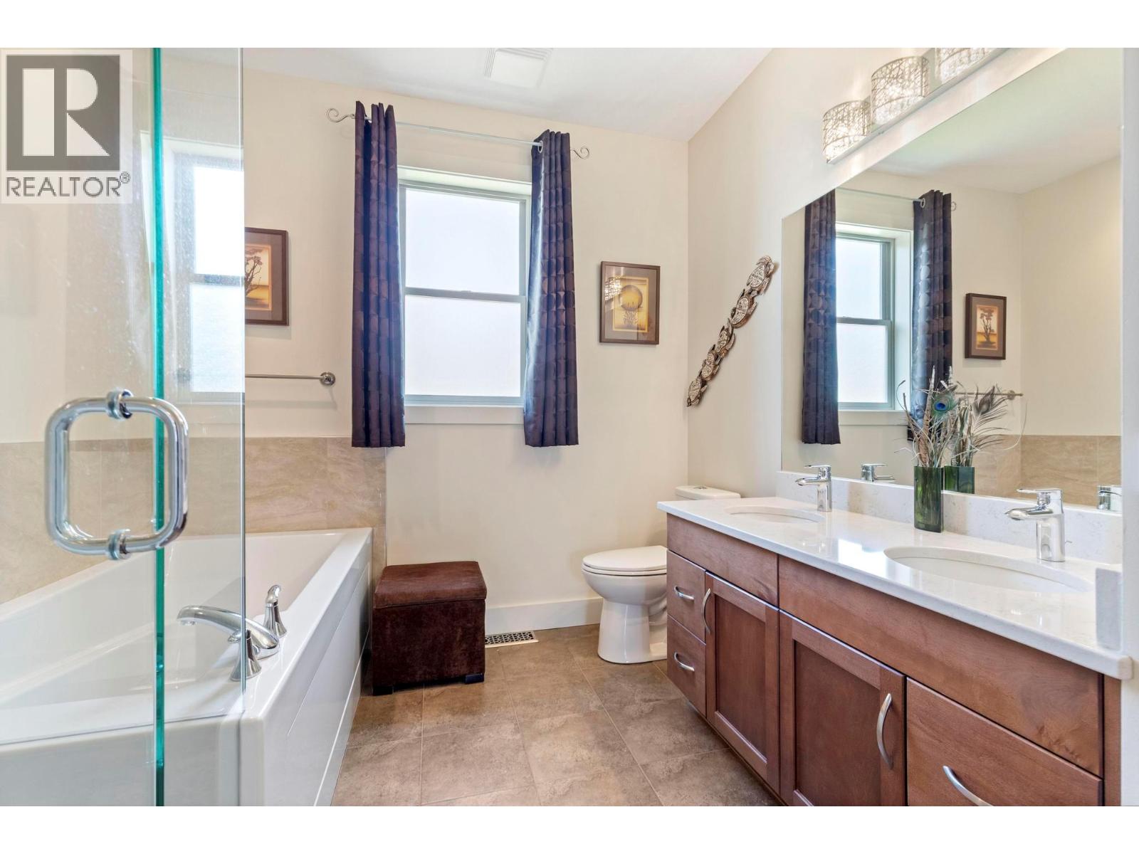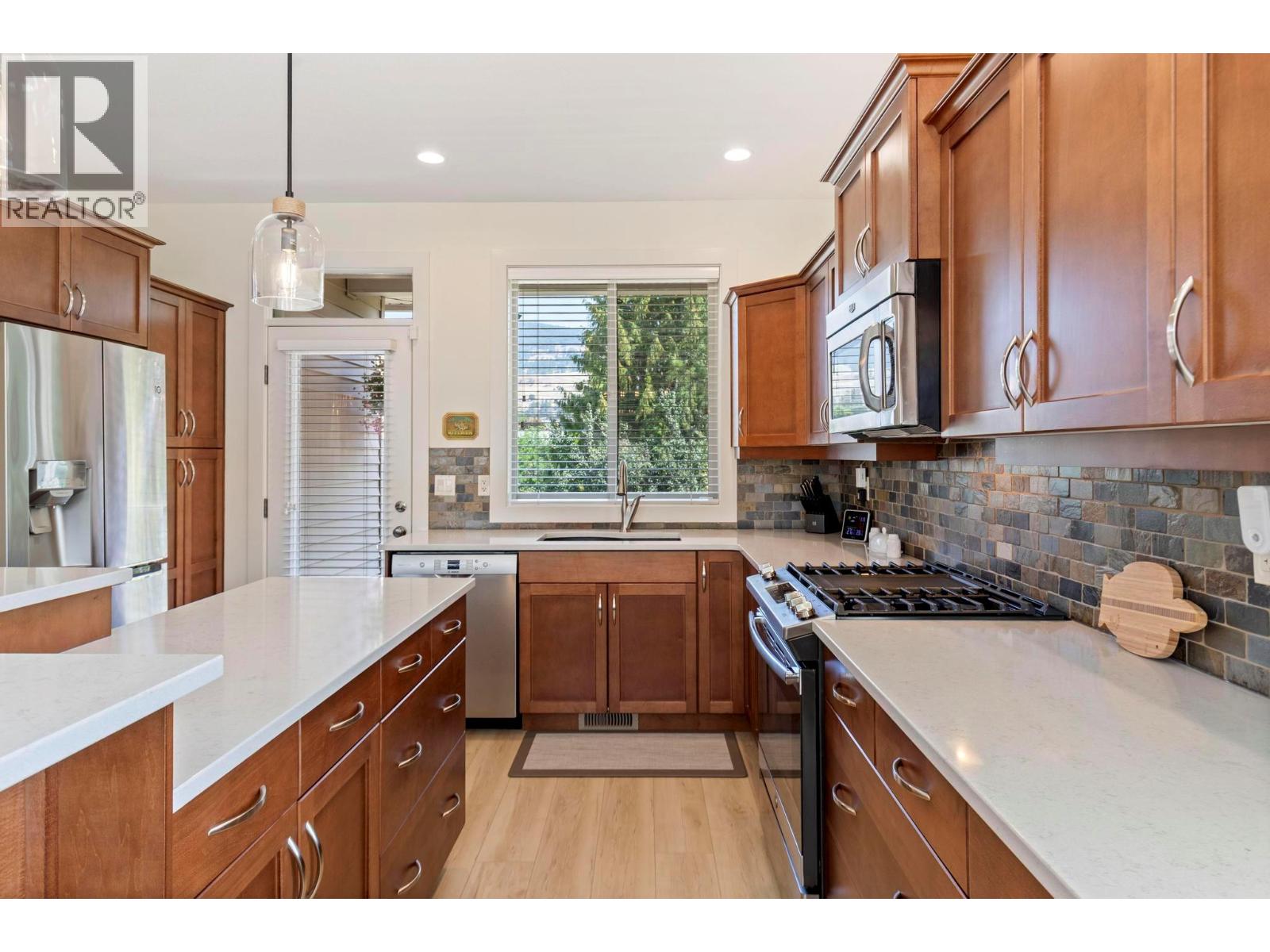 WELCOME TO WOODCREEK LANE – a warm and welcoming 55+ community where neighbours look out for one another and the location is second to none. This beautifully maintained 4 bedroom, 3 bathroom two-storey home offers over 2,200 SQ FT of bright, inviting living space designed for comfort and ease. The main level features an open layout perfect for entertaining, with a sparkling kitchen showcasing stainless steel appliances and timeless shaker cabinetry. The spacious primary suite includes his and her closets plus a 5-piece ensuite with both tub and shower. Downstairs, two additional bedrooms (one with ensuite) and a flexible office/den option, provide space for guests or hobbies. Step outside to your private, peaceful patio and enjoy an ideal spot to soak in sunny Okanagan days or enjoy quiet evenings. Life at WoodCreek Lane is all about connection: friendly waves, backyard gatherings, and a community that truly cares. The strata is exceptionally well-managed, with residents working together to keep the property tidy and serene. And the location is unbeatable - just minutes from Wood Lake and the Rail Trail for walks and bike rides, and a short drive to shopping, dining, and everyday amenities. With an attached double garage, ample storage, and evident pride of ownership throughout, this home offers simplified living without sacrificing space. Family and friends exemptions exist that would allow just 1 resident to be 55+; ask for more details from your trusted Agent. (id:6770)