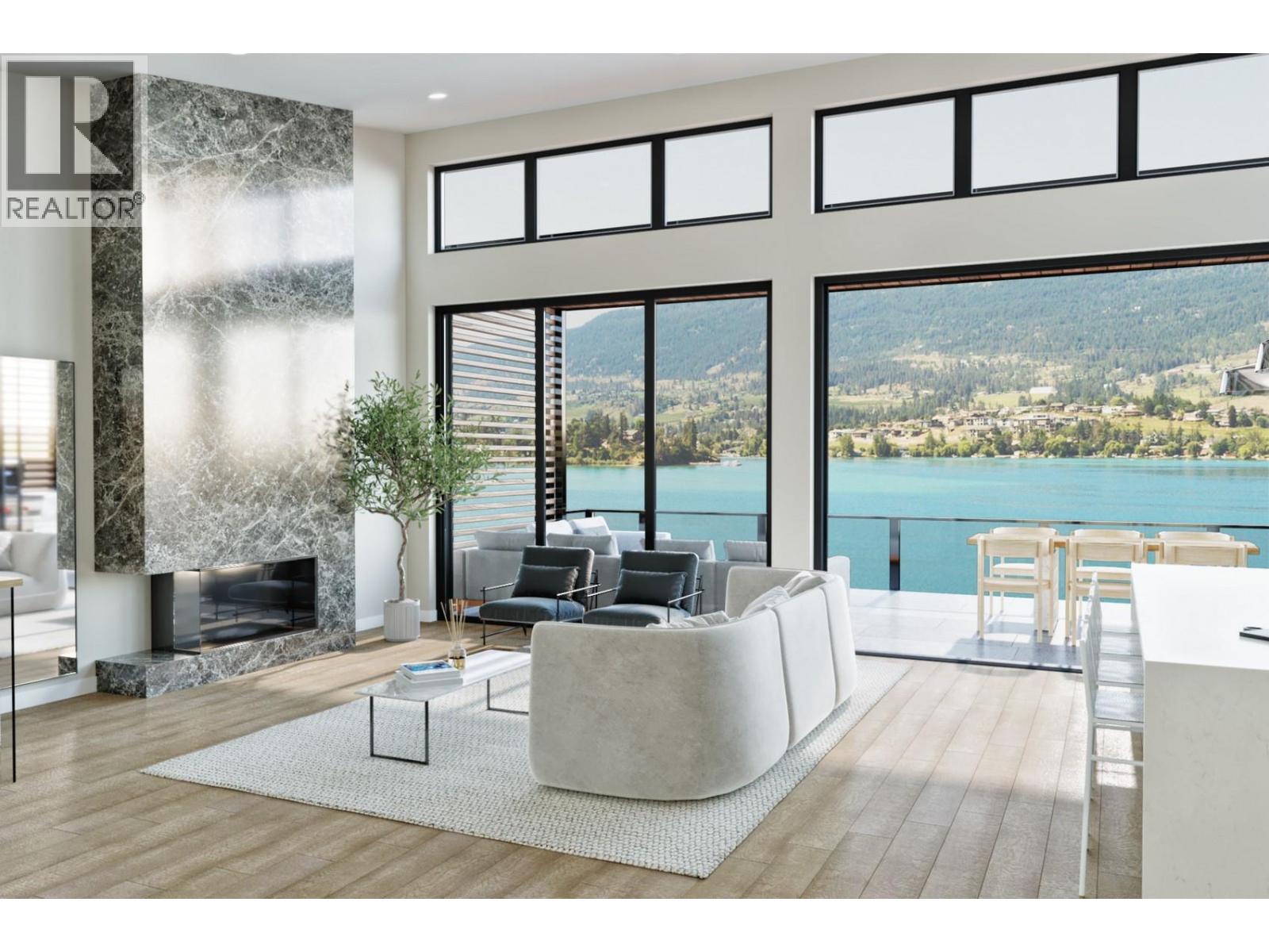 Welcome to Owl’s Nest an exclusive collection of 28 Net Zero luxury homes situated on the shores of Kalamalka Lake – one of the most beautiful and exclusive lakes in the Okanagan Valley. The community features panoramic lake views with direct access to the Okanagan Rail Trail and beach, municipally approved 20-slip private marina and resort-style amenities: multi-purpose sport courts and community fire pits to provide endless opportunities to relax and enjoy paradise. The Water's Edge III features convenient main floor living. This home offers unobstructed lake views from every floor, with a primary suite on the main living floor (upper level). The open-concept kitchen/living area features 14+ ft vaulted ceilings, floor-to-ceiling windows, and sliding folding doors that open onto a covered balcony with an optional outdoor kitchen for seamless indoor/outdoor entertaining. The gourmet kitchen is equipped with chef-inspired appliances. Select from 3 finishing collections or customize to your personal taste. An impressive wine wall with cabinet-coordinated wood surround, simple horizontal bottle display, and LED lighting highlights your collection. Additional features include an oversized two-car garage with extra storage for aquatic gear, and a three-story walk-out with a private landscaped terrace. All this is located just a two-minute walk to the beach. (id:6770)