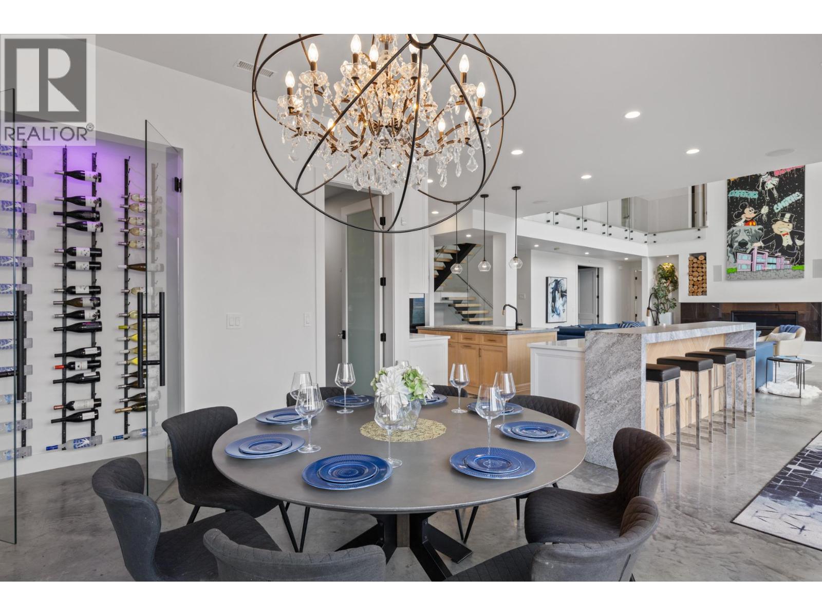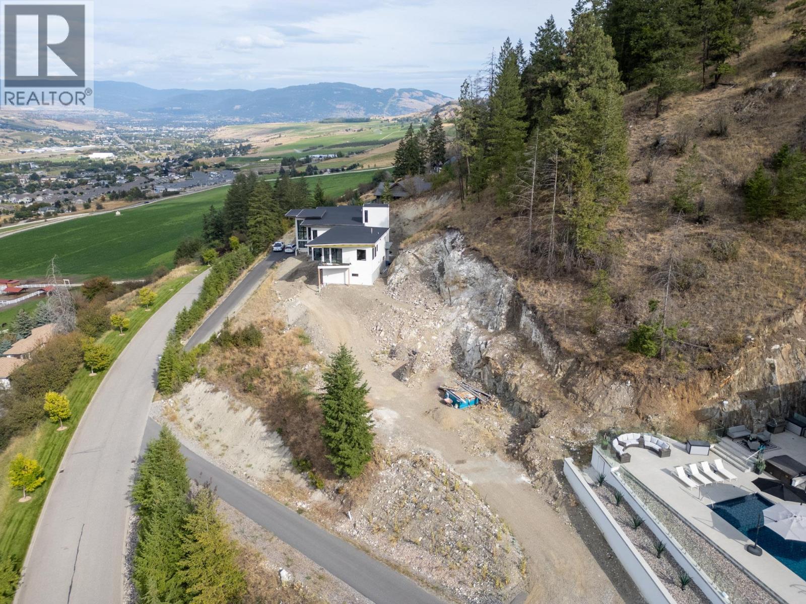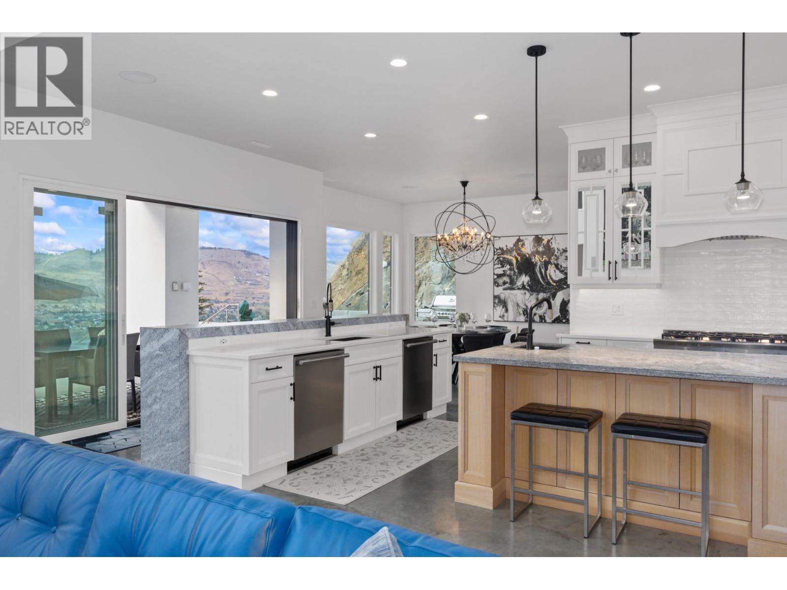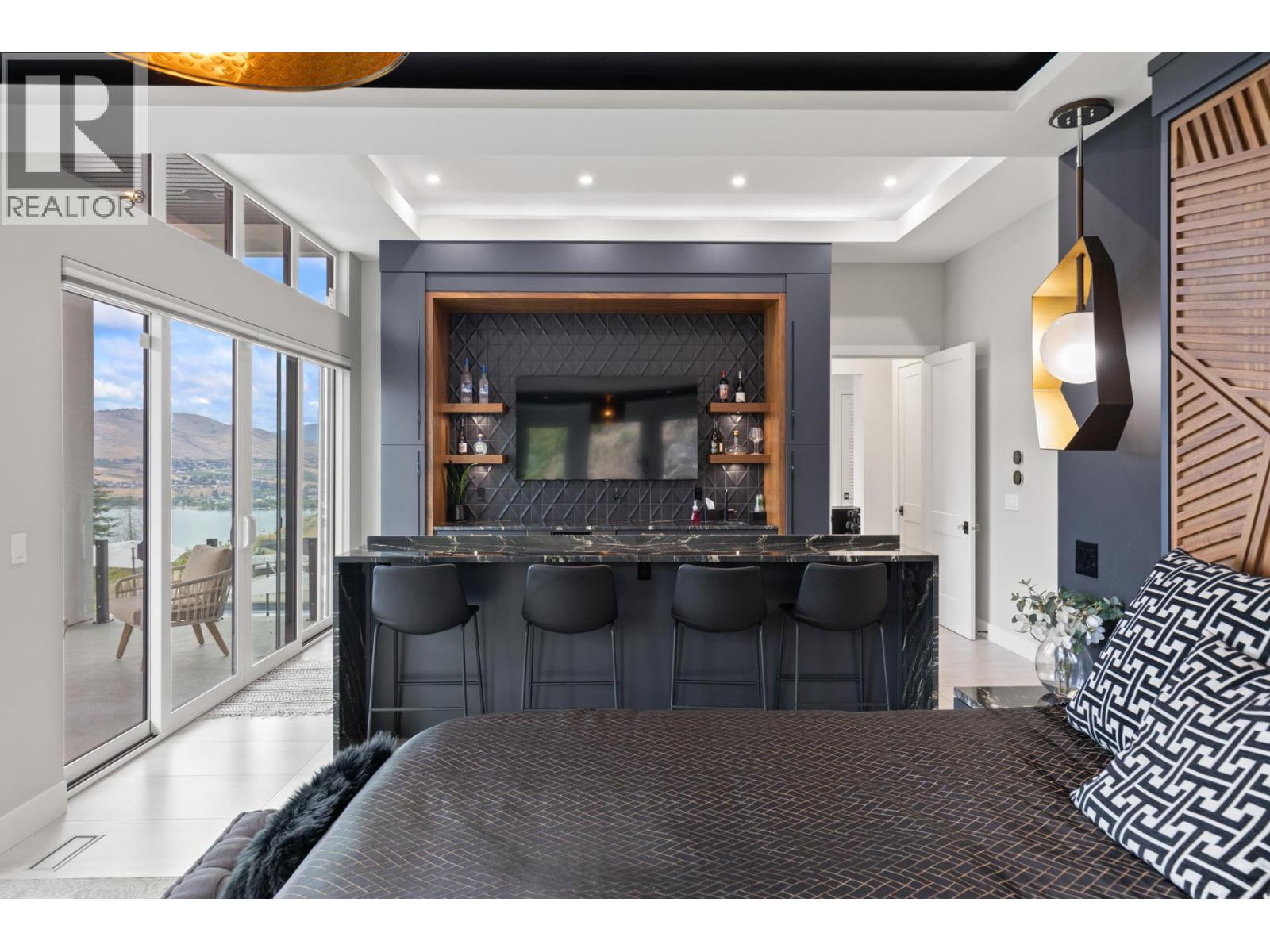 A turn-key, furniture-included offering. Discover the epitome of luxury living in the prestigious gated community of Beverly Hills Estates. Perched gracefully on an acre of hillside, this custom-built masterpiece offers breathtaking views of the lake, mountains, and award-winning equestrian stables below, and INCLUDES the adjacent, separately titled lot. However, the home or lot can be purchased separately from each other (ask agent for details). This turn-key property is offered fully furnished, complete with all kitchen utensils, appliances, linens, etc. making your move effortless. The home boasts two luxurious primary suites, each with custom closets and spa-inspired ensuites. The second primary suite features a chic wet bar and a custom-built bed strategically positioned to capture unobstructed views through floor-to-ceiling windows. The master suite add-on was a substantial $1,000,000 investment, recently completed, and includes a safe-room walk-in closet that was overbuilt with a metal locking door. At the heart of the home is a stunning great room framed by towering windows that open onto an expansive pool deck, perfect for entertaining with its hot tub, fire pit, and multiple outdoor living spaces—complete with an outdoor bathroom. The property also features an immersive home theater and fitness room. The oversized, heated, triple-car garage provides ample storage for vehicles and recreational equipment. Nearby amenities include the Vernon Yacht Club, Sparkling Hill Resort, Predator Ridge Golf and renowned wineries. (id:6770)