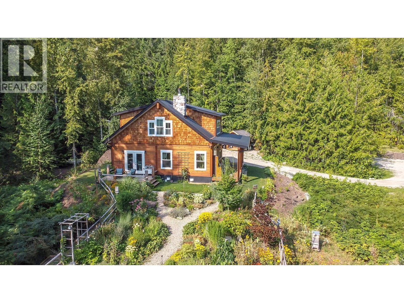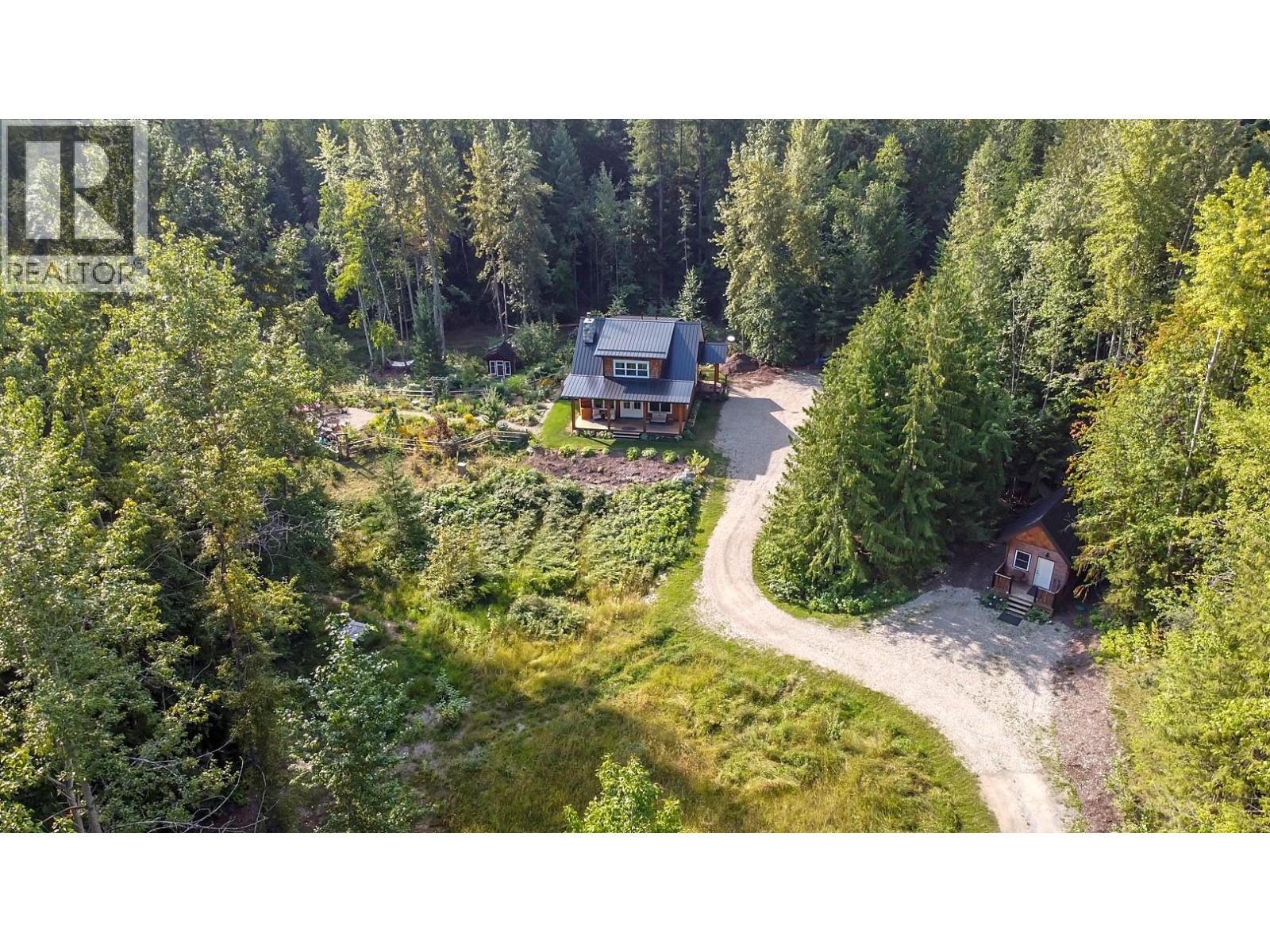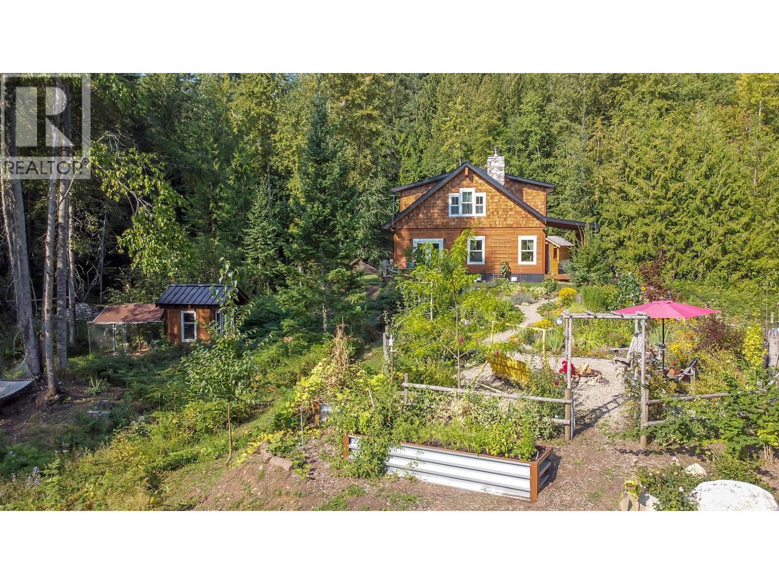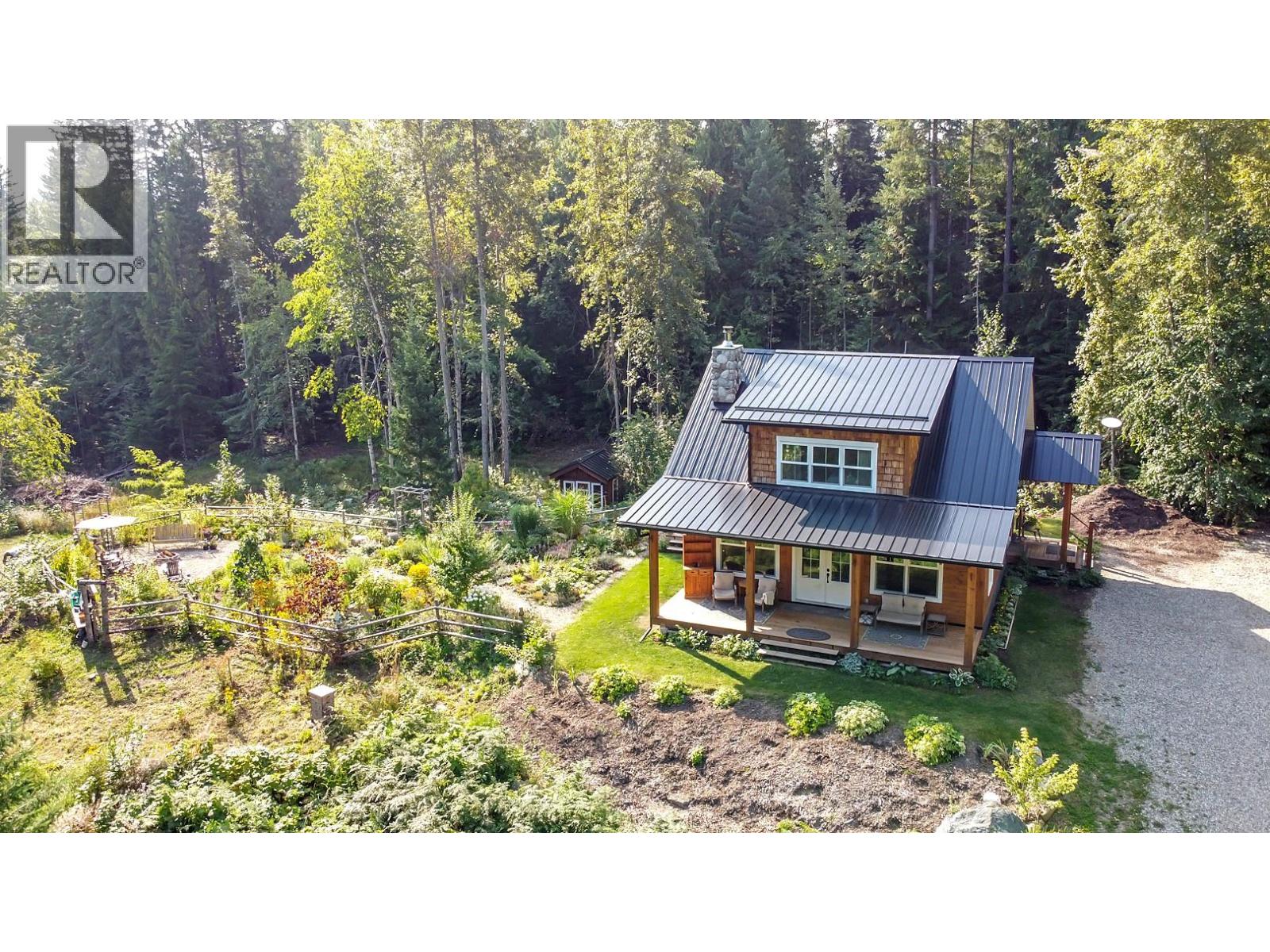 Tucked into the base of the Larch Hills, this magical 4-acre retreat feels like it’s been painted into the landscape. Winding garden paths & forest surround a 2021-built home that glows with natural woodwork & light, along with a picture-perfect ski/garden cottage tucked away for cozy apre ski stays. Two wells provide abundant water—one for the flourishing gardens & another for the home & cottage. Inside, the kitchen forms the heart of the home—bright, striking, & crafted with rich wood features. Upstairs, the primary suite is a serene escape, joined by a charming den, a generous second bedroom, & a spa-like bath complete with a classic clawfoot tub. The wide front porch offers privacy & quiet, where no neighbours—or even the guest cottage—are in sight. The partially finished lower level provides a cozy family room, workshop, & ample storage. Whether it’s evenings by the fire, tending gardens through summer, or retreating into the stillness of the forest, this property is a true sanctuary—private, warm, & filled with character. Adding to the charm, is a quintessential chicken coop. A wood stove offers cozy warmth on winter evenings, complemented by the efficiency of a heat pump for year-round comfort. Practicality meets possibility with loads of parking & a flat, open area ideal for a future garage or shop. Every detail speaks to the pride & care with which it was built. Measurements care of iGuide & should be verified by a buyer, along with all information in the listing. (id:6770)